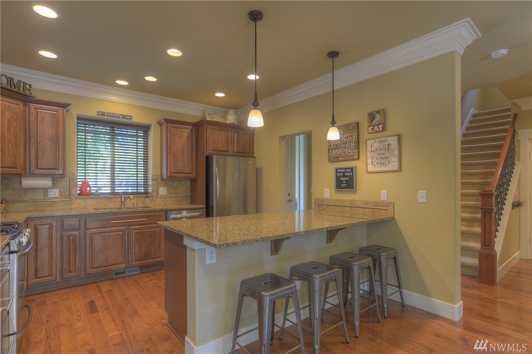 Beautiful corner home in Briggs Village located across from the neighborhood park! Enjoy low maintenance living with a flexible floor plan. Kitchen boasts solid granite counters, stainless steel appliances and walk-in pantry. The main floor bedroom w/dbl closets & adjoining bath can be used as office or family room. Upper level master suite with corner jetted tub and large tiled shower. Two car garage - Incredible quality and finishes throughout.