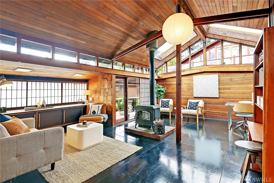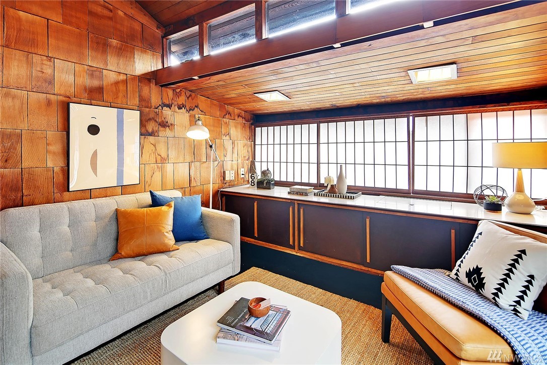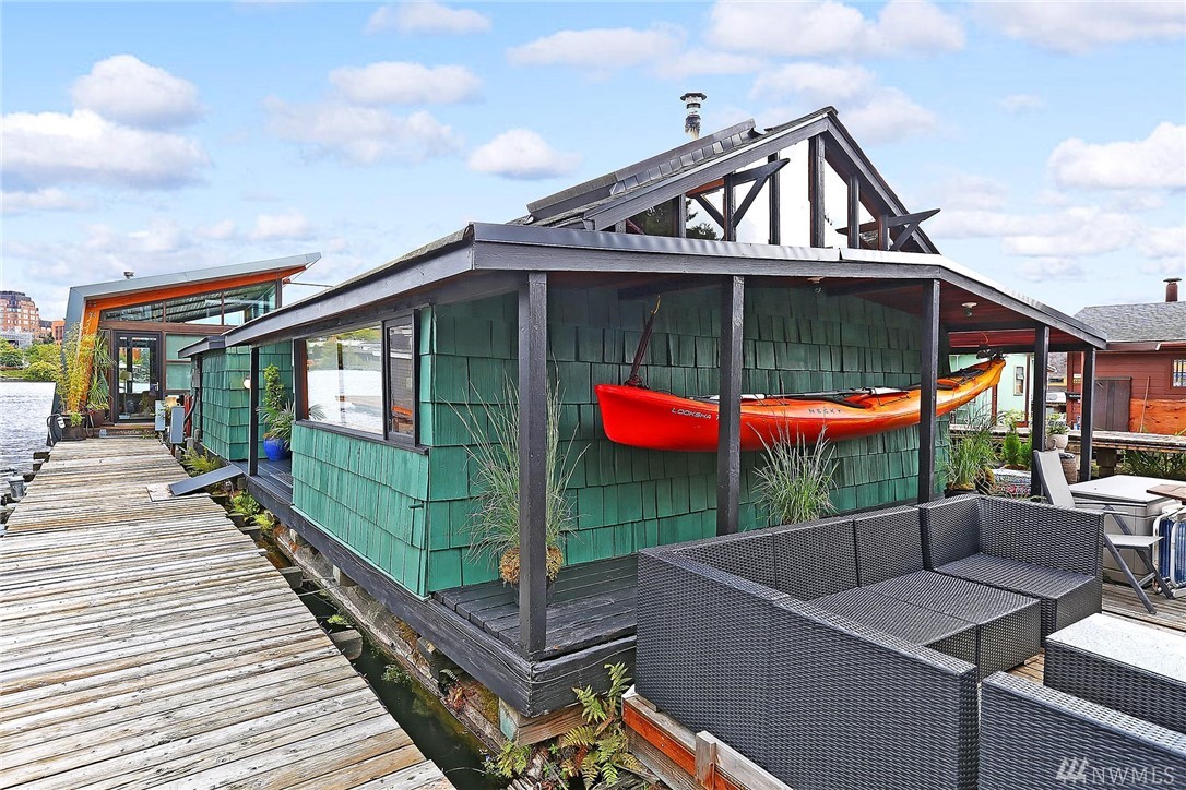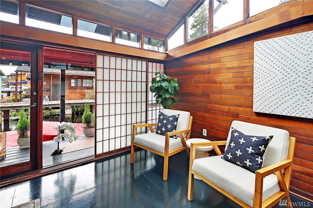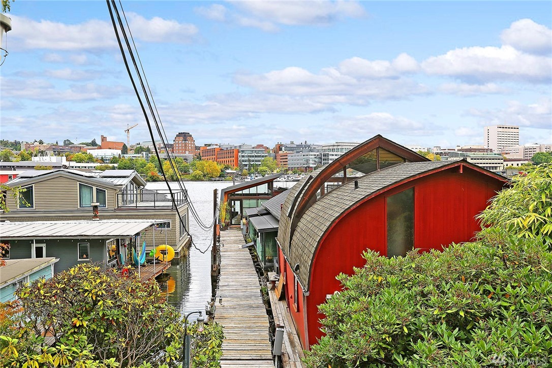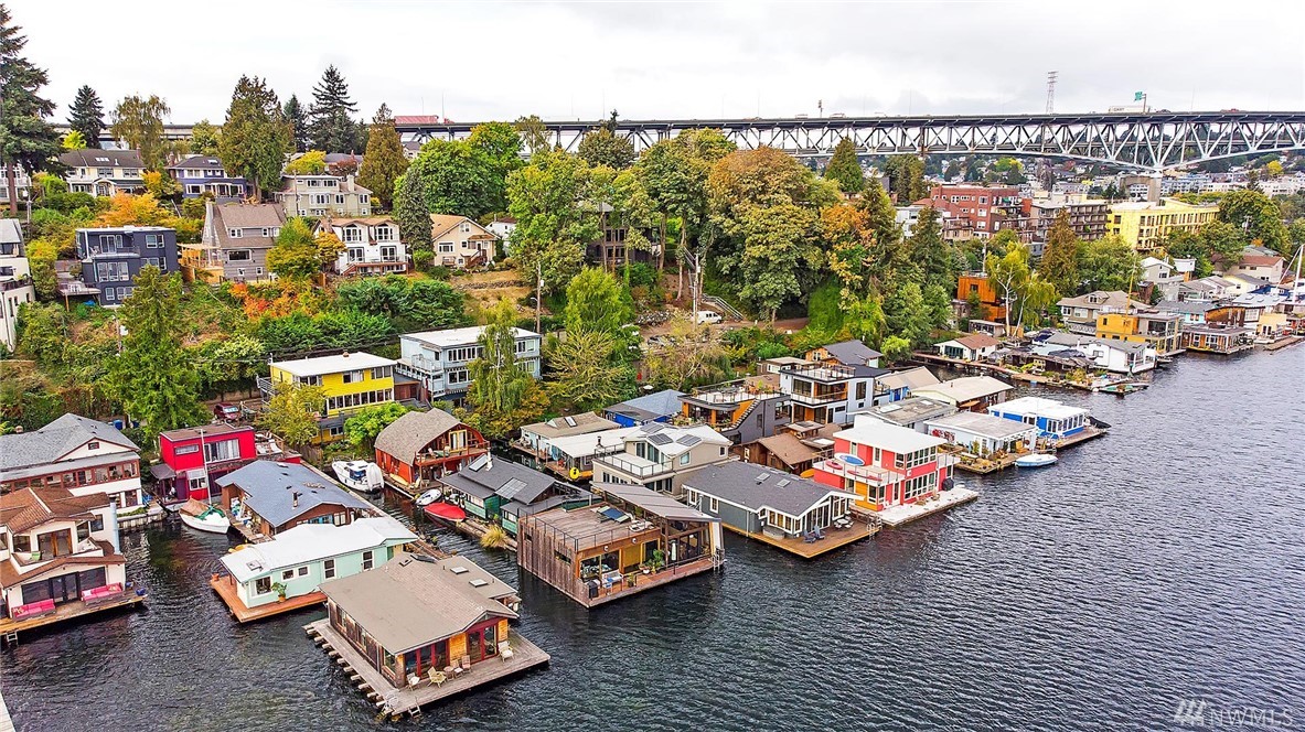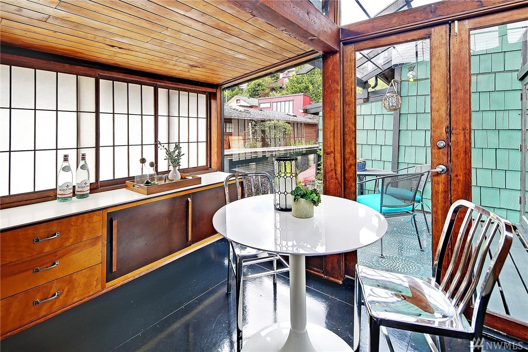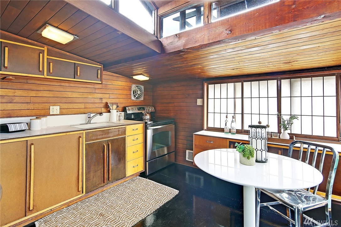 Designed by architect Gerald Van Slyck in the late 1950’s/early 1960’s, this distinctive floating home has a midcentury spirit, a woodsy, Northwest contemporary feel, and a character that is instantly captivating. An open layout, vaulted ceilings, clerestory windows, and large skylights maximize the home’s 833 square feet. Outdoor areas take advantage of Portage Bay vistas. Intimate, co-op dock of only 4 homes is tight-knit and friendly. Boat moorage and assigned parking complete the package.