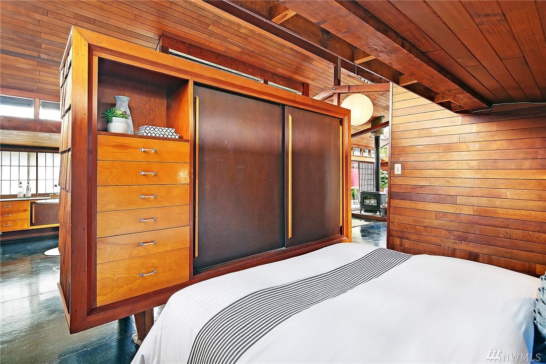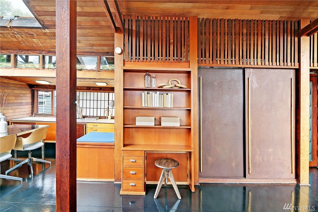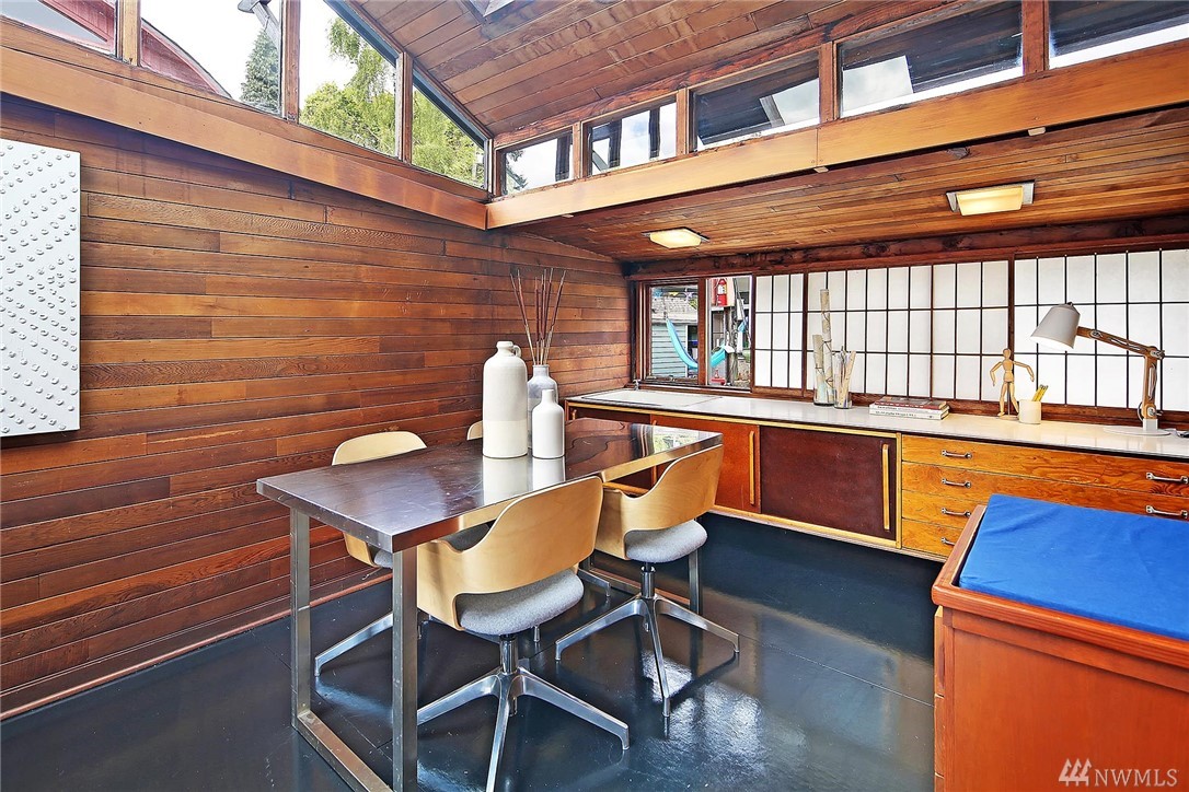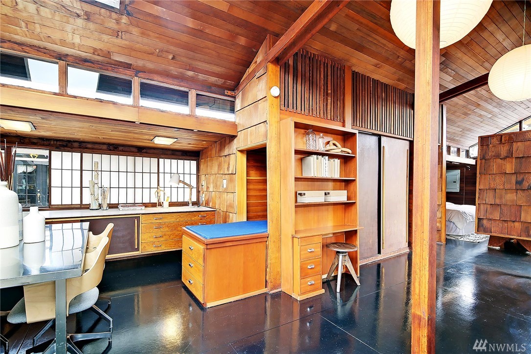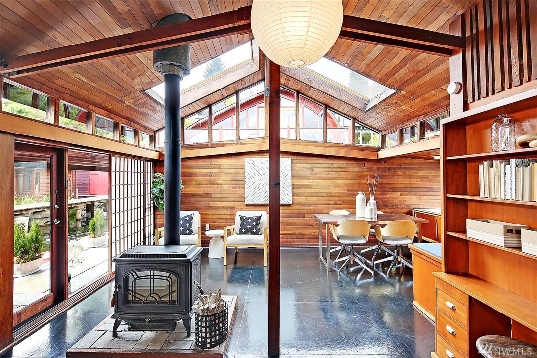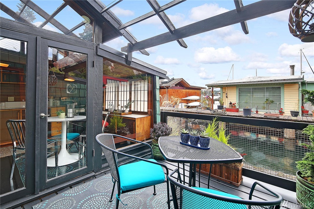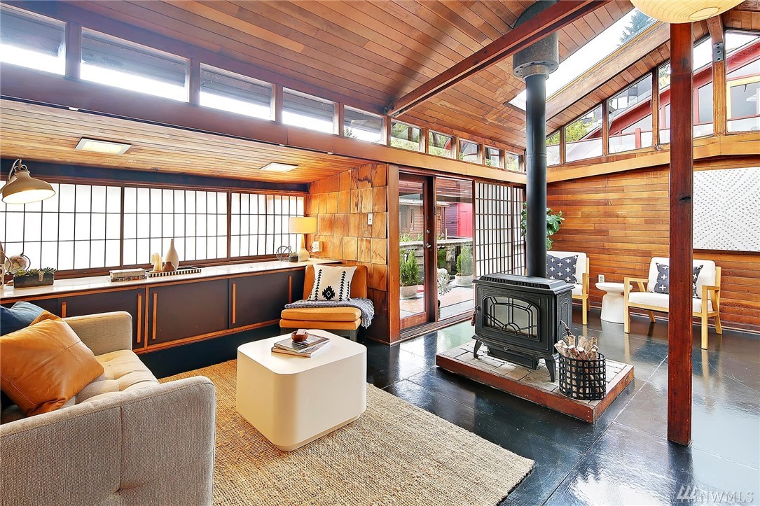Designed by architect Gerald Van Slyck in the late 1950’s/early 1960’s, this distinctive floating home has a midcentury spirit, a woodsy, Northwest contemporary feel, and a character that is instantly captivating. An open layout, vaulted ceilings, clerestory windows, and large skylights maximize the home’s 833 square feet. Outdoor areas take advantage of Portage Bay vistas. Intimate, co-op dock of only 4 homes is tight-knit and friendly. Boat moorage and assigned parking complete the package.