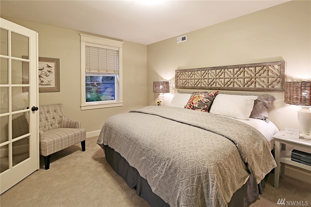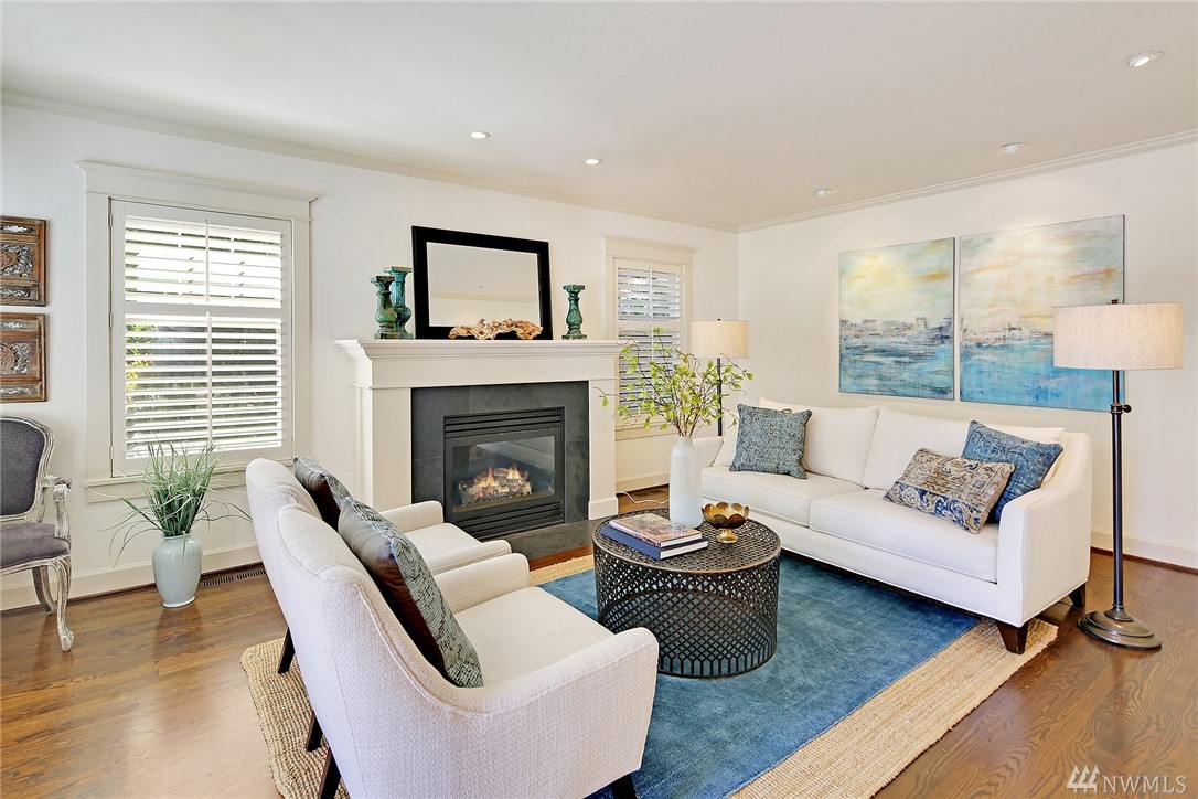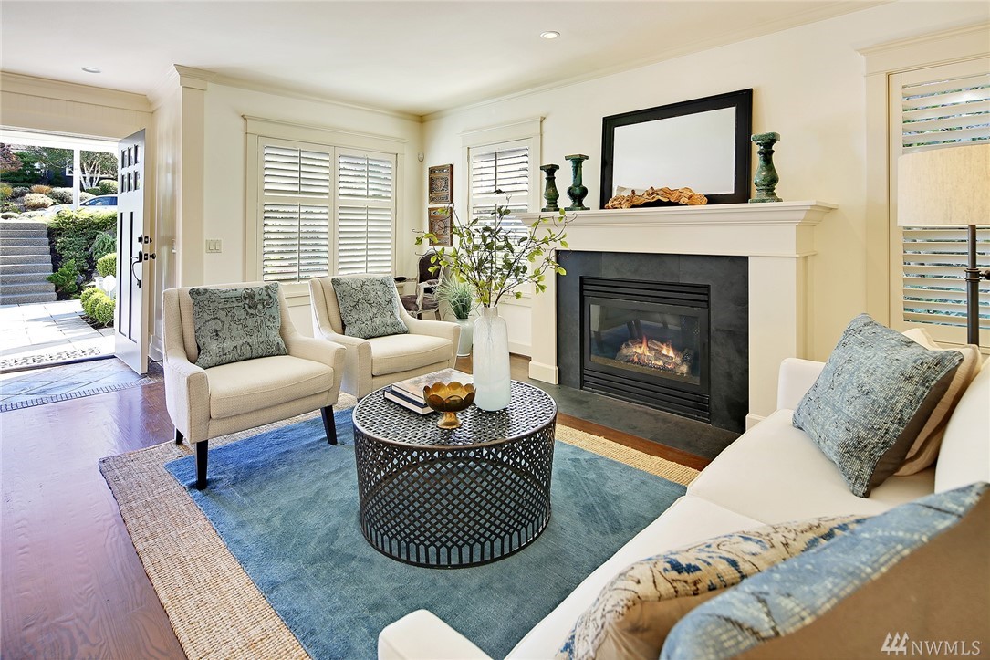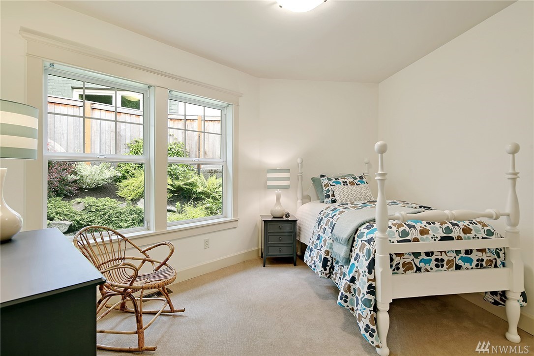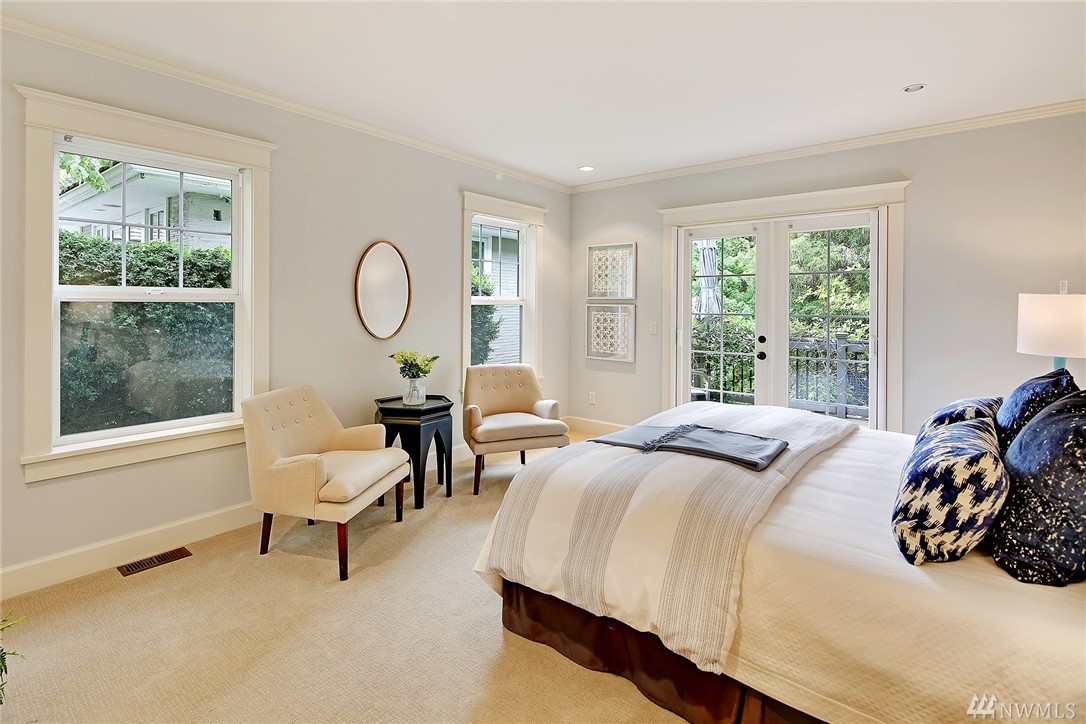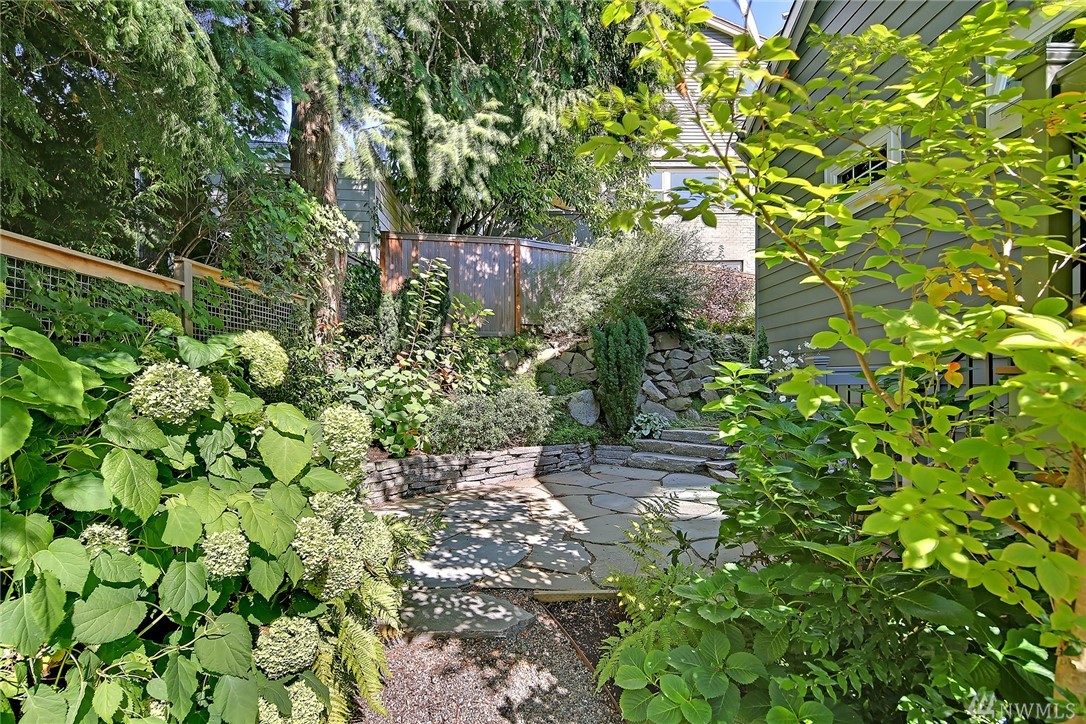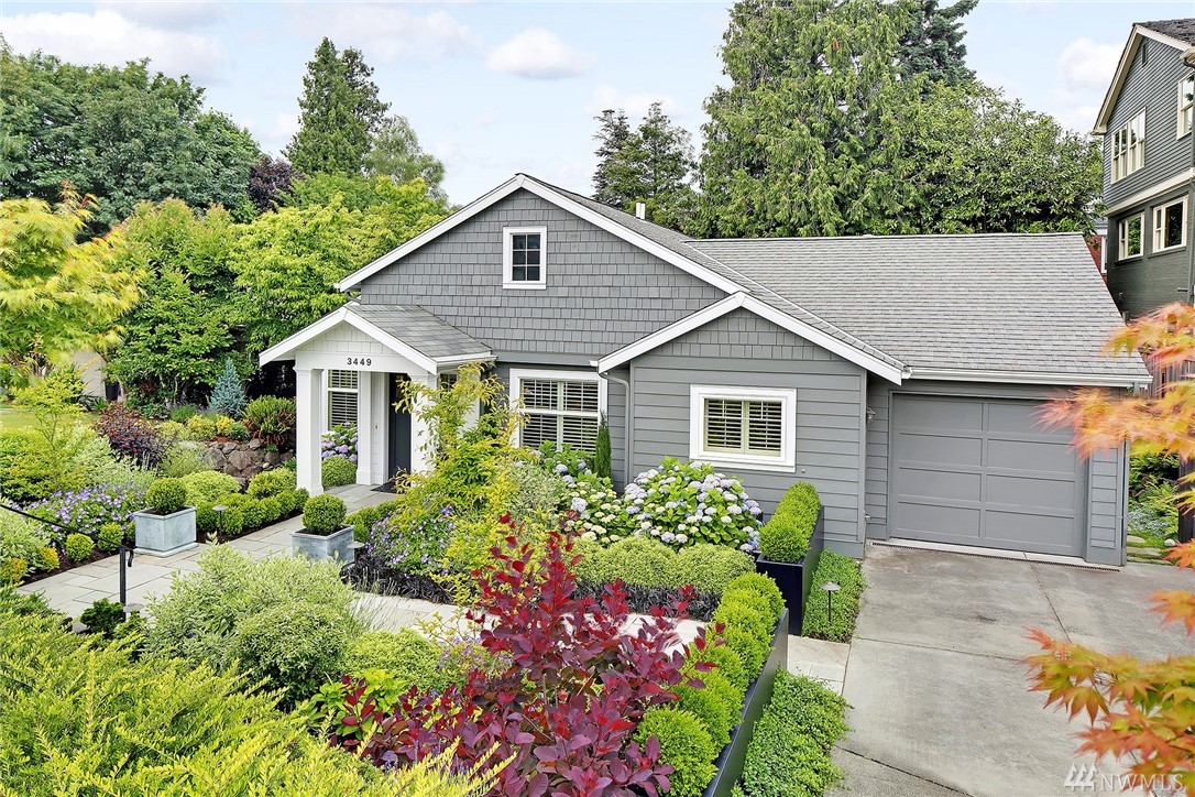 Elegant Cape Cod surrounded by spectacular garden on spacious corner lot. Lovely entry welcomes you to pristine contemporary interior: custom millwork and lighting; gas fireplaces; hardwoods and new carpet. Gourmet kitchen with quartz counters, Sub-zero & Wolf appliances. Three bedrooms on main, including gorgeous master suite with French doors to private porch overlooking backyard sanctuary. LL: fourth BR; media room. Great walking or biking on Magnolia Blvd, and just 1 block to Discovery Park!