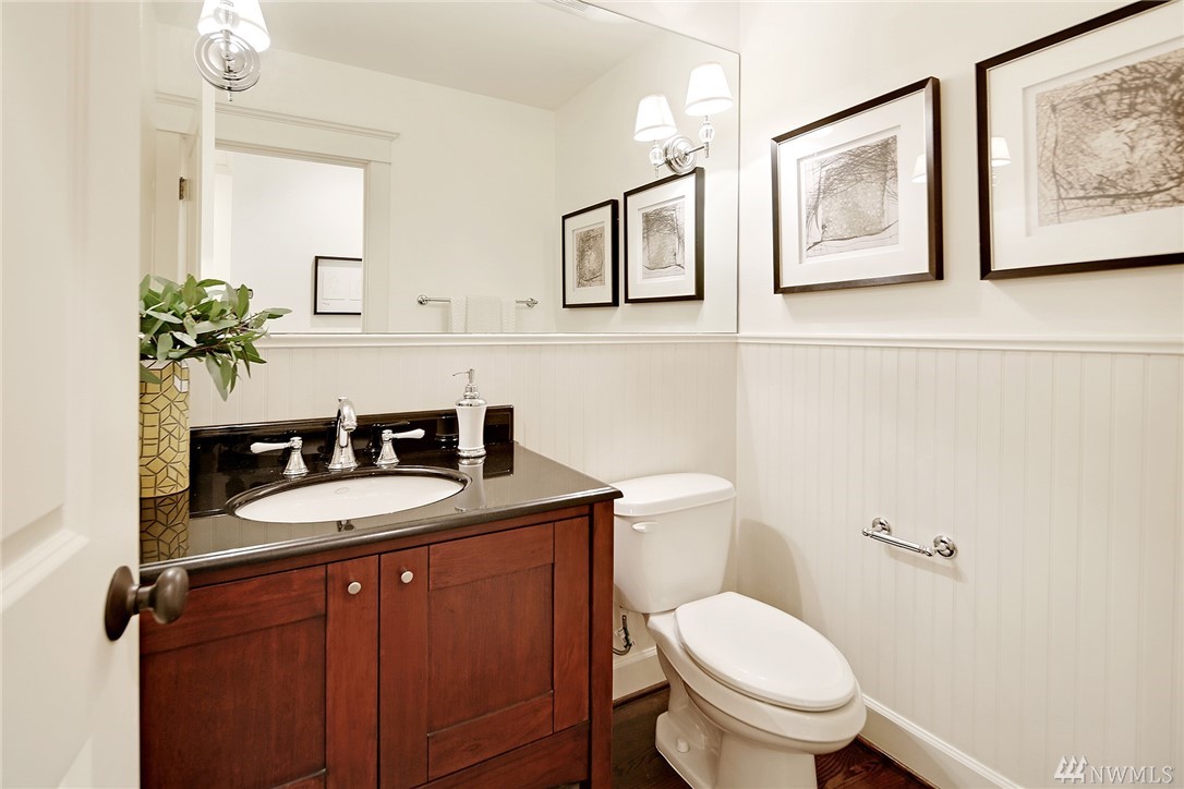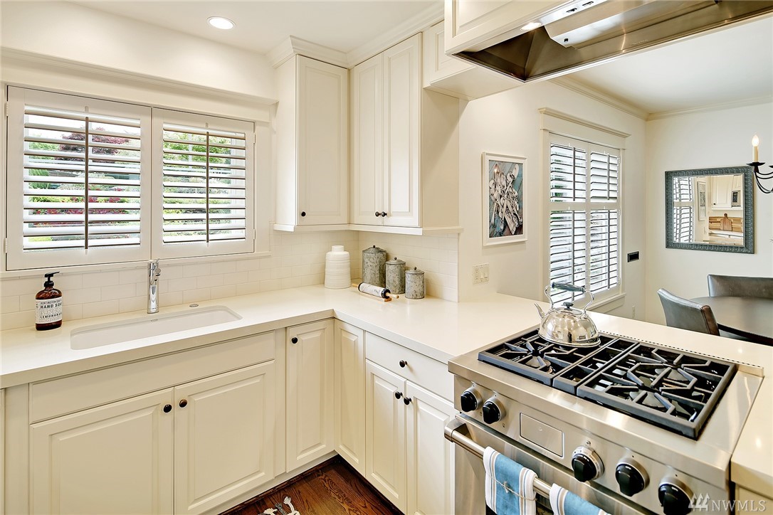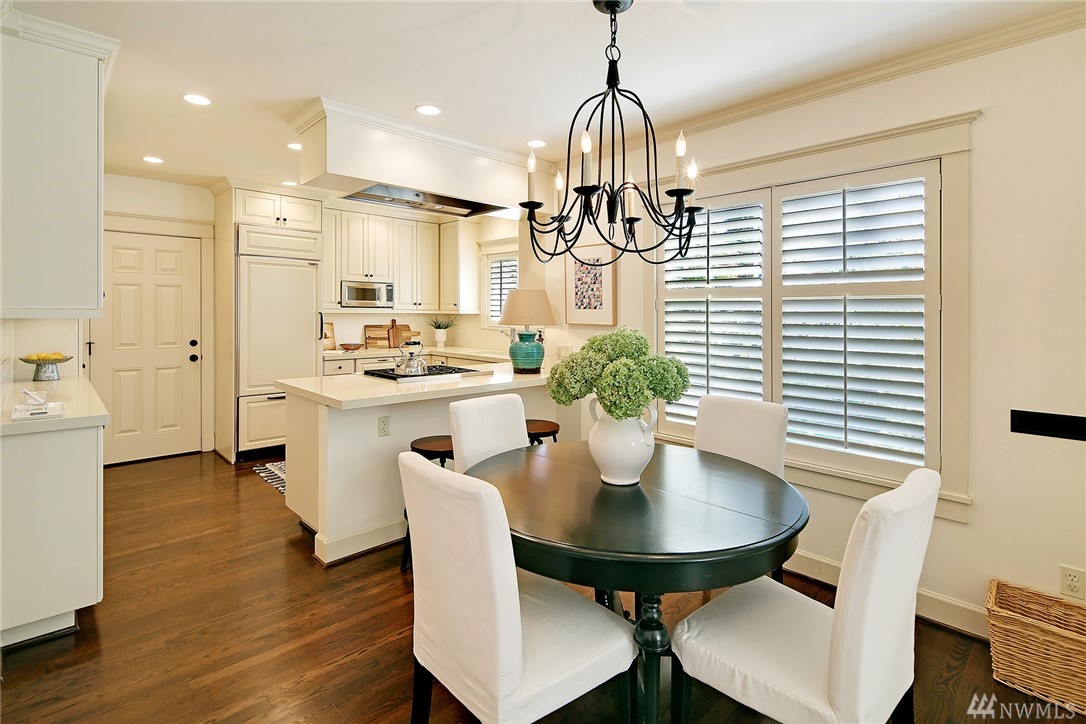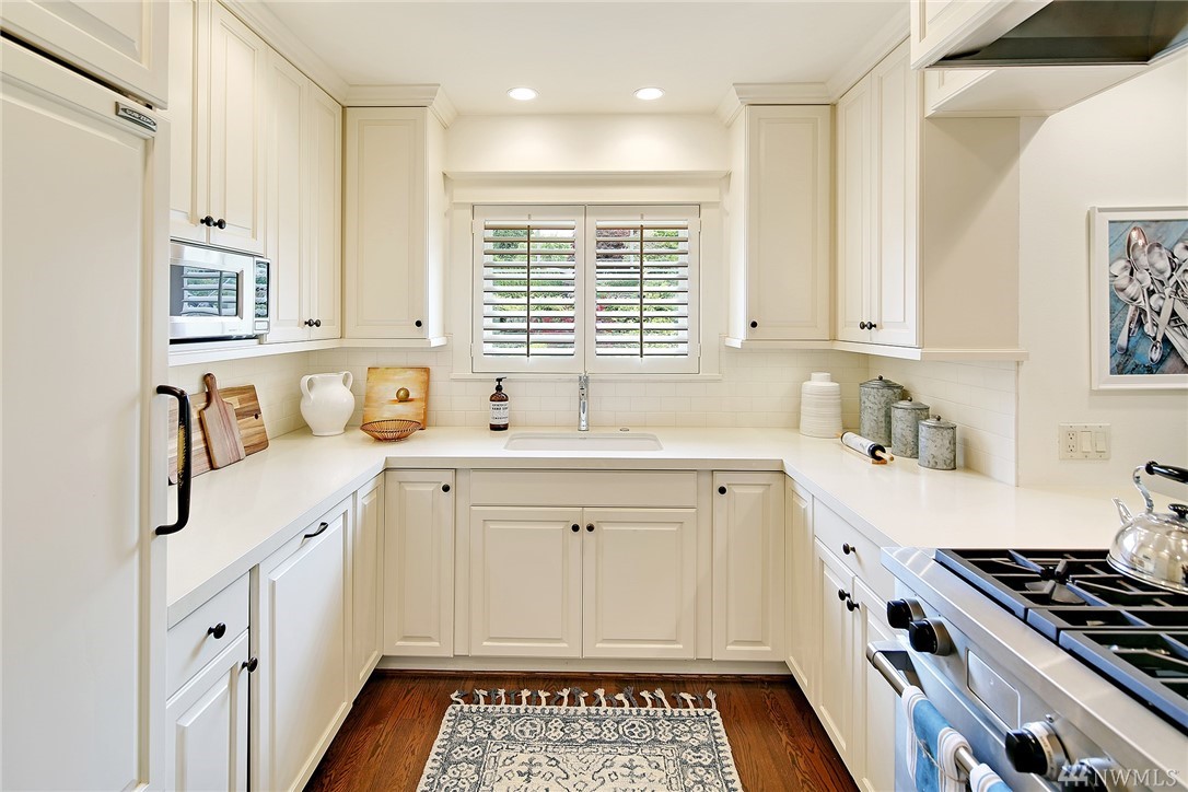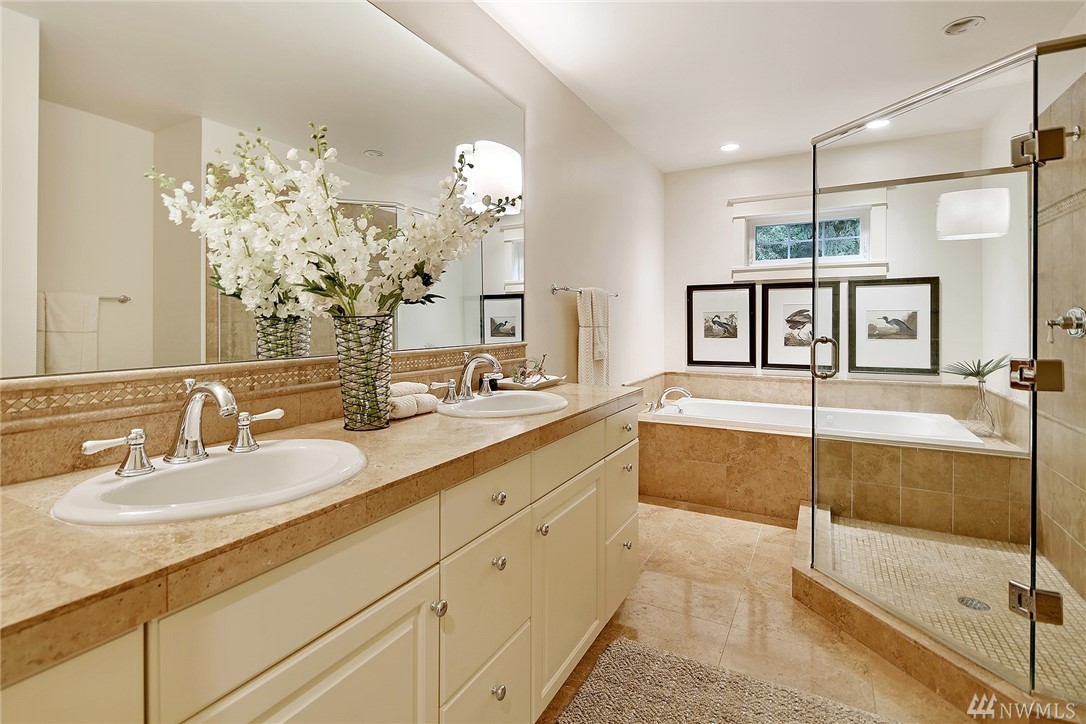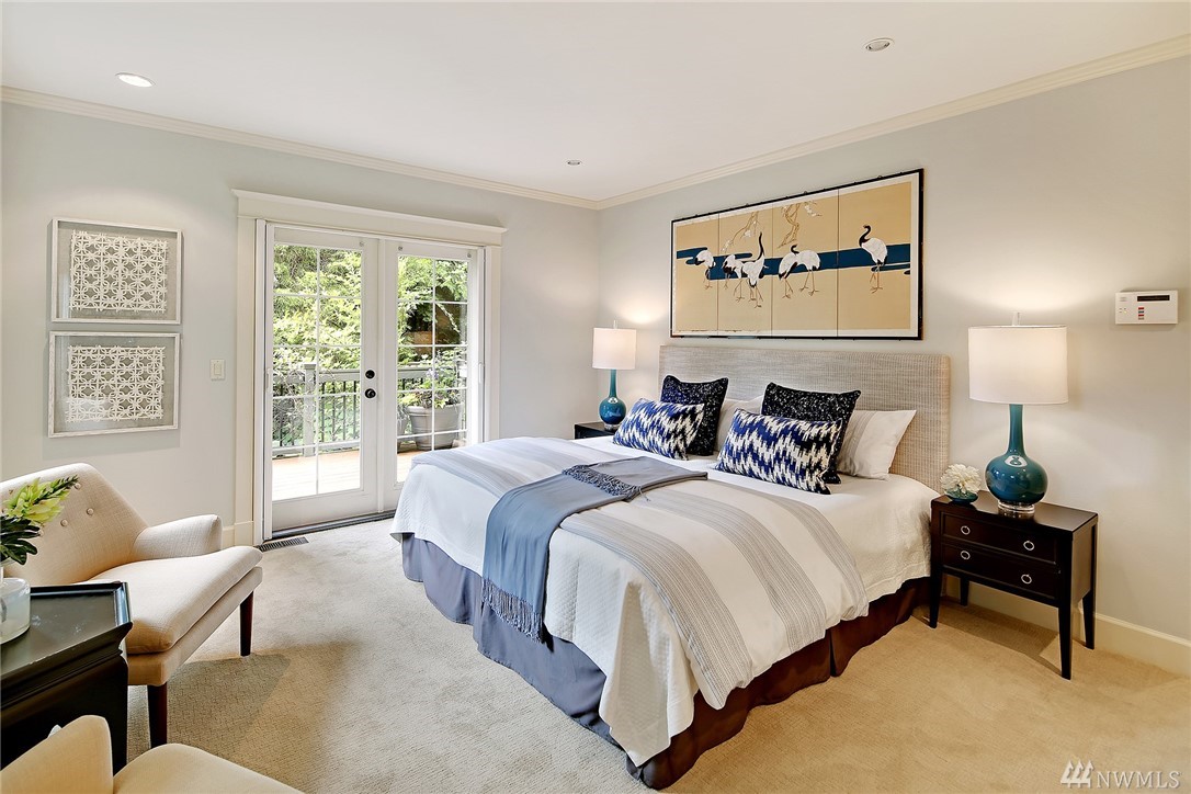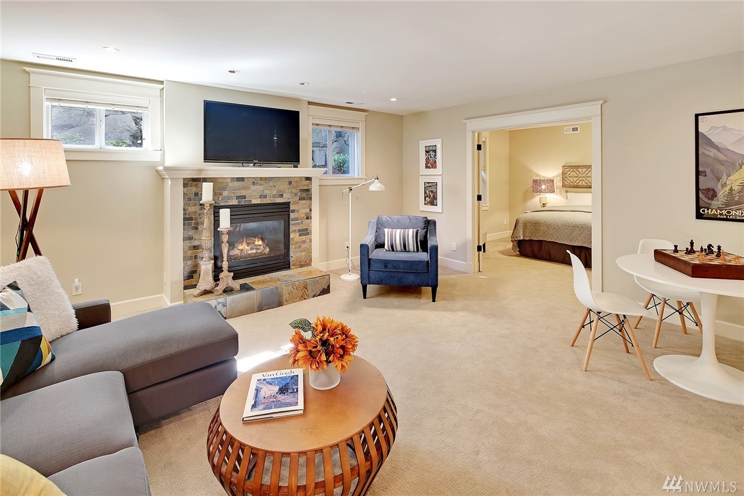Elegant Cape Cod surrounded by spectacular garden on spacious corner lot. Lovely entry welcomes you to pristine contemporary interior: custom millwork and lighting; gas fireplaces; hardwoods and new carpet. Gourmet kitchen with quartz counters, Sub-zero & Wolf appliances. Three bedrooms on main, including gorgeous master suite with French doors to private porch overlooking backyard sanctuary. LL: fourth BR; media room. Great walking or biking on Magnolia Blvd, and just 1 block to Discovery Park!