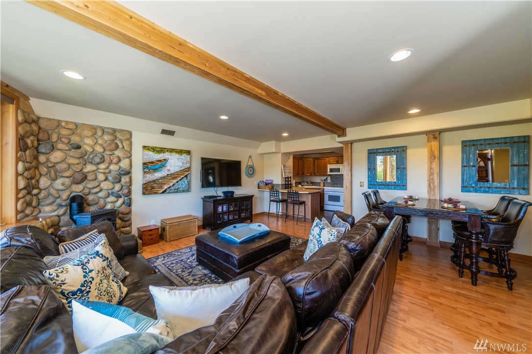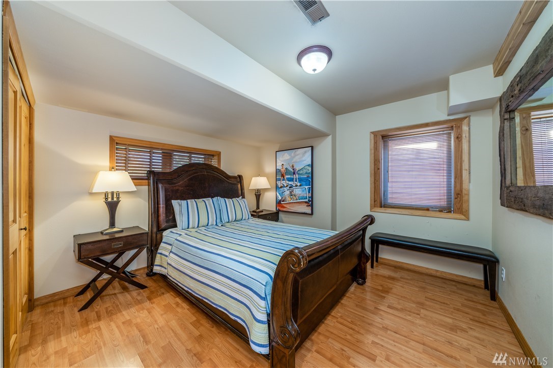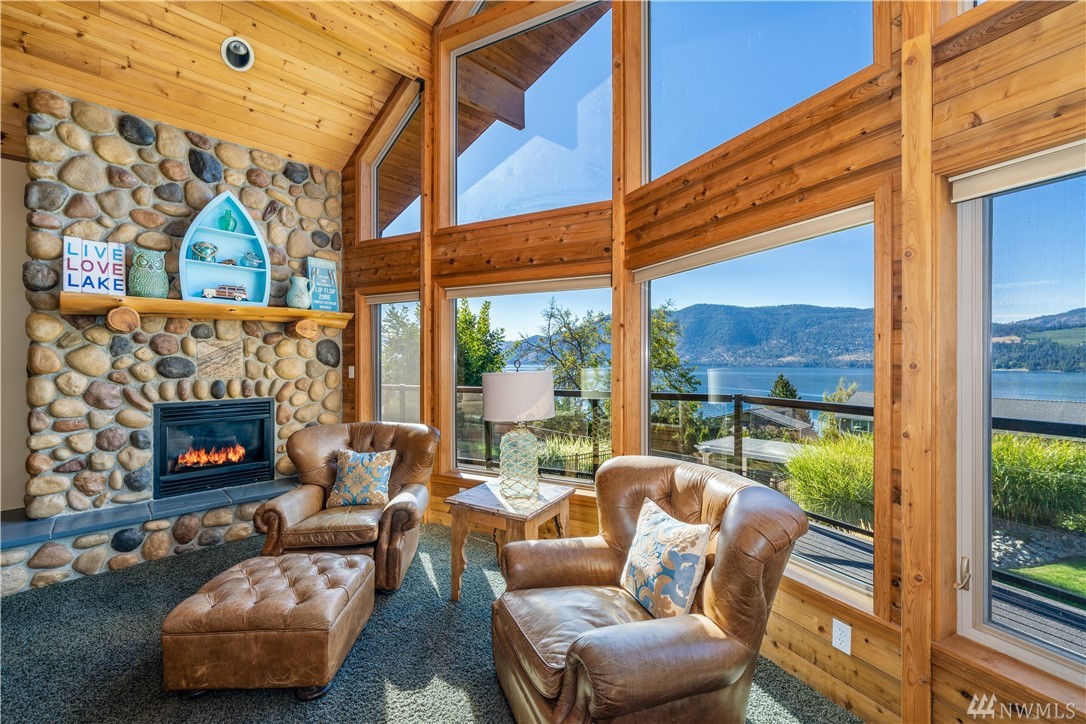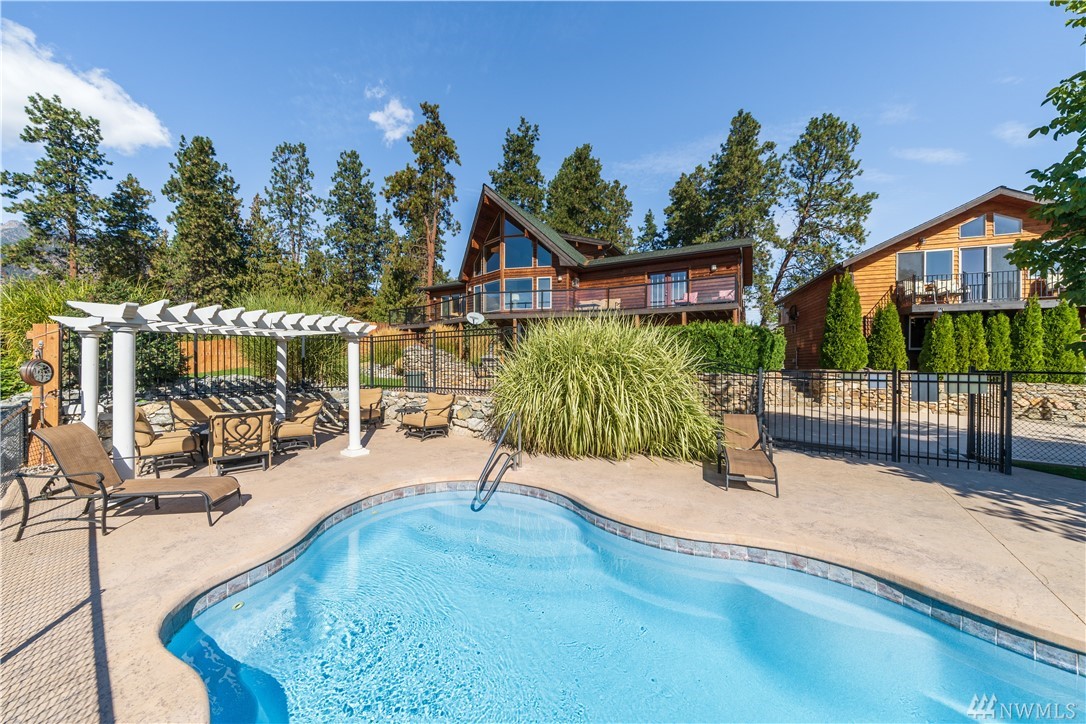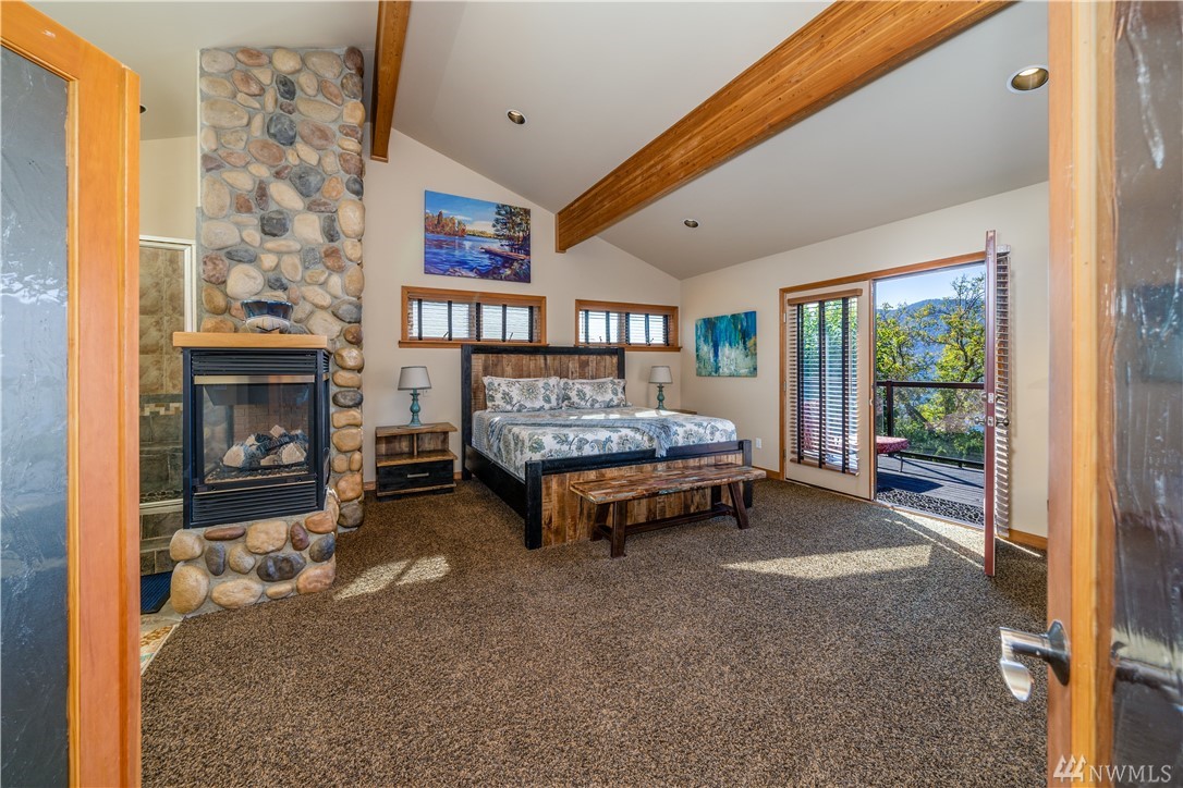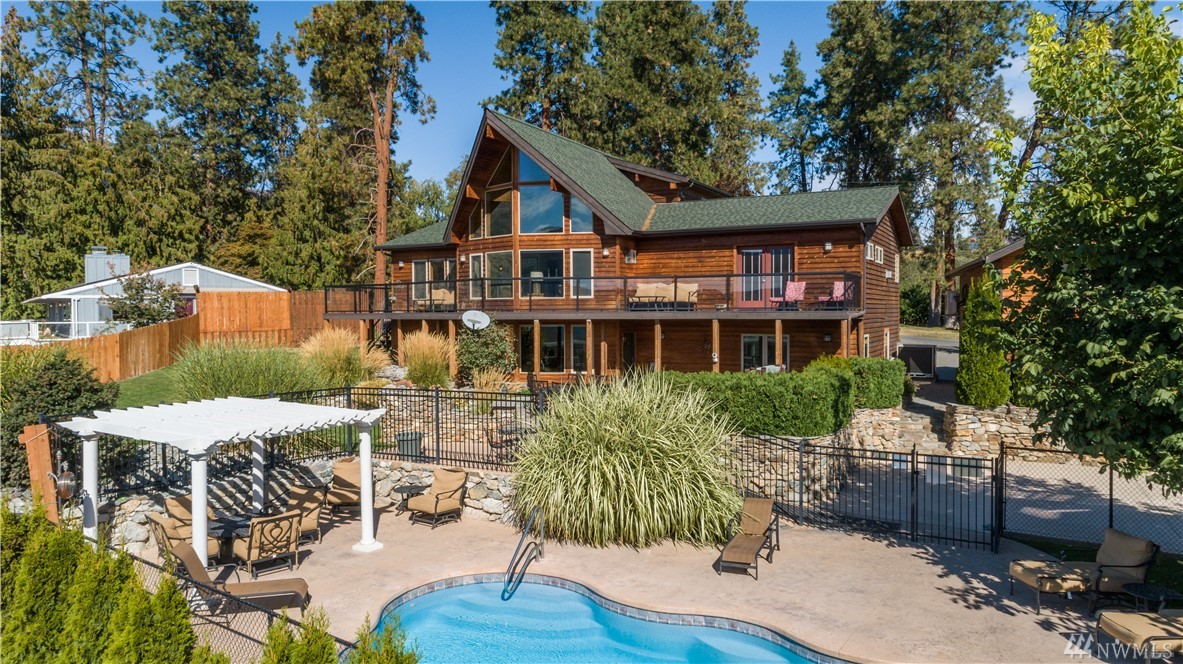 Gorgeous one of kind property, quality built Lindal Cedar Home, views of the lake, upper & lower living space for guests or potential vacation rental income. Home is beautifully designed w/an open floor plan w/cedar beams, cedar plank ceiling, main floor master w/French doors and gas fireplace, below is another full living area w/kitchen opens to beautiful patio w/hot tub, amazing pool and water feature. Just across the way from Willow Point Park! Strong vacation rental history with good income!