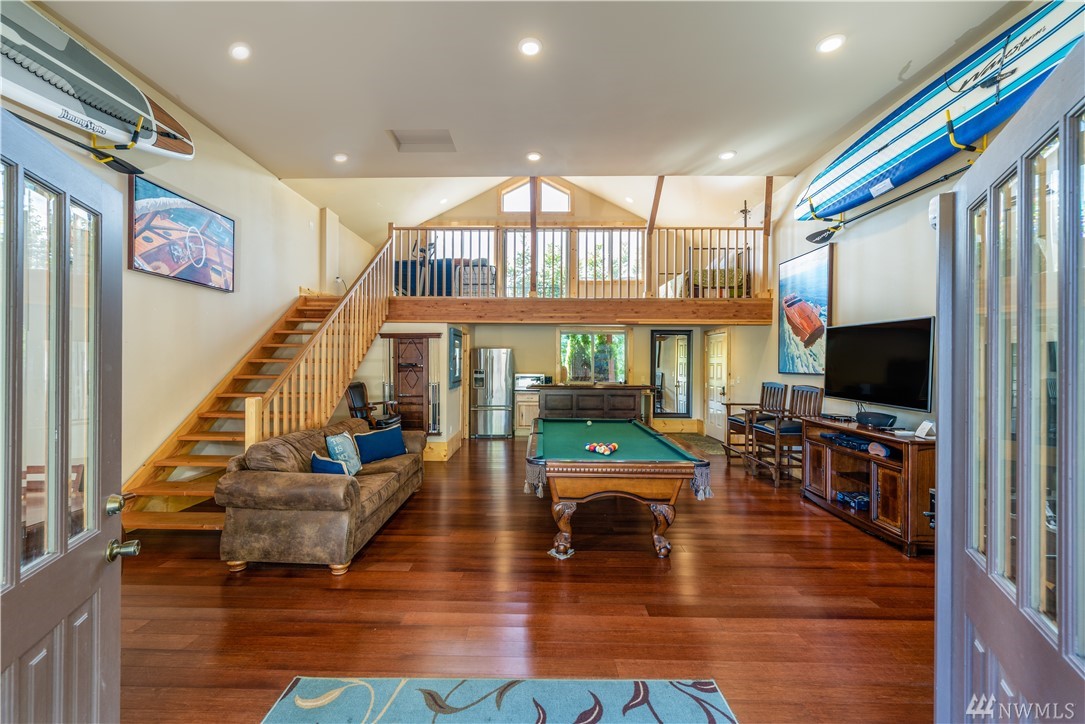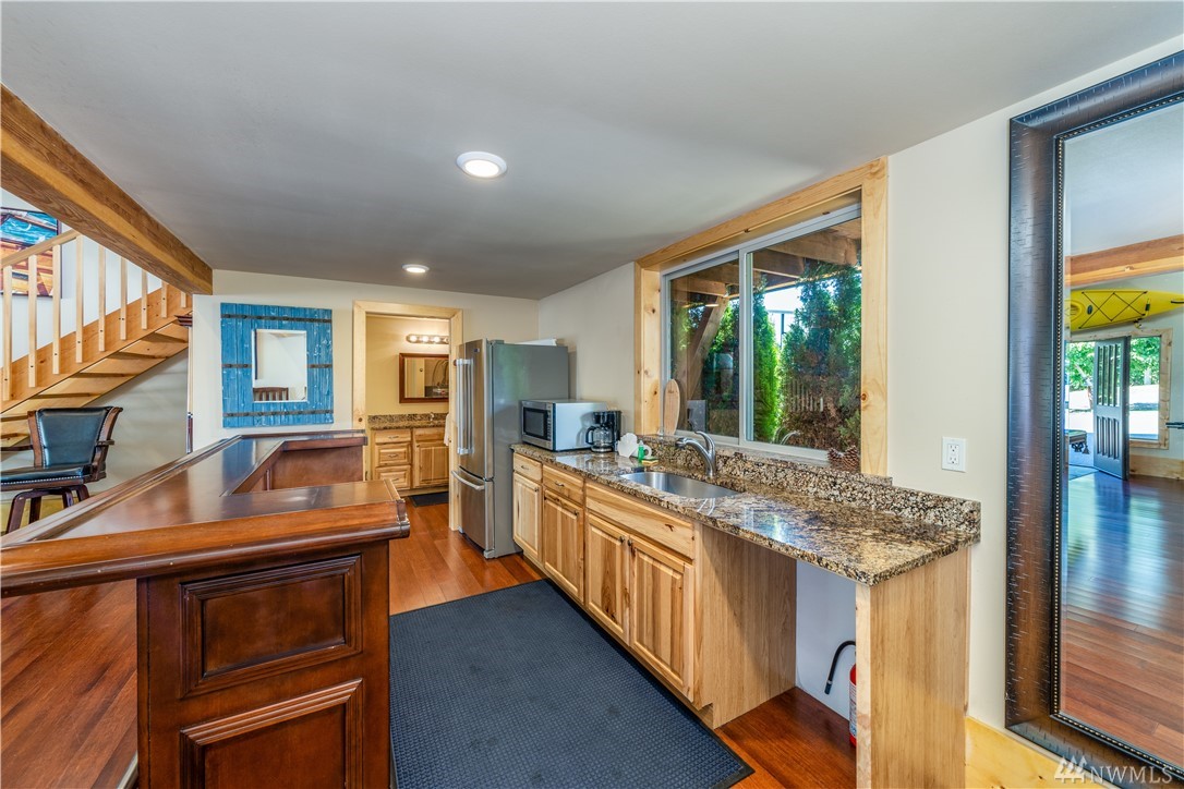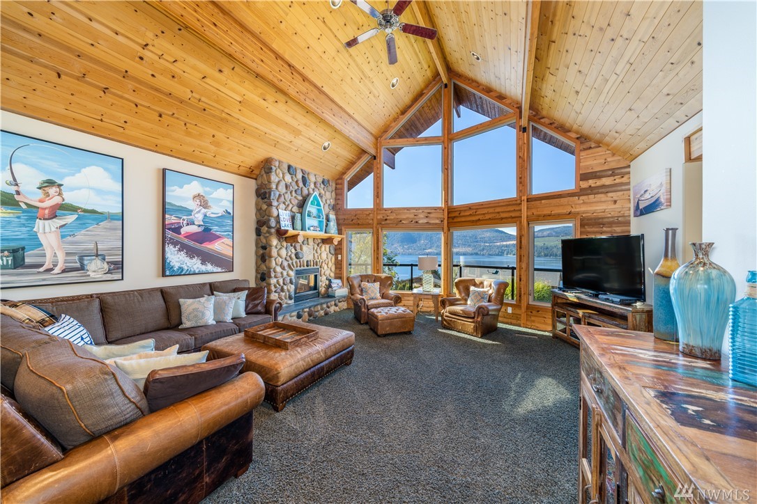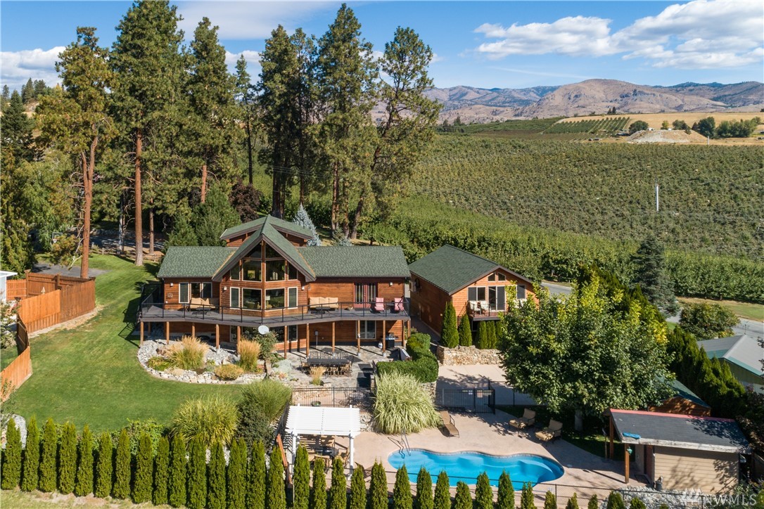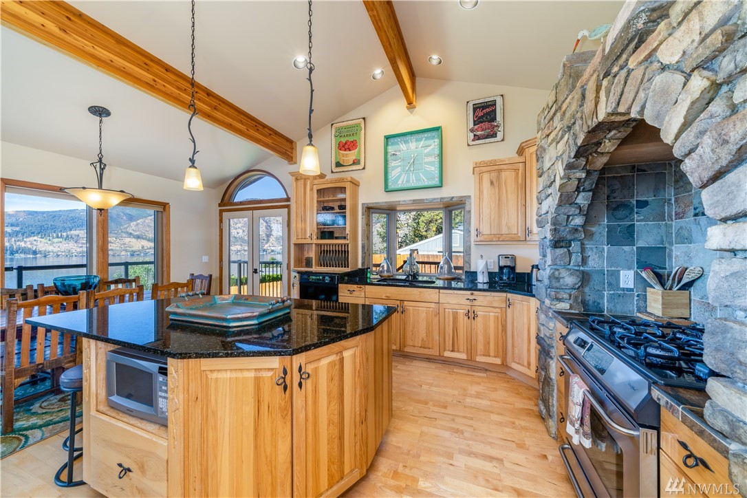 Gorgeous one of kind property, quality built Lindal Cedar Home, views of the lake, upper & lower living space for guests or potential vacation rental income. Home is beautifully designed w/an open floor plan w/cedar beams, cedar plank ceiling, main floor master w/French doors and gas fireplace, below is another full living area w/kitchen opens to beautiful patio w/hot tub, amazing pool and water feature. Just across the way from Willow Point Park! Strong vacation rental history with good income!