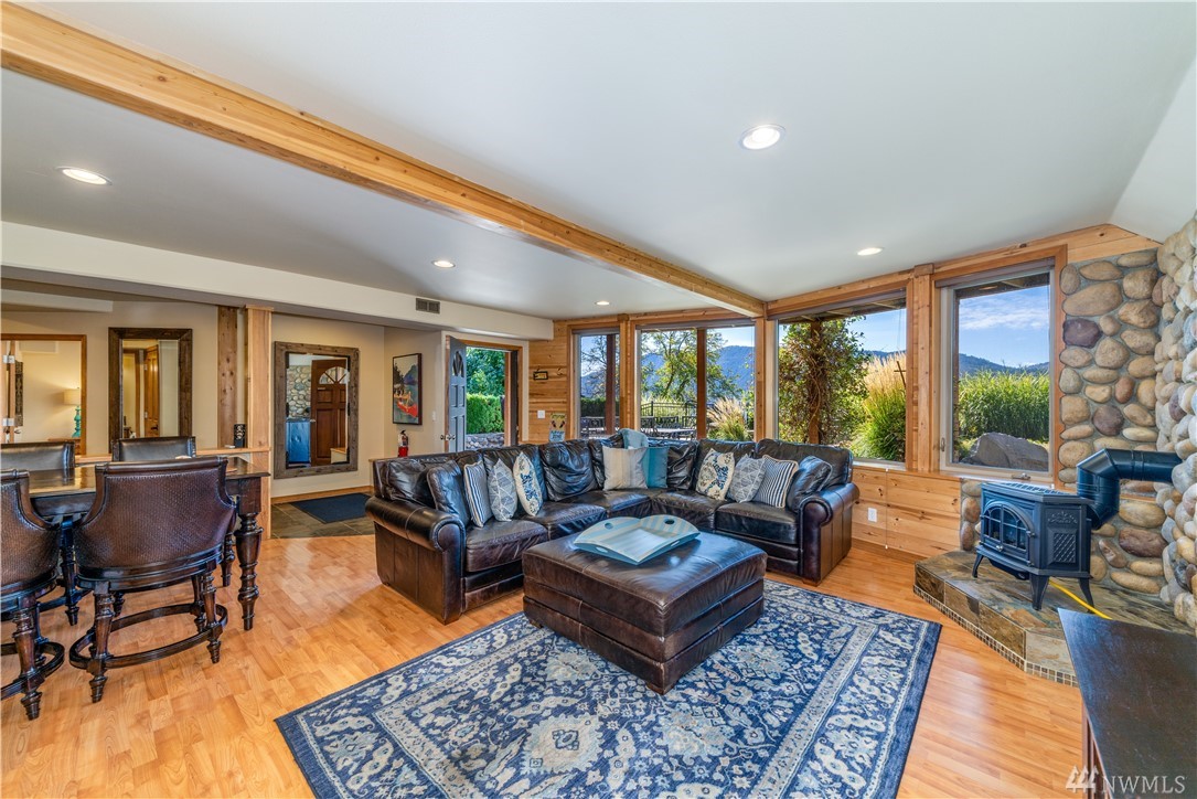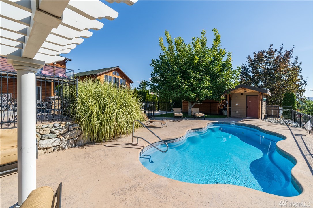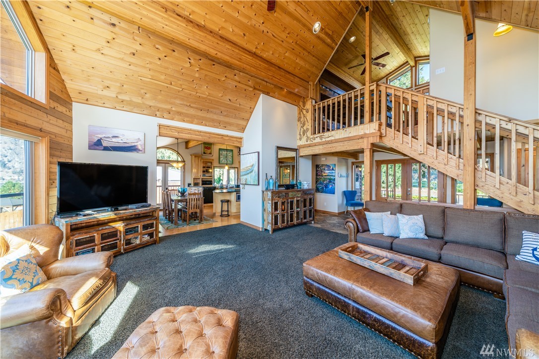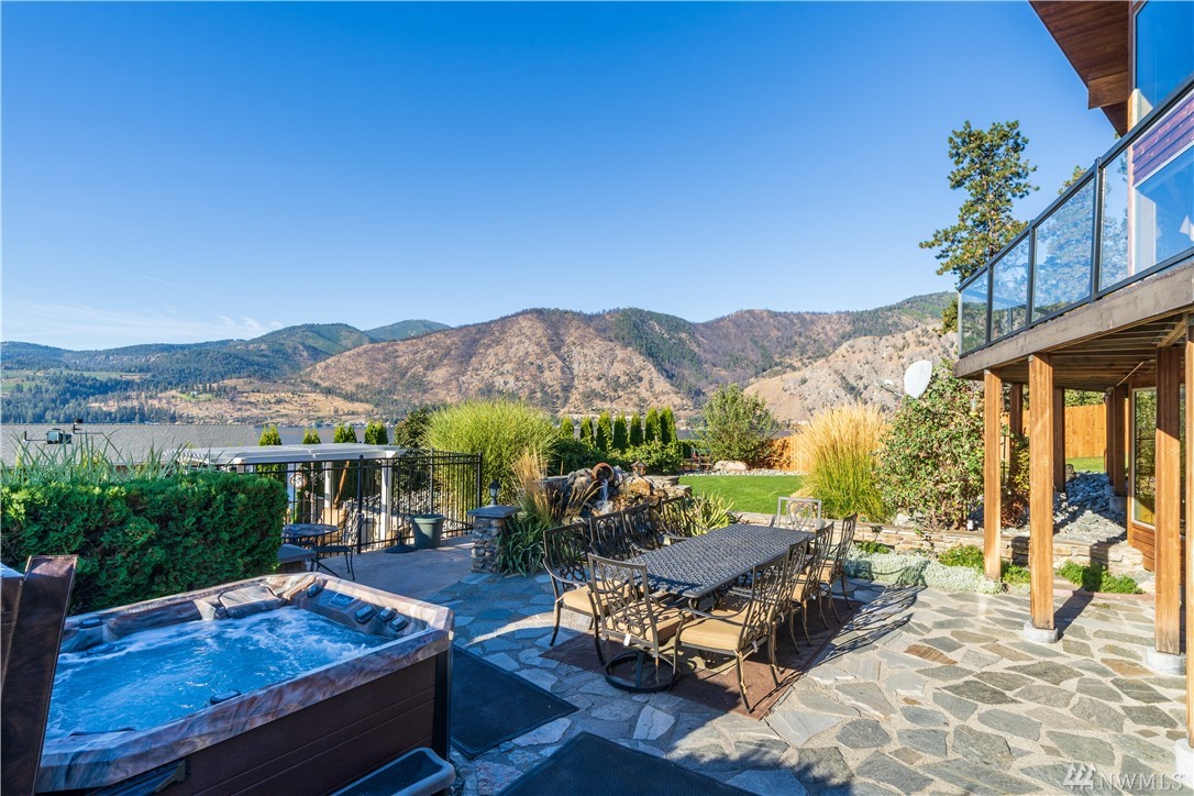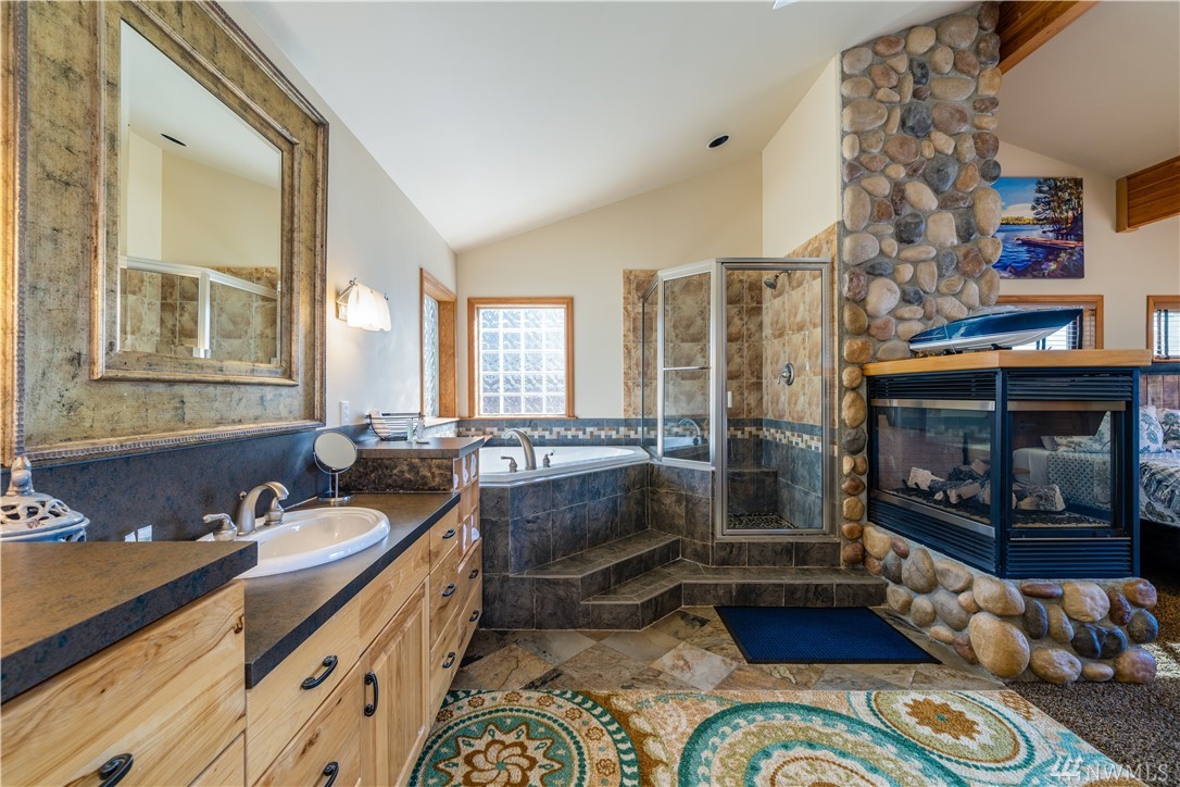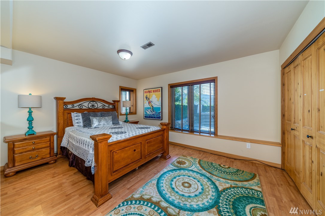 Gorgeous one of kind property, quality built Lindal Cedar Home, views of the lake, upper & lower living space for guests or potential vacation rental income. Home is beautifully designed w/an open floor plan w/cedar beams, cedar plank ceiling, main floor master w/French doors and gas fireplace, below is another full living area w/kitchen opens to beautiful patio w/hot tub, amazing pool and water feature. Just across the way from Willow Point Park! Strong vacation rental history with good income!