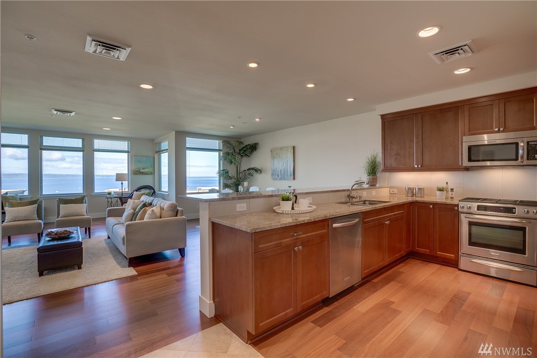 Expansive Sound & Mountain VIEWS – Adorn this lovely condominium home at pretty Point Edwards! A perfect blend of elegant finishes – hardwoods, tile, granite, stainless steel appliances tie a ribbon on this perfect package! 2 garage parking & large storage. Additional amenities -clubhouses, pools, guest suites, a theater, workout venues – it’s a lifestyle! Make it yours.