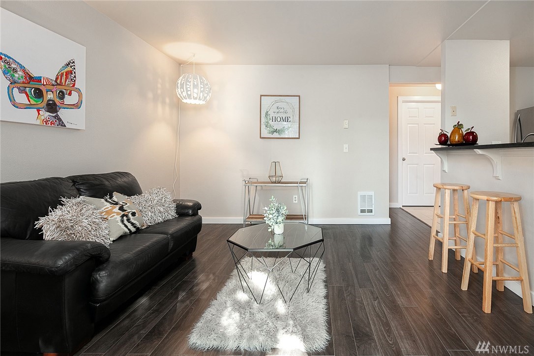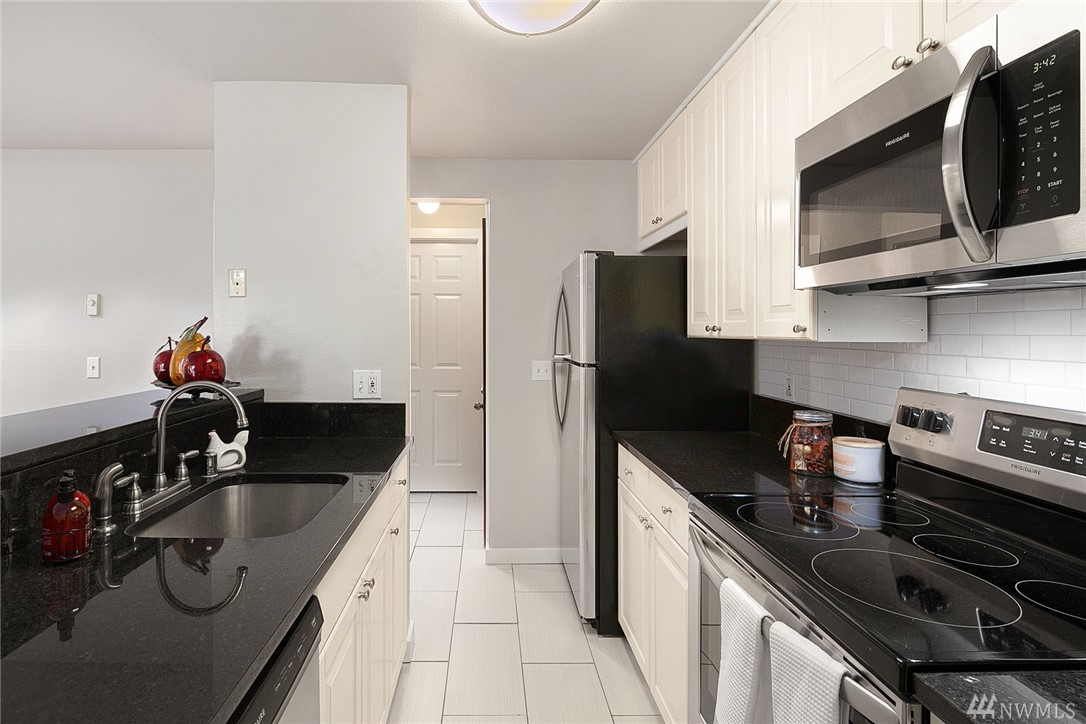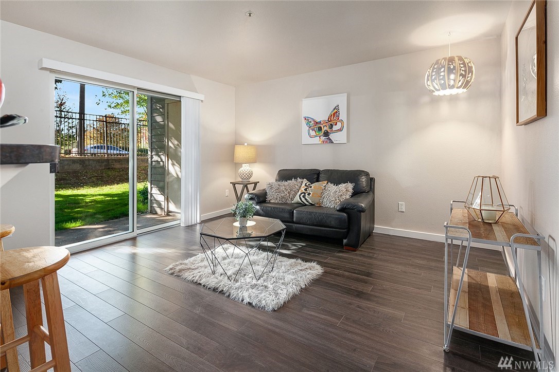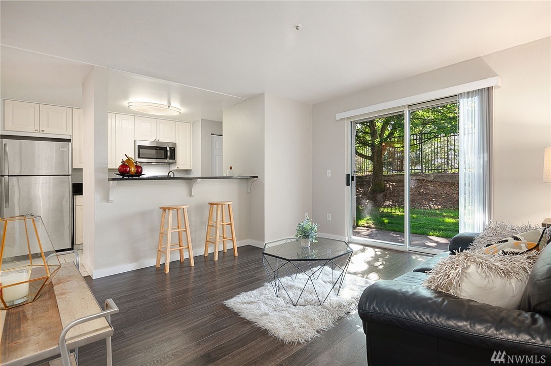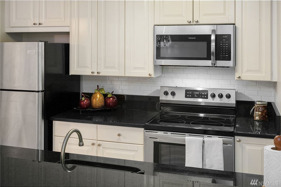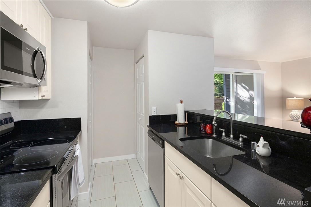 CONTEMPORARY REMODEL!! Modern kitchen with slab granite counters, SS appliances, subway tile backsplash. Entertain in or out on patio and grassy backyard off of open West facing living room. Brand new flooring, doors, lighting, molding & more. Stackable washer/dryer. Home Warranty too. LOW HOA dues incl Water/Sewer/Gar, Club house, 24 hour fitness center, racquetball, spa, pool. NO Assessment NO Rental Cap. Nearby shops & restaurants. Issaquah SD. Perfect city living, rental or weekend getaway.