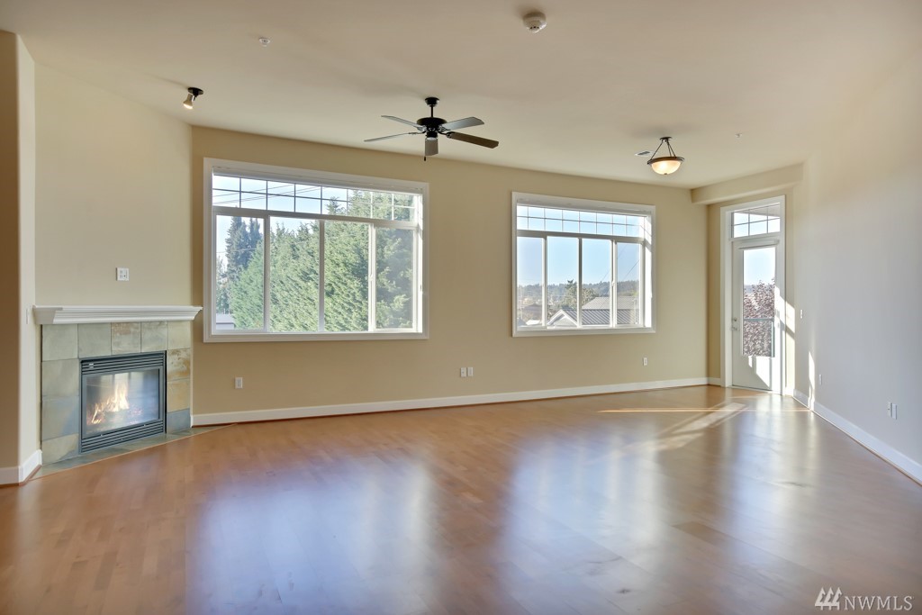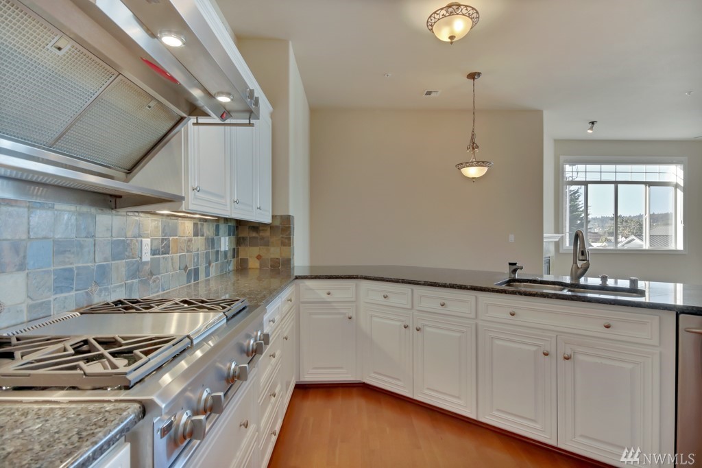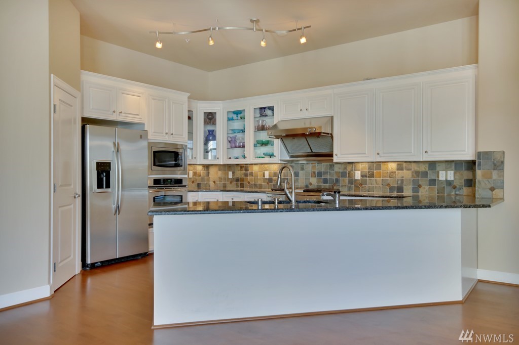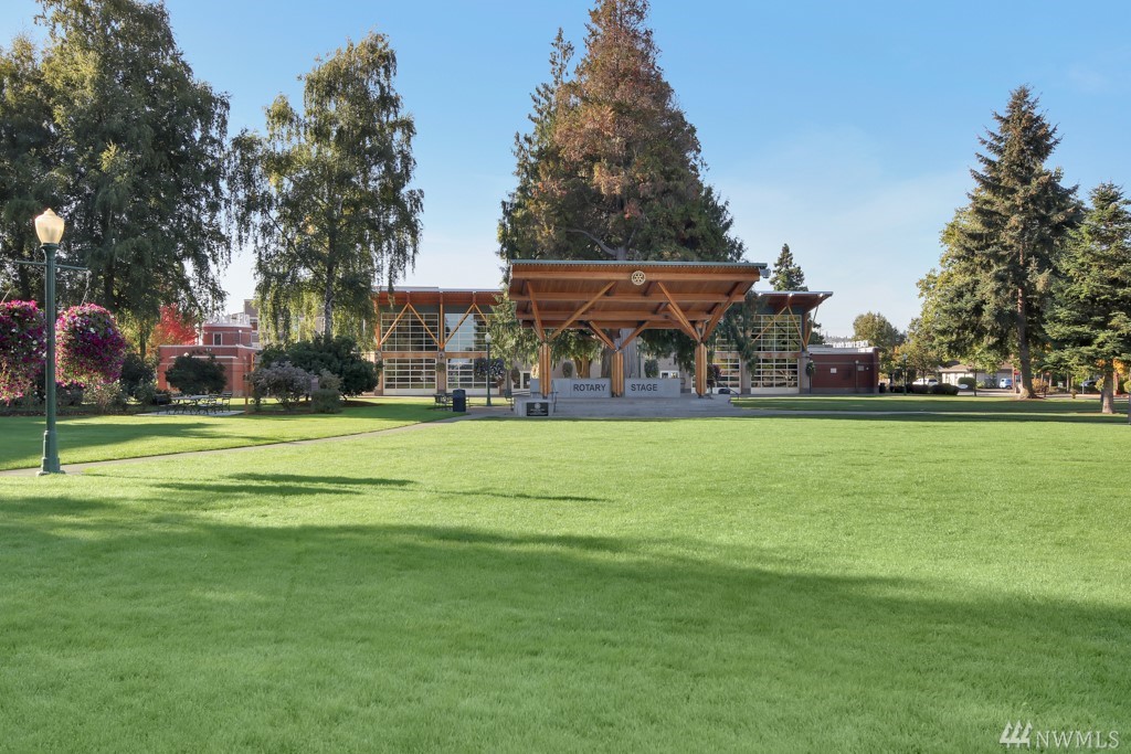 Welcome to Puyallup's Luxury Condominium Building! Open concept one story 2 bed, 1.75 bath w/ Chef's Kitchen, 10 ft ceilings, laminate flooring, granite countertops & SS GE Monogram appliances. New interior paint. Generous master w/ fully tiled 5 piece bath, shower & soaking tub. Building features A/C, elevator, secure entry & 2 car garage, community entertainment/ exercise room & individual storage. Located steps from Pioneer Park, Pavilion, Farmers Market, Library, Senior Center, shops & more