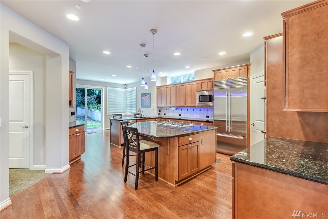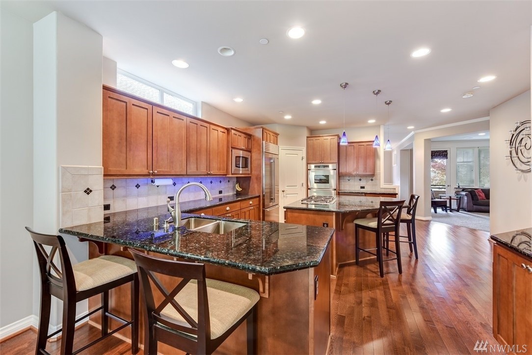 Fabulous views, easy I-90 and park & ride access plus modern floor plan equal the ideal combination. Main level features open great room w balcony, true chef's kitchen expansive eating nook, bonus room, and den leading to the wonderful fenced back yard. Three full bathrooms upstairs! The master suite offers dual walk in closets and sitting area, along with three additional bedrooms. Lower level living area offers kitchenette & 3/4 bath, w/ barrier free access from over sized tandem garage.