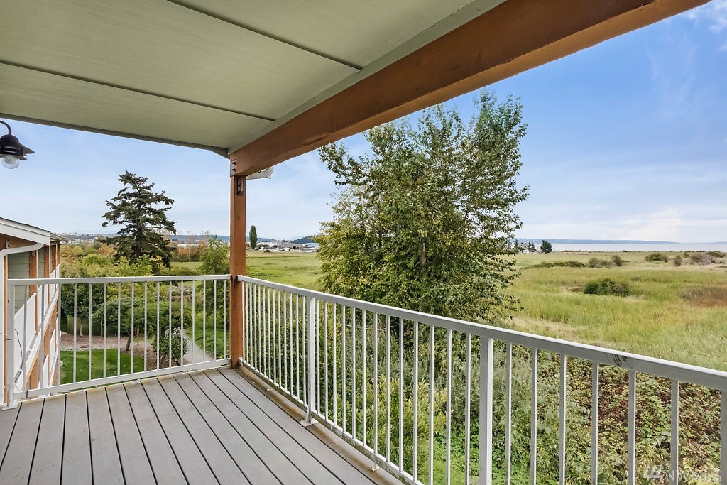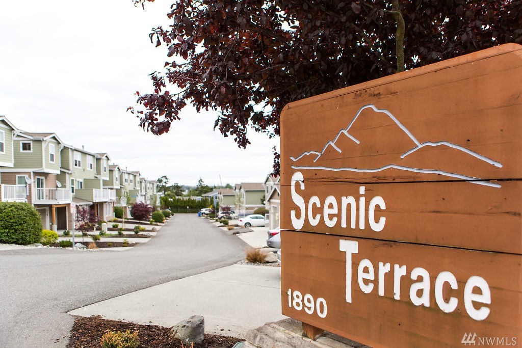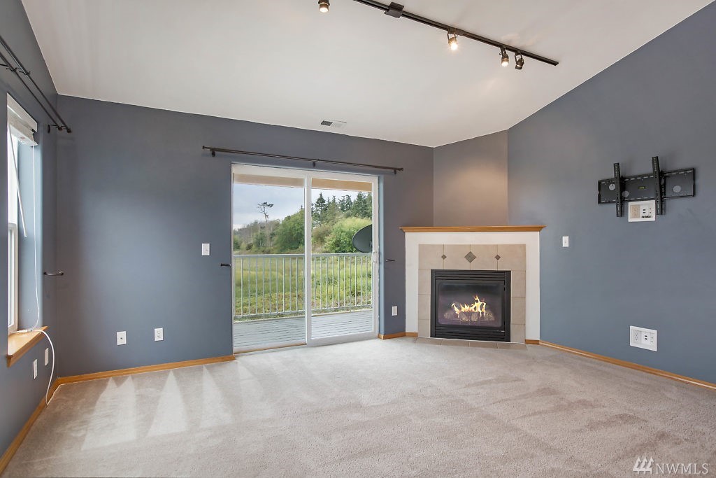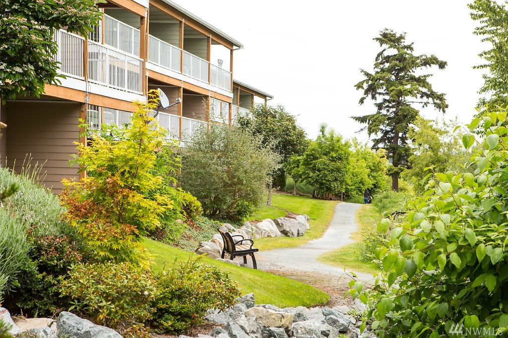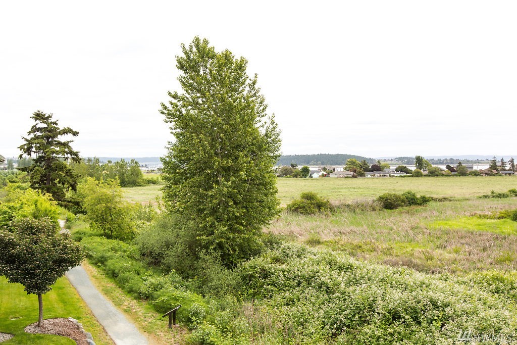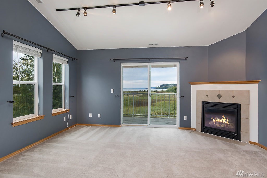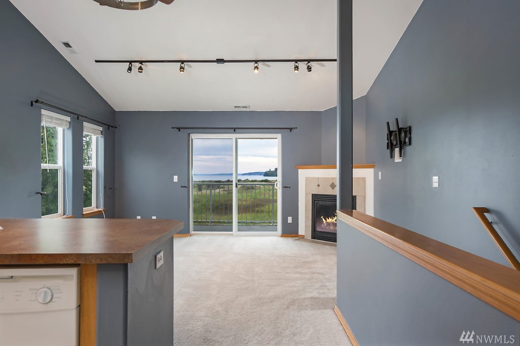 Bay & Cascade Mtn range views from every floor! This end unit townhome-style condo has a main floor master suite with a private deck. The great room with a natural gas fireplace & another private deck, kitchen, dining, laundry and a 2nd bedroom & bathroom spread out on the upper level. The huge bonus room on the lower level can be used as a family room, another bedroom or office/exercise. Private garage. The complex backs to a lovely protected nature area with trails to the beach & downtown.