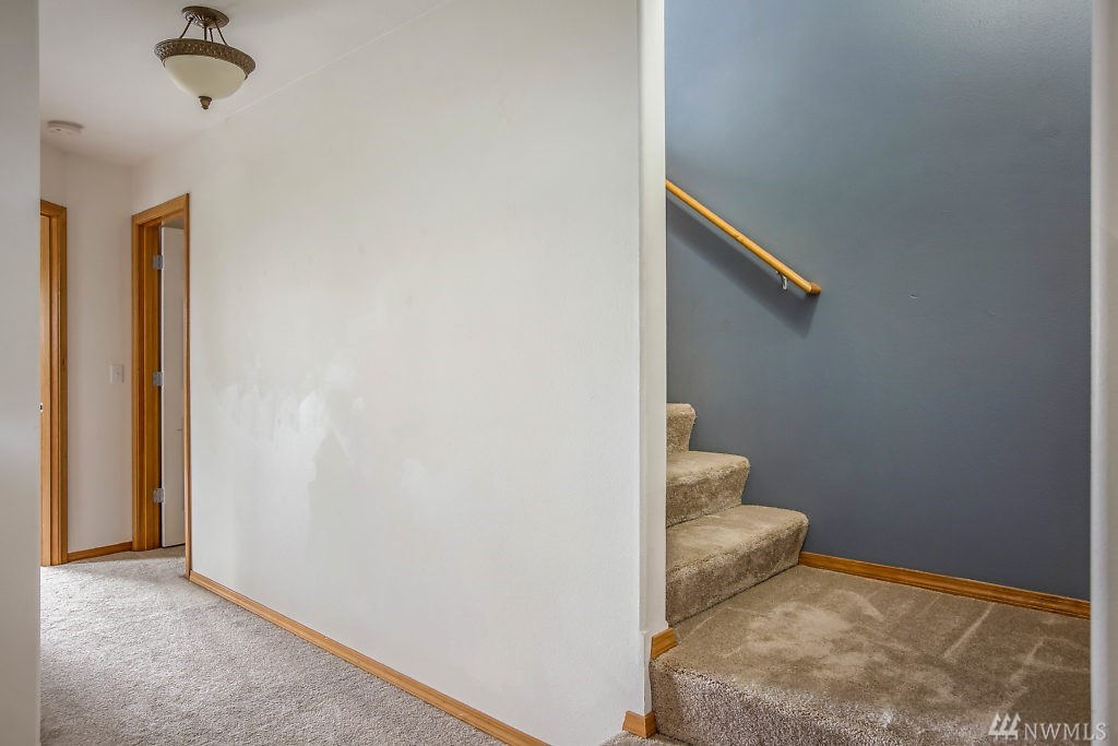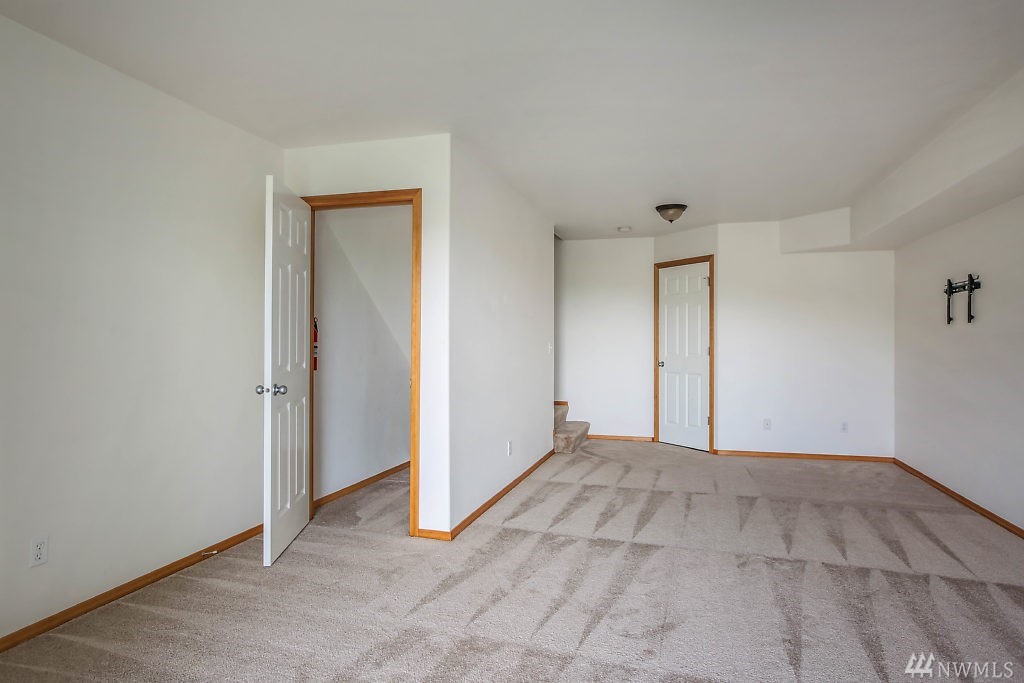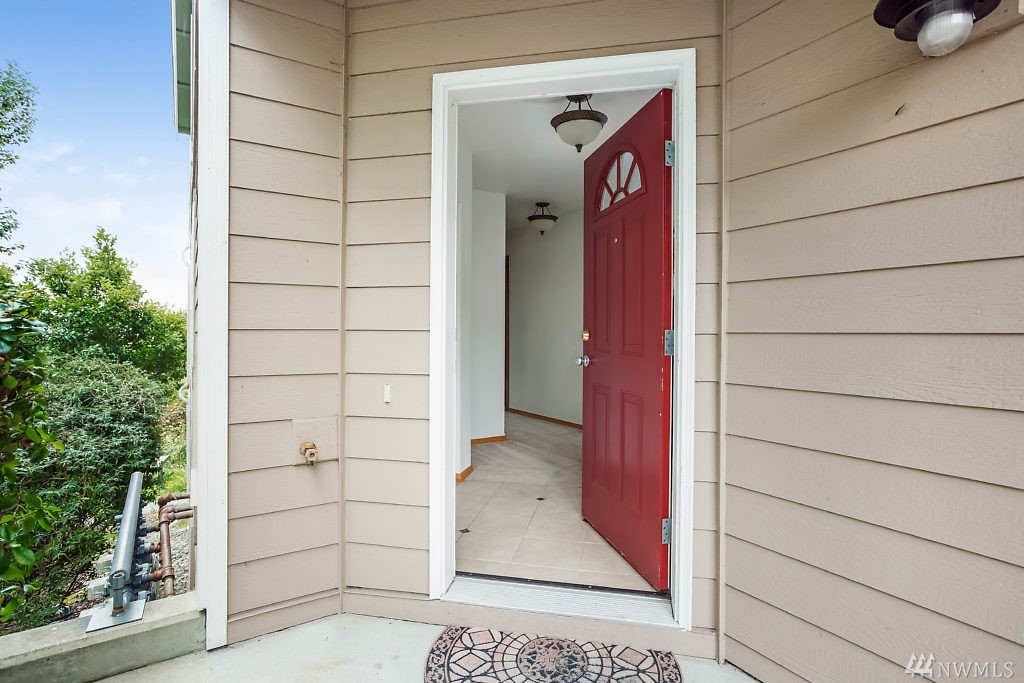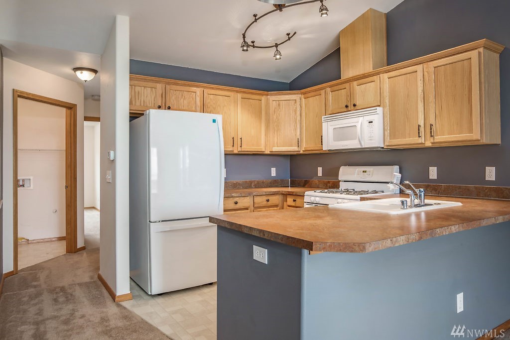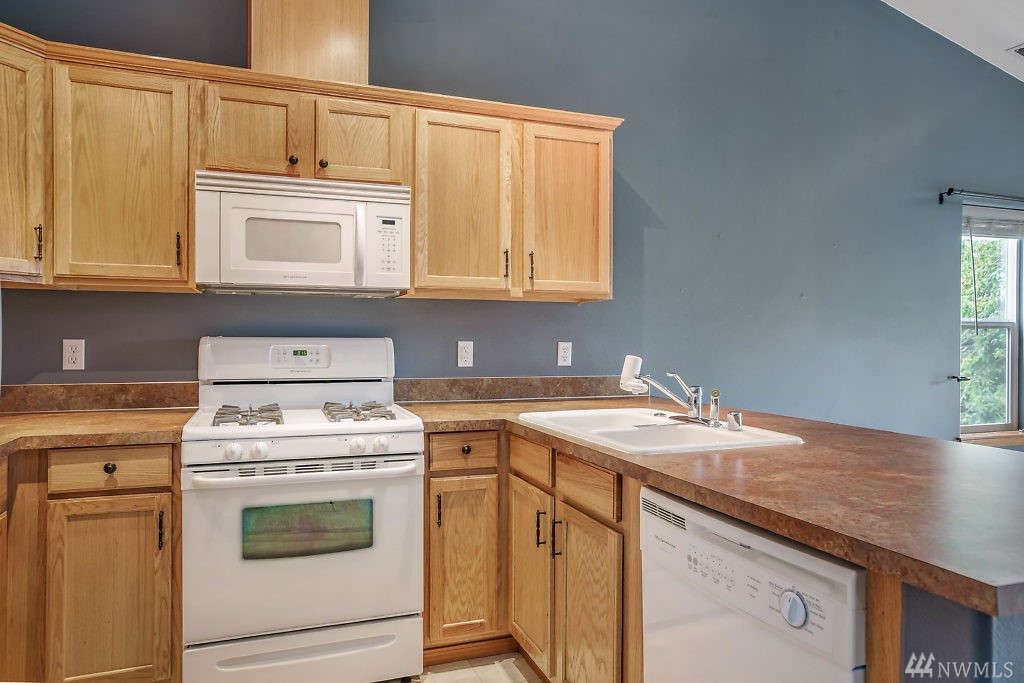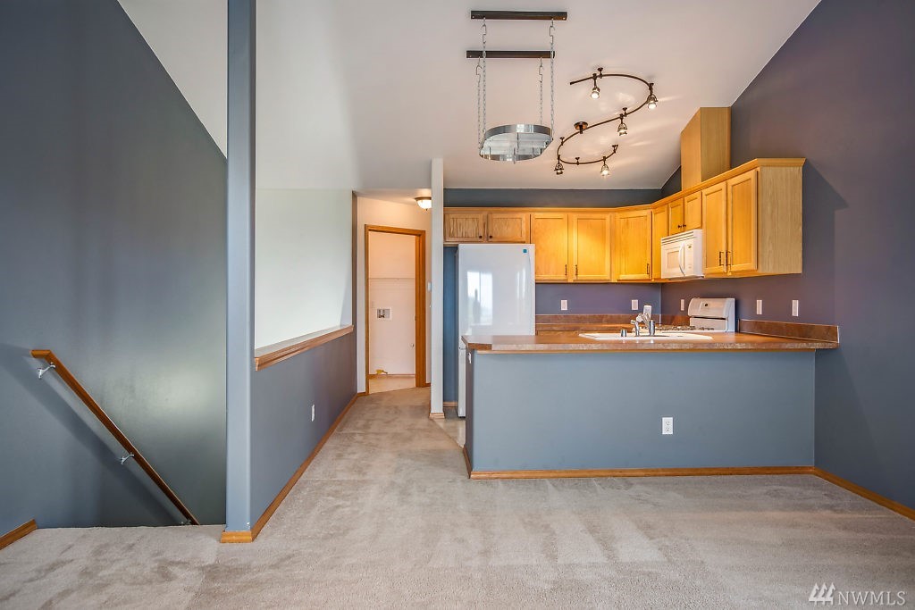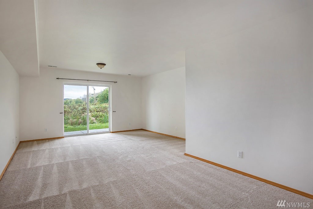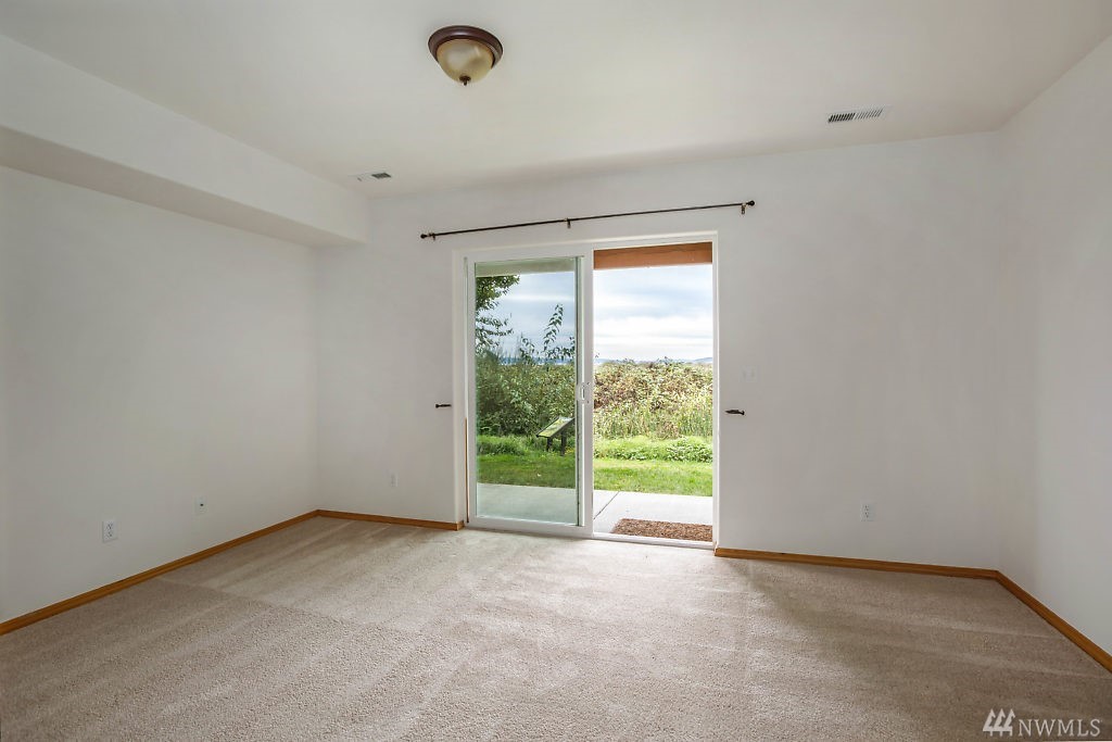 Bay & Cascade Mtn range views from every floor! This end unit townhome-style condo has a main floor master suite with a private deck. The great room with a natural gas fireplace & another private deck, kitchen, dining, laundry and a 2nd bedroom & bathroom spread out on the upper level. The huge bonus room on the lower level can be used as a family room, another bedroom or office/exercise. Private garage. The complex backs to a lovely protected nature area with trails to the beach & downtown.
