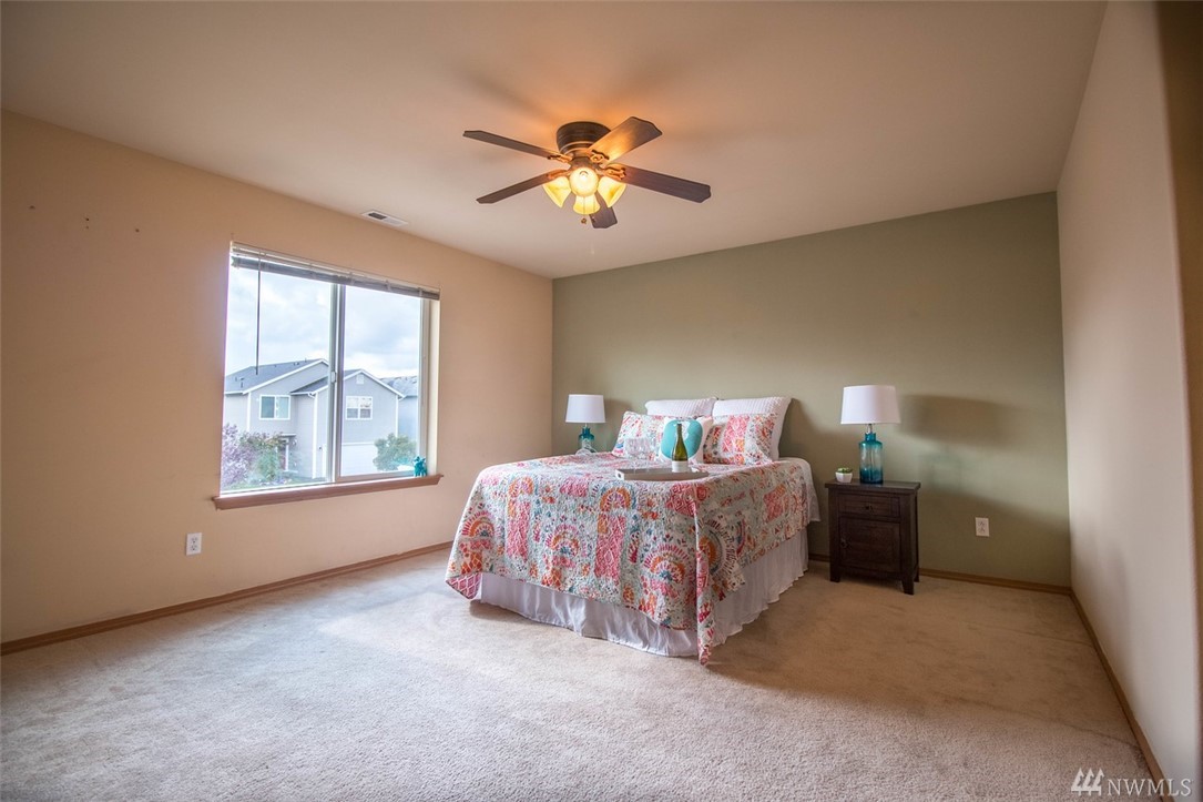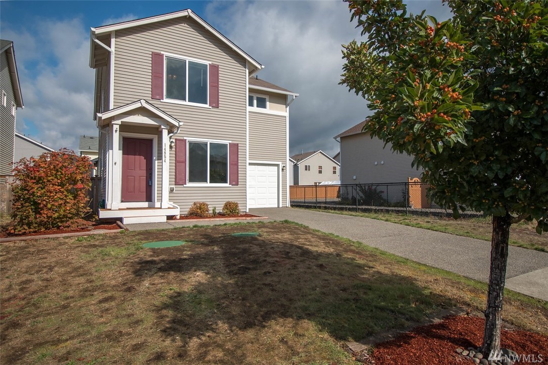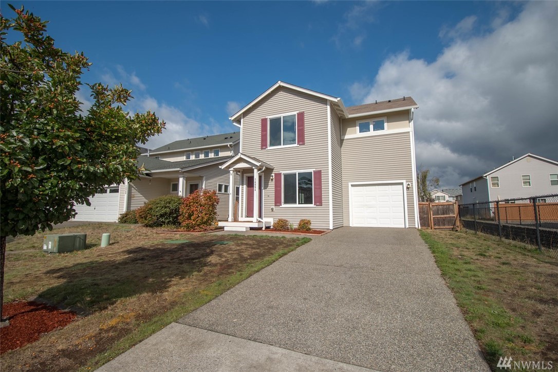Spacious 4 bedroom, 2.5 bath home with huge kitchen, dining, main floor bedroom, family room & laundry, upstairs large master bedroom with walk-in closet, master bath & two more spacious bedrooms & full bath. Sliding glass doors to patio and fully fenced yard, air conditioning, nice neighborhood with parks, walking distance to bus, 5 minutes from Downtown Yelm, less than 30 minute drive to JBLM