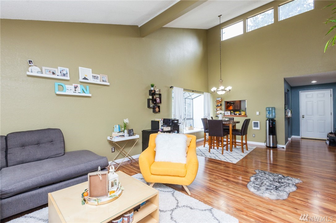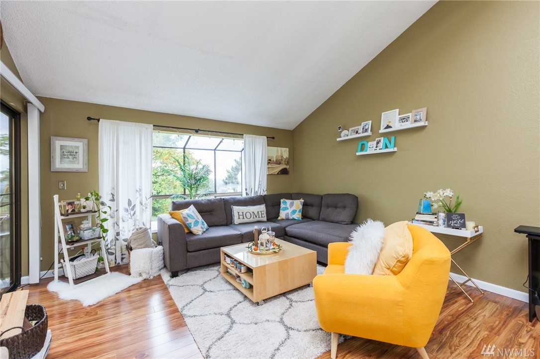 Amazing top floor 2 bd, 1.75 ba condo at the Sunwood Condo complex! This unit is updated with beautiful finishes. The kitchen has updated counters and new cabinets, all new flooring including laminate plank floors, fully updated bathroom, and the most romantic brick feature wall in the master. You will enjoy breath taking views of the Kent Valley and Mount Rainier in your very quiet, peaceful condo. The complex has no pet restrictions and a pool!