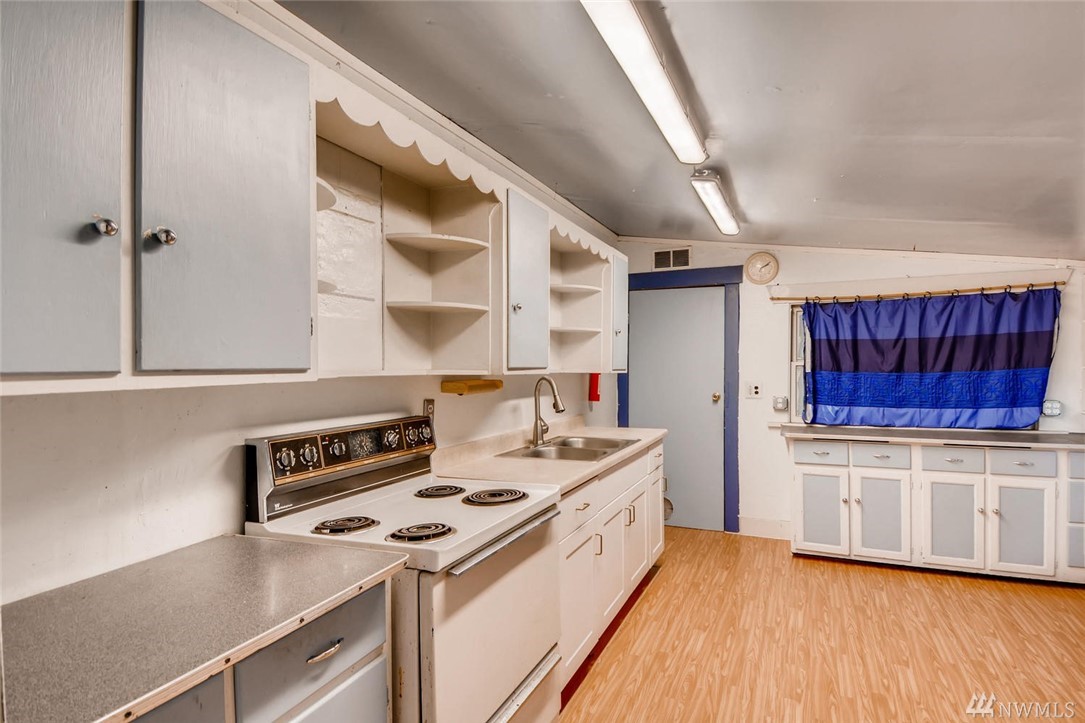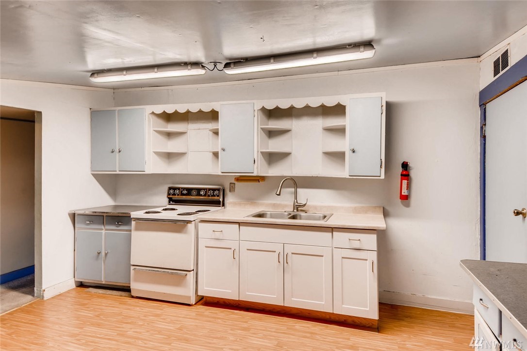 This home is in a great location and ready to be restored or built new. Enter into generously sized living room. On the left you have a spacious bedroom and the main bathroom. Continuing forward from the front door on the right you have a second bedroom and on the left you have the large kitchen. Easily re-work this space into a 3 bed 1.5+ bathroom! Furnace and laundry area off the kitchen. Home is being sold as-is.