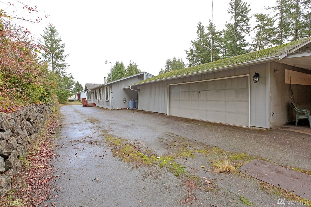 Great location between Scenic Beach St Pk and Boat Launch, St dead ends into park gate. Bright and well lit rambler w/ vaulted ceiling in LR, Master with walk in closet, kitchen with island, large deck, peek a boo view of Hood Canal, huge detached garage (864 sq ft) w/ large workshop with 1/2 bath, boat shed (352 sq ft), wood shed, lots of storage, beach rights/beach access, RV Parking, 20 min to Silverdale, Low maint yard (2/3 blacktop)