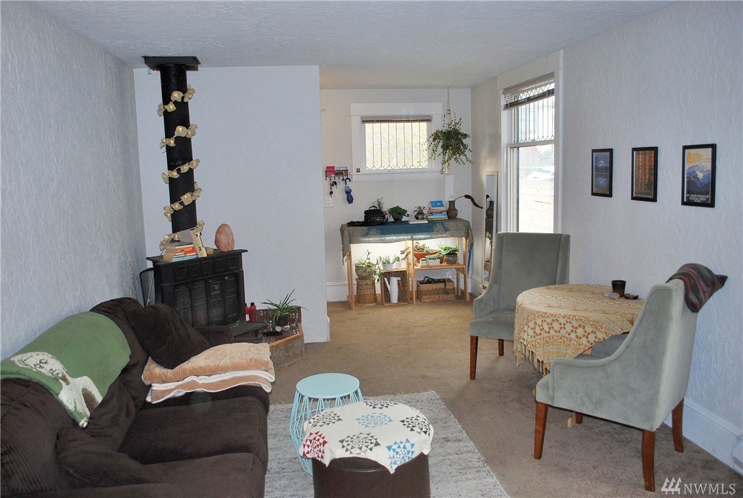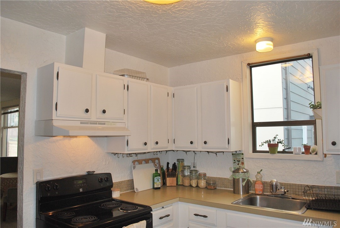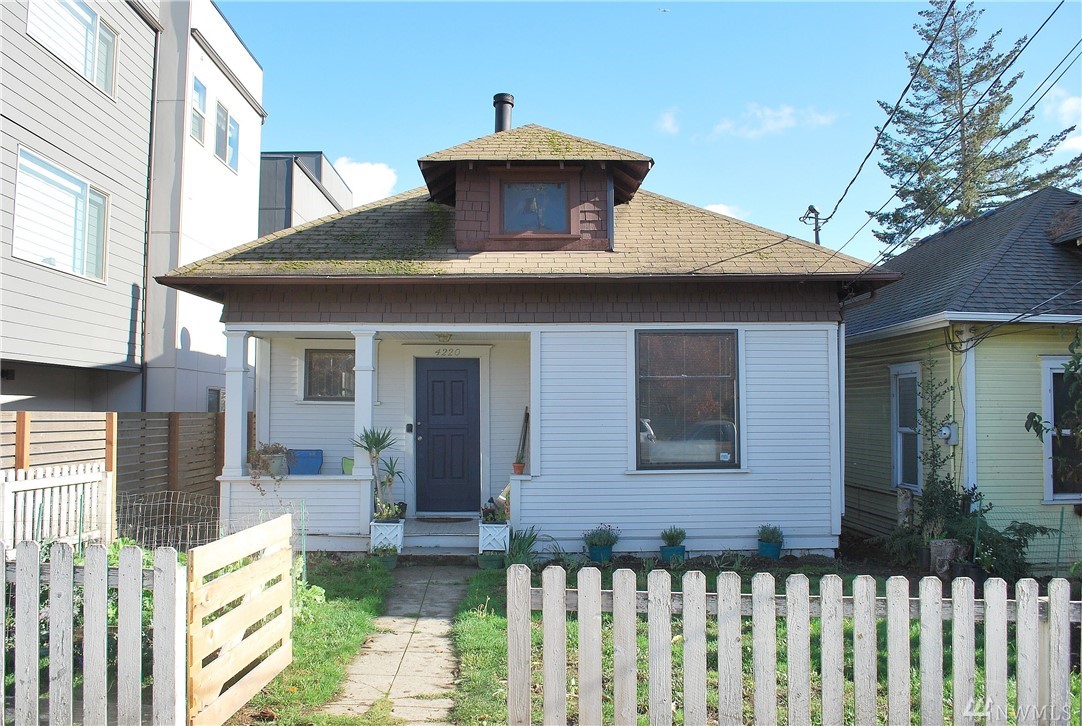 Cute street appeal with a larger front porch, located close to major transportation to downtown, and I-5. Wonderful high ceilings makes all rooms appear larger than they are. Large living room with some leaded glass windows and wood burning stove. Kitchen has Formica surfaces and matching black appliances. Spacious bonus room off kitchen. Completely fenced yard with a sunny garden space. Boasts a Walkscore of 83! Great alternative to a Condo.