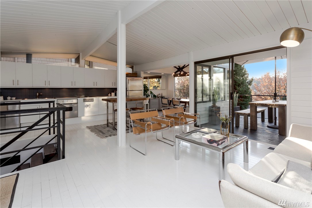Amazing opportunity in Seattle's most coveted neighborhood, this fun, mid-century home offers abundant natural light, wonderful outdoor spaces, & chic interior living. Entry level is great room style, w/vaulted ceilings, windows on 4 walls, easy entertaining, & a perfectly sized deck for outdoor dining. Built into the hillside, this home descends to 3 beds/2 full baths, media/family room w/glass garage door. Ample storage and indoor/outdoor sensation throughout this lovely home. A must see!