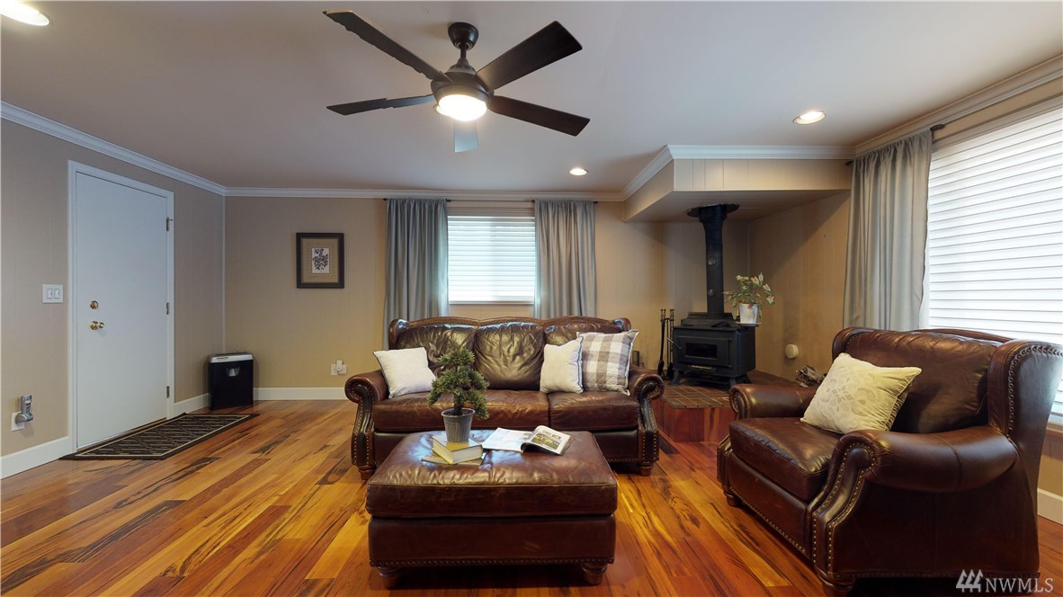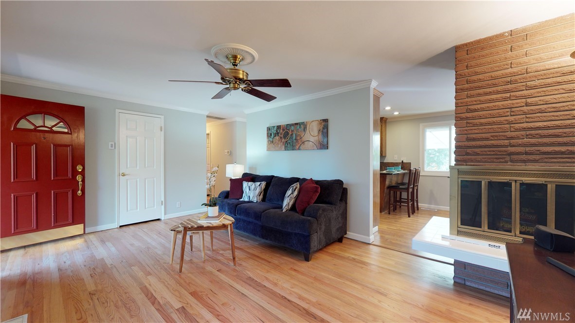 This Beautiful 3 bedroom one level home features Refinished hardwood flrs, freshly painted, a Living Rm w/fireplace, spacious family rm w/wood burning stove, air conditioning, a private setting with covered patio and exquisite landscaping. You will enjoy the open kitchen and dining area. The backyard also has a gazebo and the home is wired for a generator. Other features include a newer roof, cul de sac location, close to the elementary school and the light rail is located within 1.5 miles.