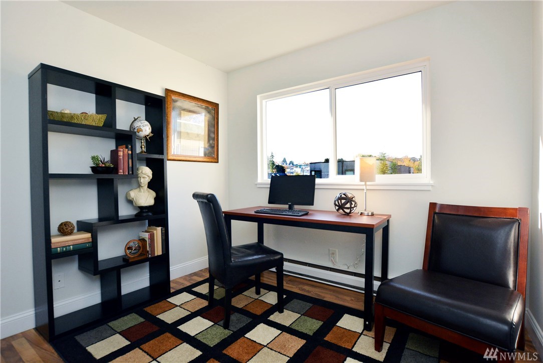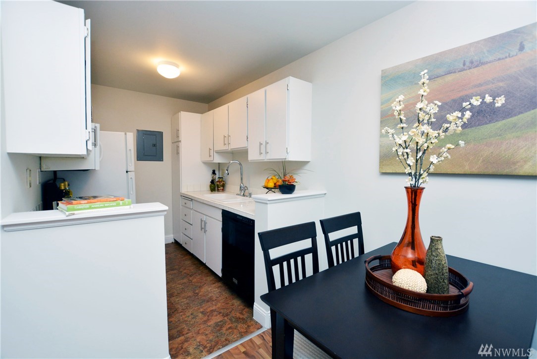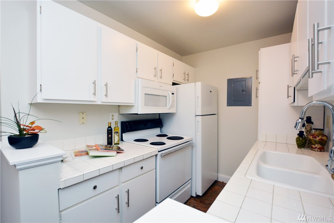 TOP FLOOR, south facing on quiet side of building, 2 bedroom, light filled move in ready home at the Pendleton Miller condo. Vibrant Capitol Hill on a tree lined street providing privacy through every window. Walking distance to restaurants, wonderful nightlife, and downtown. Bus stop across street on E John. Double pane windows, fresh paint, washer and dryer in unit, low HOA's. Designated parking space, community outdoor space, secure storage right outside your front door, and bike room.