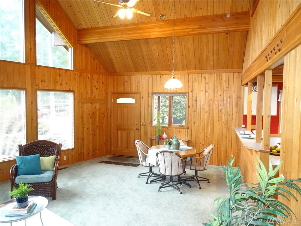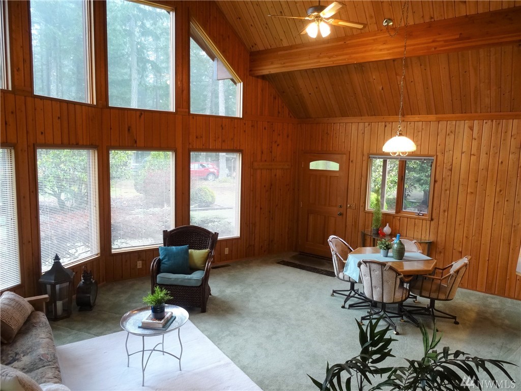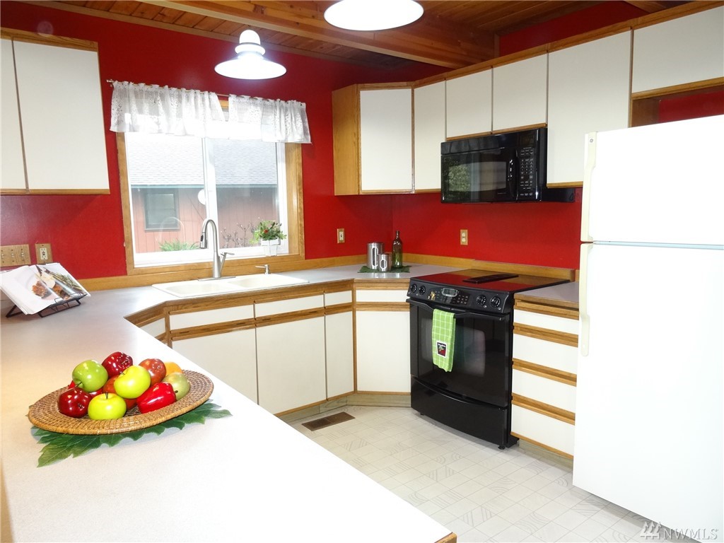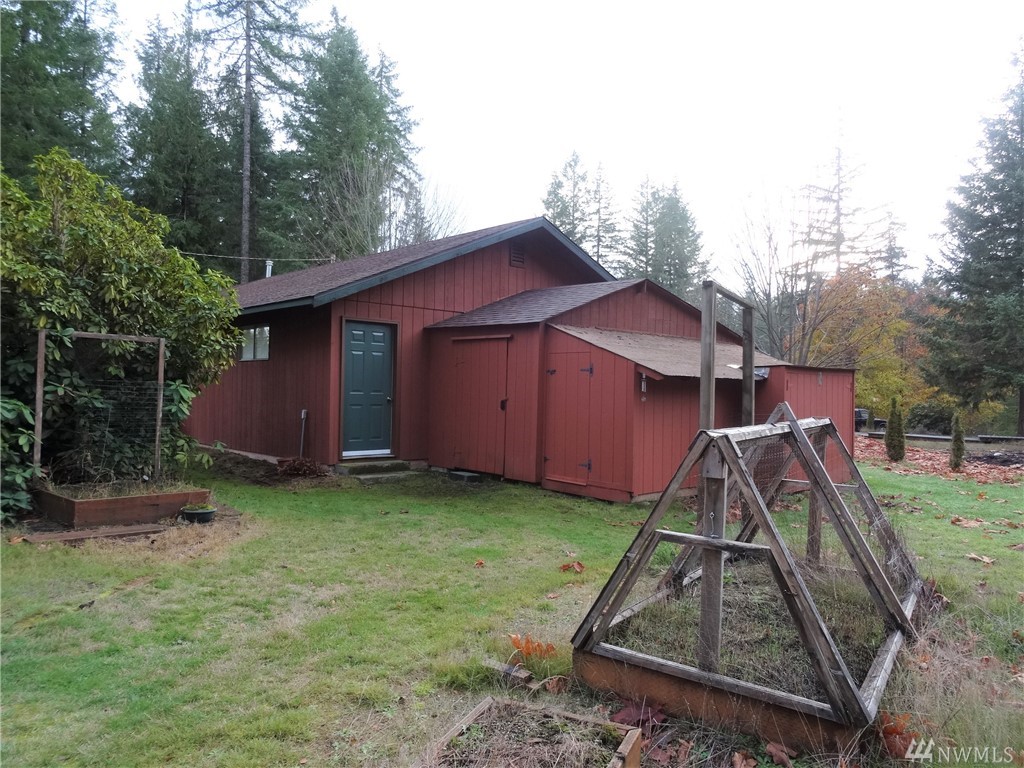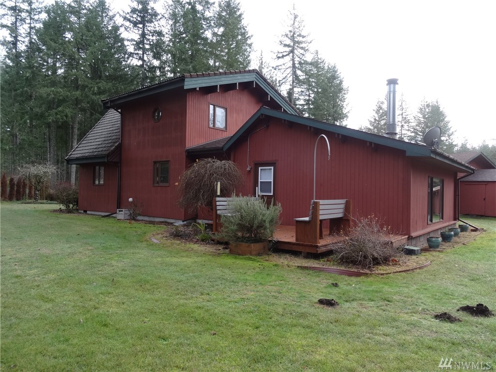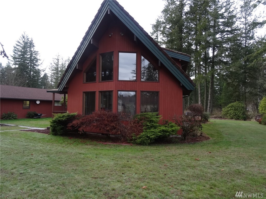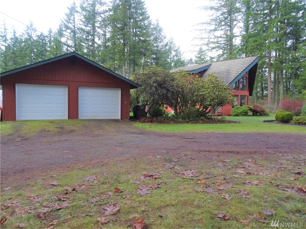 Enjoy semi-rural country atmosphere of custom A-frame w/solid cedar addition situated on partially fenced shy acre. Open beam cathedral ceiling, upper loft-style master with w/3 qtr bath; open kitchen w/eating bar, family room, kitchen open to living room with wall of windows, bonus room, laundry room. "Must-see" detached heated shop/garage (24'x52') includes parking for 2+ cars; shop area can be separate or also used for parking, generator hookup + generator. New heat pump/furnace.