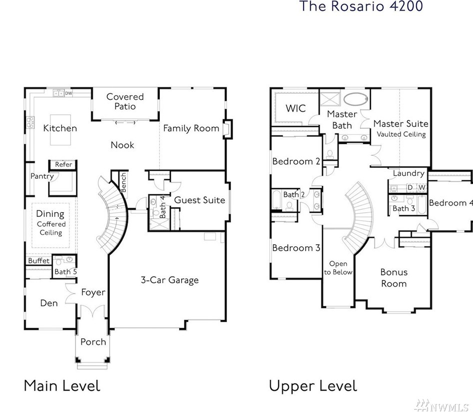 Introducing the newest community by American Classic Homes: Hawks Estates The Rosario: Guest bedroom on main floor. Soaring 10 ft ceilings and 8 ft doors, quality finishes thruout. Den plus bonus rm. Exceptionally well-appointed kitchen includes high-quality appliances, smooth-surface counters. Nest thermostat. Luxurious owner’s suite features vaulted ceiling, slab marble counters in bath. Lower level rec rm. Covered patio with recessed lights. Landscaped front and back yard.