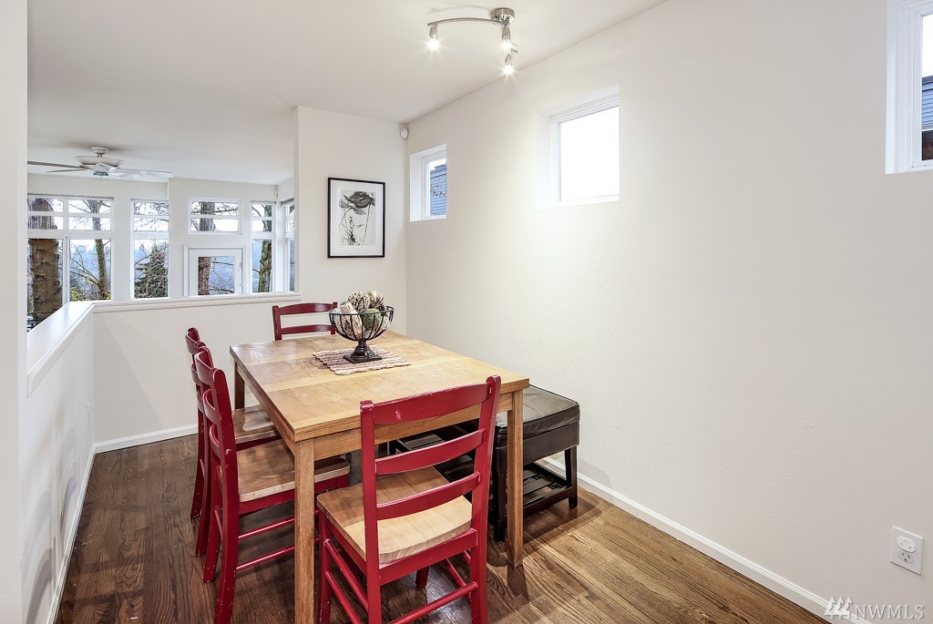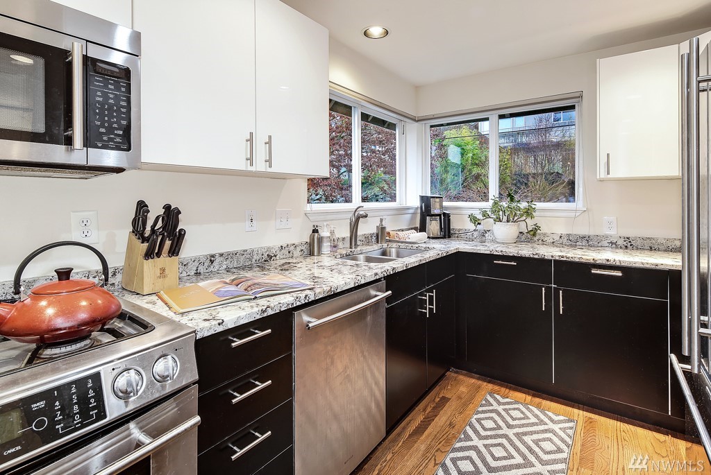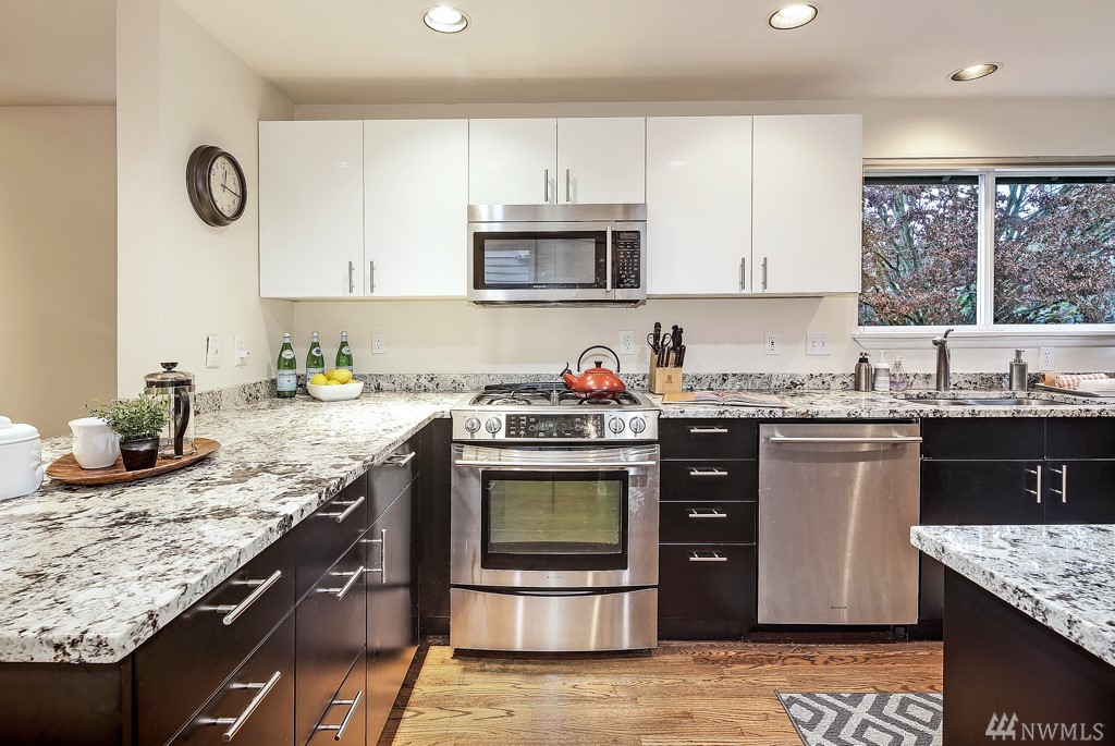 With a wall of windows which look out to a stunning view of the Cascade Mountain Range, this well-appointed, contemporary, open-concept home is located just up from Madison Street's restaurant row. Master suite with walk-in closet, soaking tub & view deck. Updated kitchen with gas range, slab granite, eating bar & pantry. Walk score of 83 & close to several bus lines. Your perfect in-city oasis!