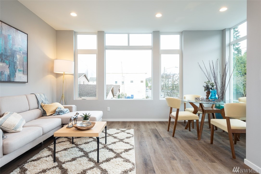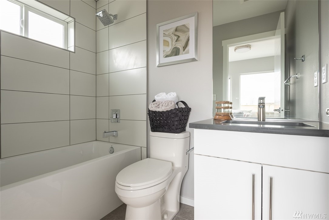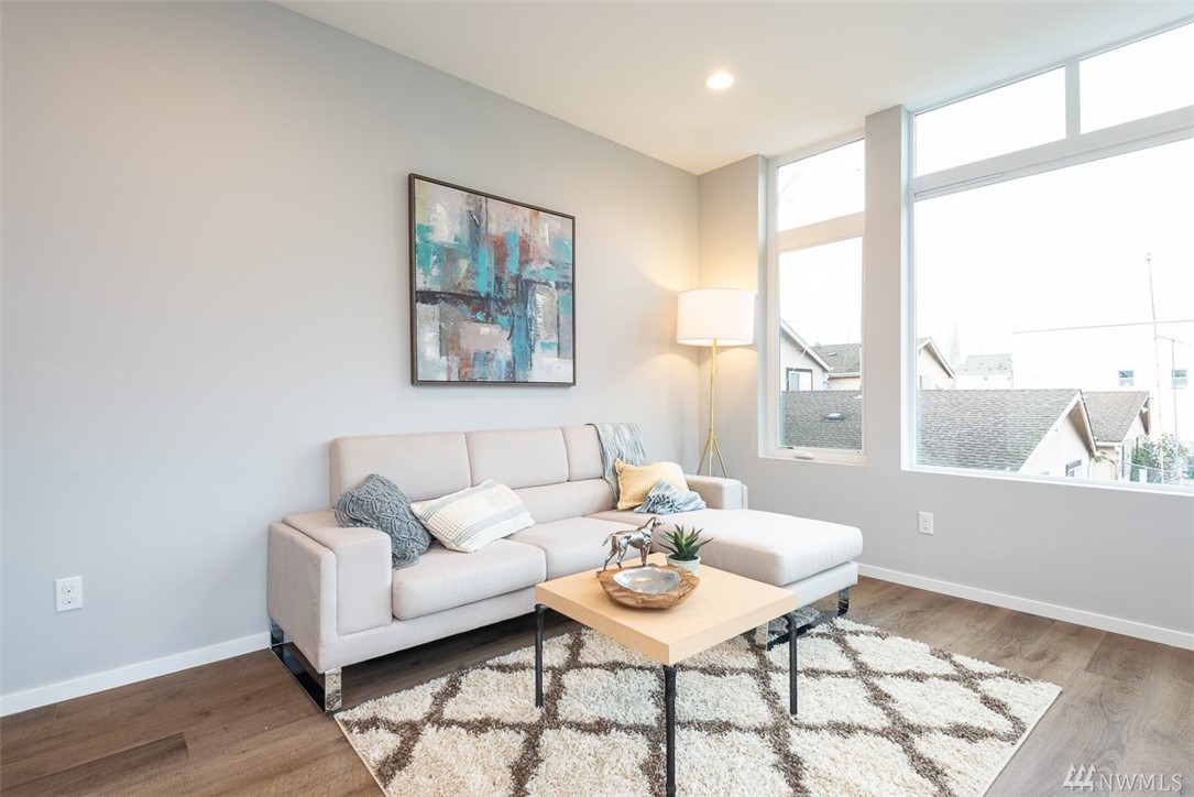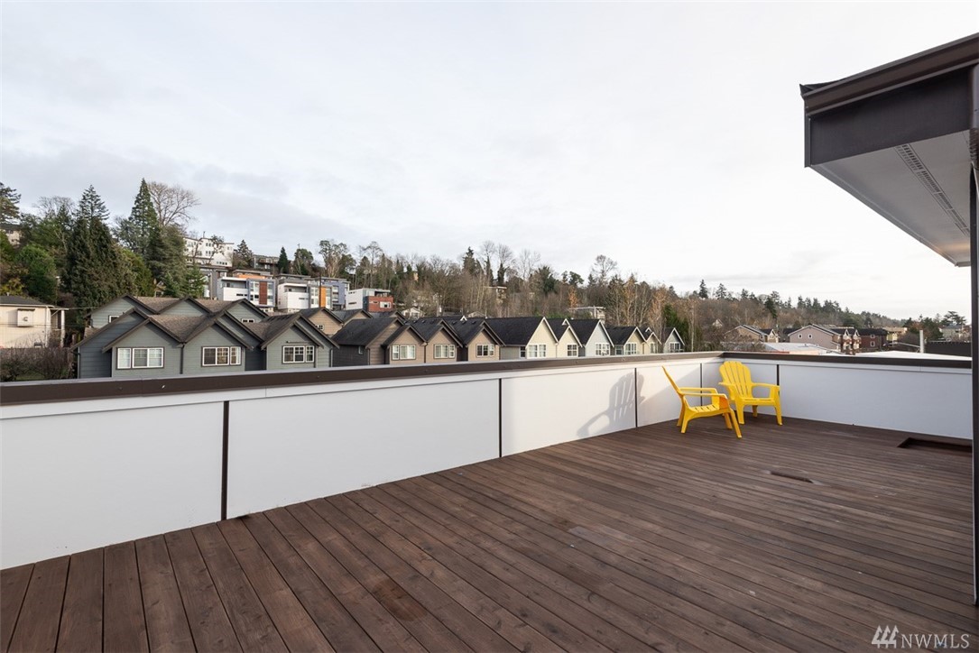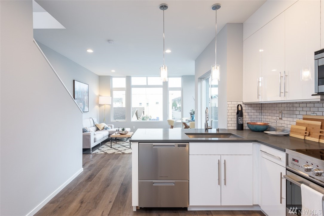 Move in ready townhome in West Seattle that offers attached garage and driveway! 2 bedrooms floor plan, both with en-suites, spacious living room kitchen and dining w/half bath. Kitchen has slab counters, full height back splash, SS appliances, hardwood floors on main, ceramic tile bathroom floors. Top roof deck for all of your entertainment! Contemporary influenced architecture fits with the existing neighborhood and only minutes from downtown.