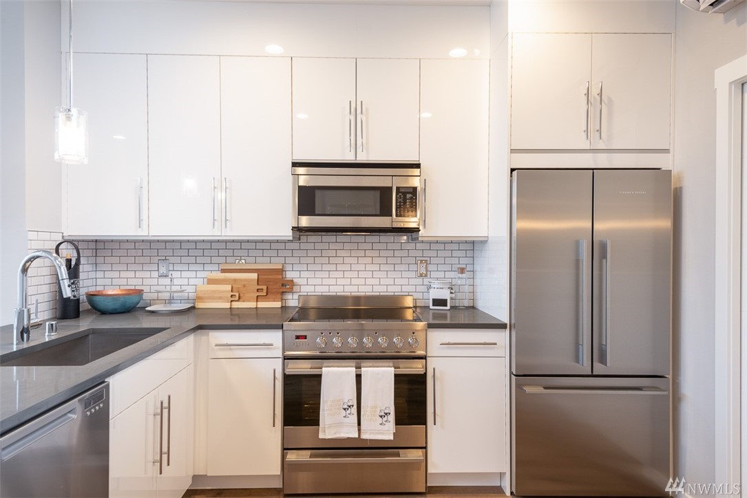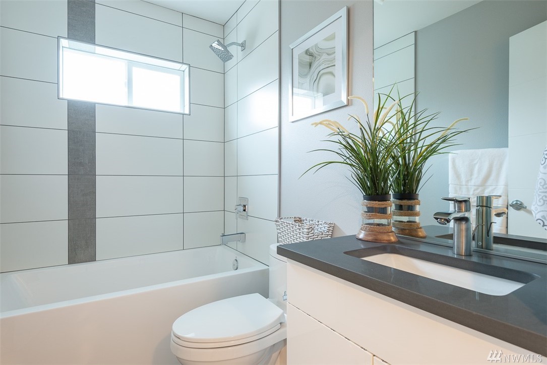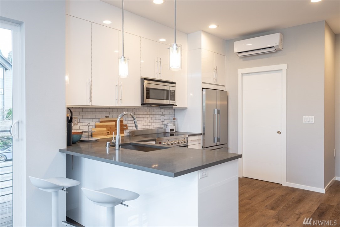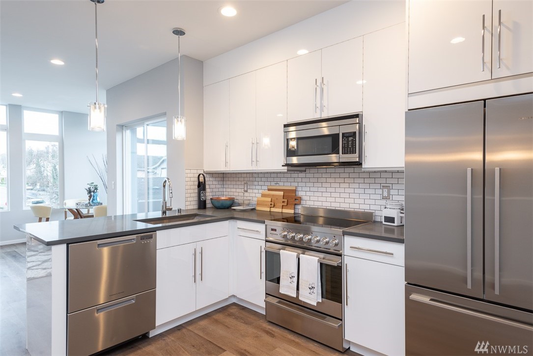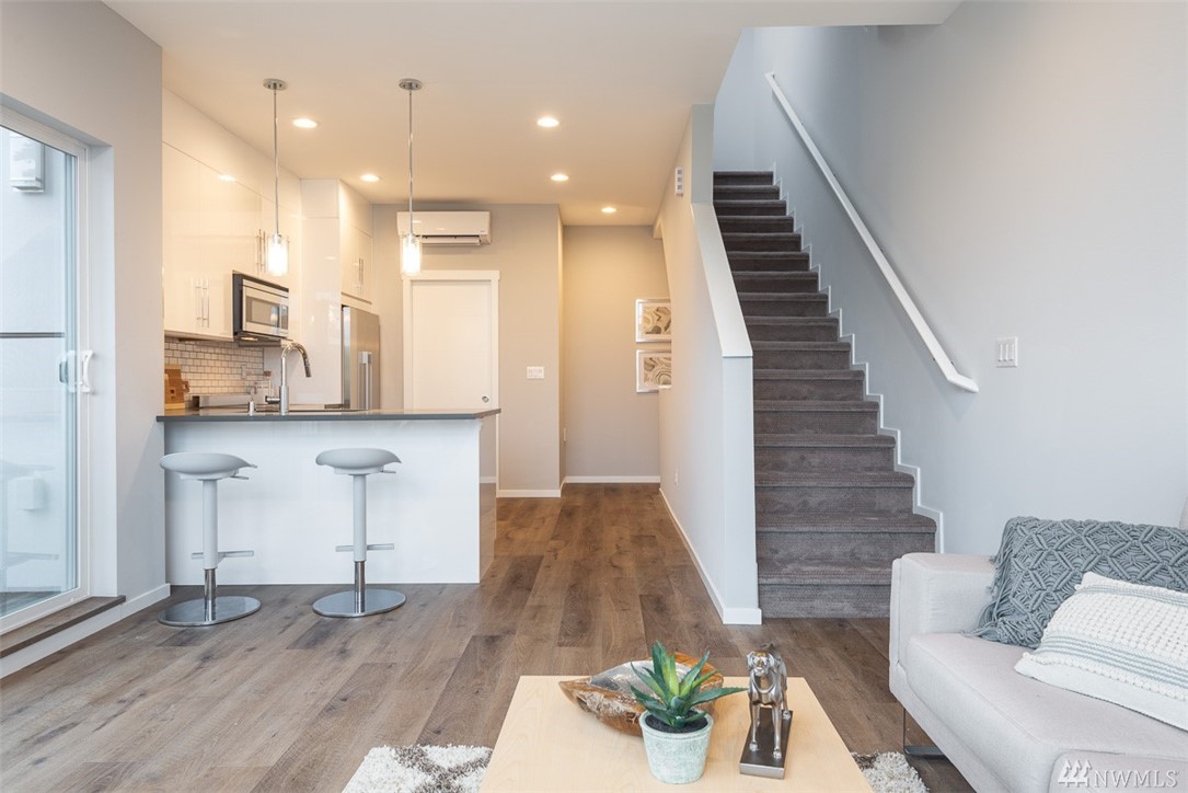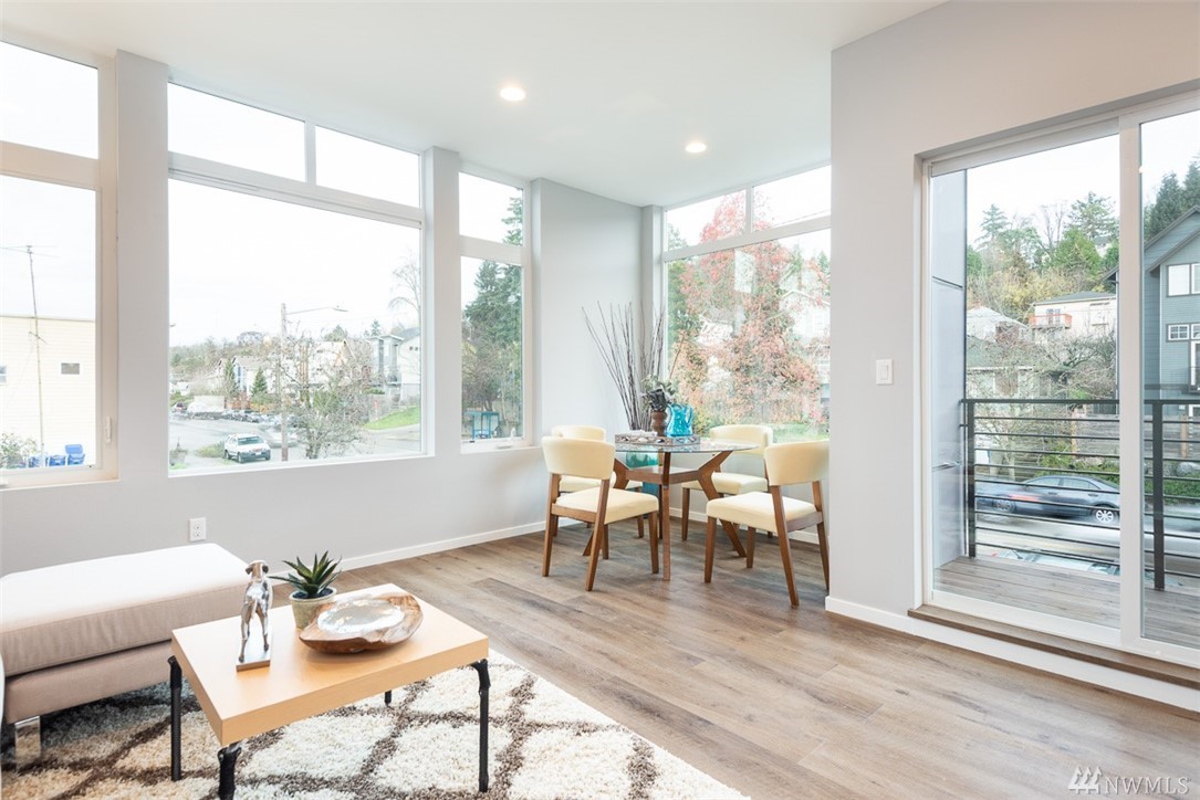 Move in ready townhome in West Seattle that offers attached garage and driveway! 2 bedrooms floor plan, both with en-suites, spacious living room kitchen and dining w/half bath. Kitchen has slab counters, full height back splash, SS appliances, hardwood floors on main, ceramic tile bathroom floors. Top roof deck for all of your entertainment! Contemporary influenced architecture fits with the existing neighborhood and only minutes from downtown.