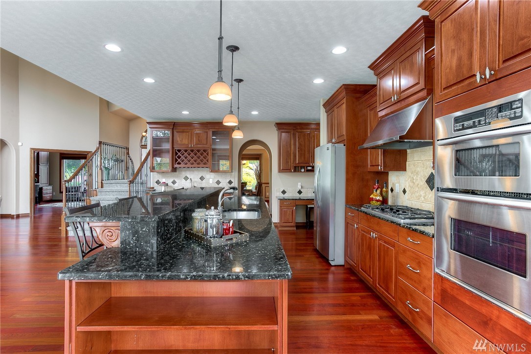 Gorgeous Edgewood Estate on almost 1.5 acres offering a park like, private, cul-de-sac lot backing to a greenbelt. Expansive patio w/ waterfall perfect for entertaining. Step inside to the magnificent great room & chefs kitchen w/ cathedral ceilings & massive windows letting the outdoors in. Gorgeous stone fireplace. Butlers pantry. Main floor master w/ fireplace, ensuite & 2 LG WIC's. Spacious upstairs bonus room w/ attached theatre or workout room. Don't miss the huge unfinished storage area!