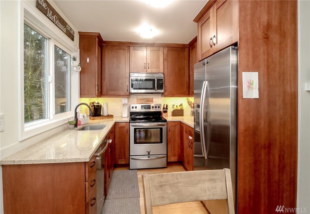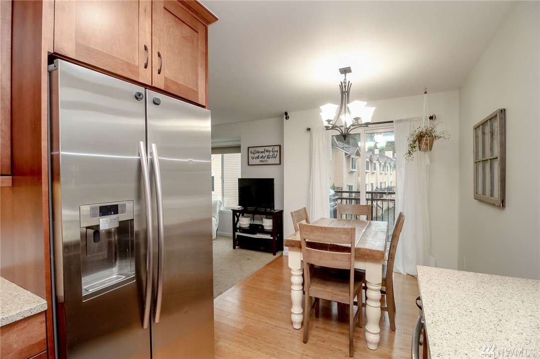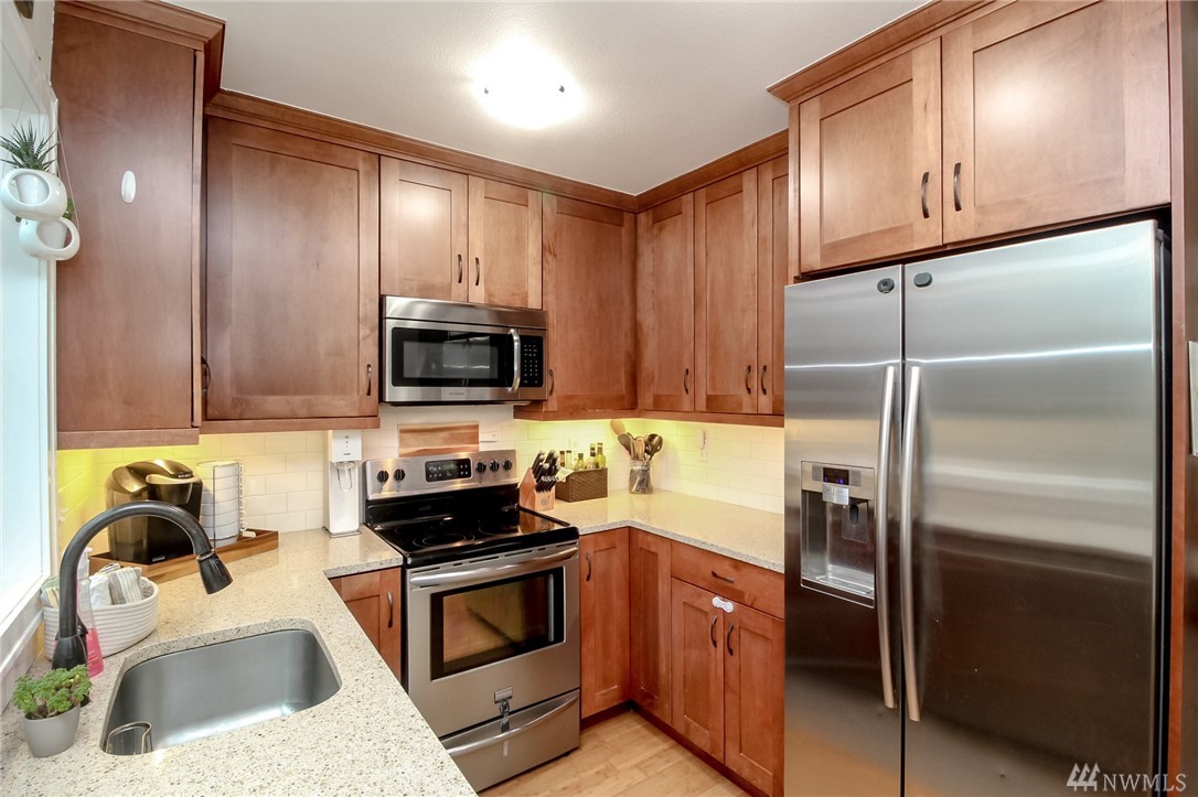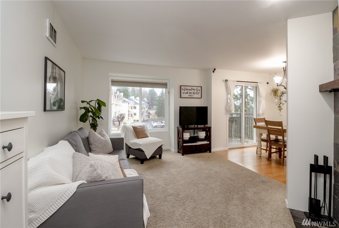 Updated, Light-filled Condo Close to Downtown Woodinville Shops, Restaurants, Parks & Wineries! Remodeled Kitchen incl. Stainless Steel Appliances, Quartz Counters, Beautiful Cabinetry & Bamboo Hardwoods. Spacious Master Bed. w/en-suite bathroom & two Closets, as well as another Full bath, Bedroom, Laundry Closet & Built-ins; giving you plenty of storage. Attached Garage w/storage, as well as another assigned spot. Community Garden, Sports Court & Gym. No Pet Restrictions. Close to 405 & I-5!