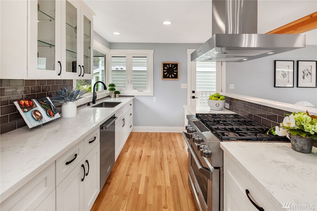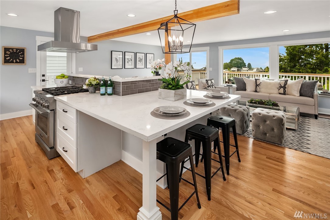 Completely Remodeled View home in Kirkland's East of Market neighborhood. Home features clean design and extreme attention to detail. Open living concept, luxury gourmet kitchen with Stainless appliance package. Oversize deck with expansive Lake & Seattle City views suited for Entertaining & Relaxation. 2 Beds, 2.75 baths and additional flex room downstairs. Walk-able to Downtown Kirkland, Easy access to 405, Shopping, Restaurants and all Kirkland has to offer. Lake Washington School District.