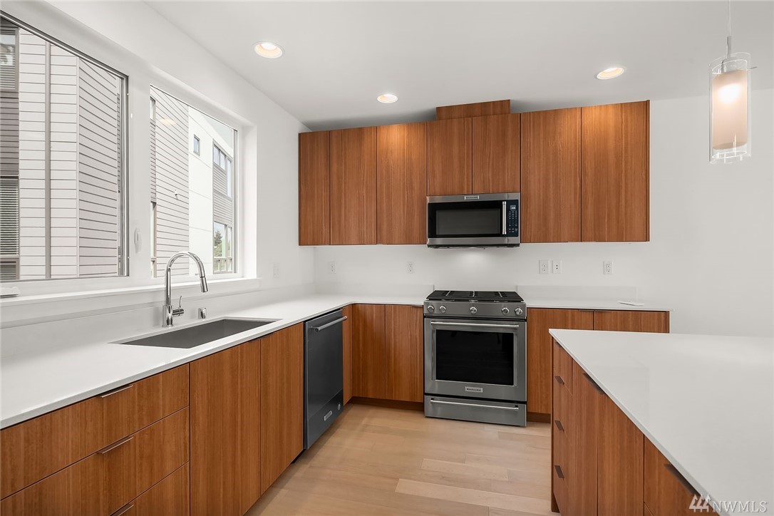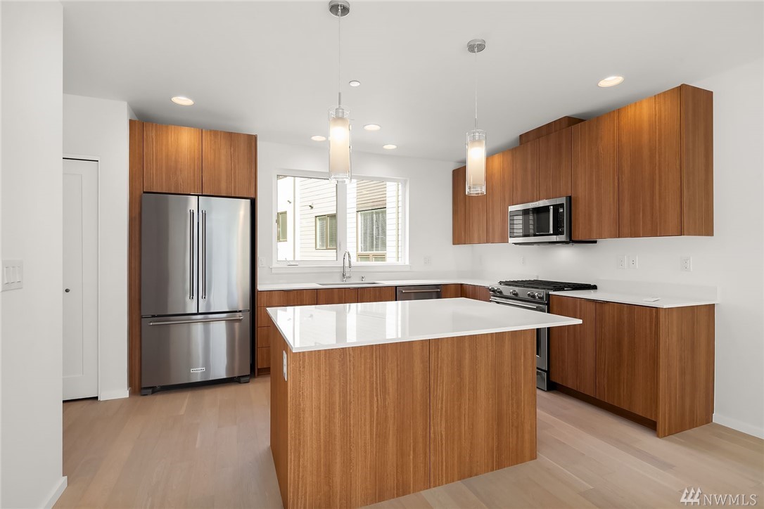 Incredible value for the price! Vista Lago offers a rare opportunity to own an affordable brand new single family home w/no HOA! Located in DT Kenmore near the shores of Lake Washington. This innovative floorplan provides a spacious & bright interior, modern finishes, & a private roof top deck w/impressive views! Additional features include: A/C, quartz counters, tile & hardwood floors, high ceilings w/big windows, 2-car garages, Northshore SD, & quick access to both the Eastside & Seattle!