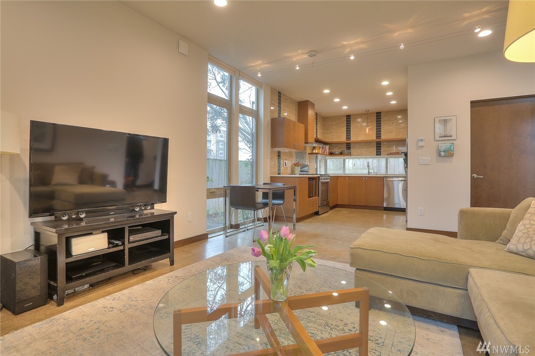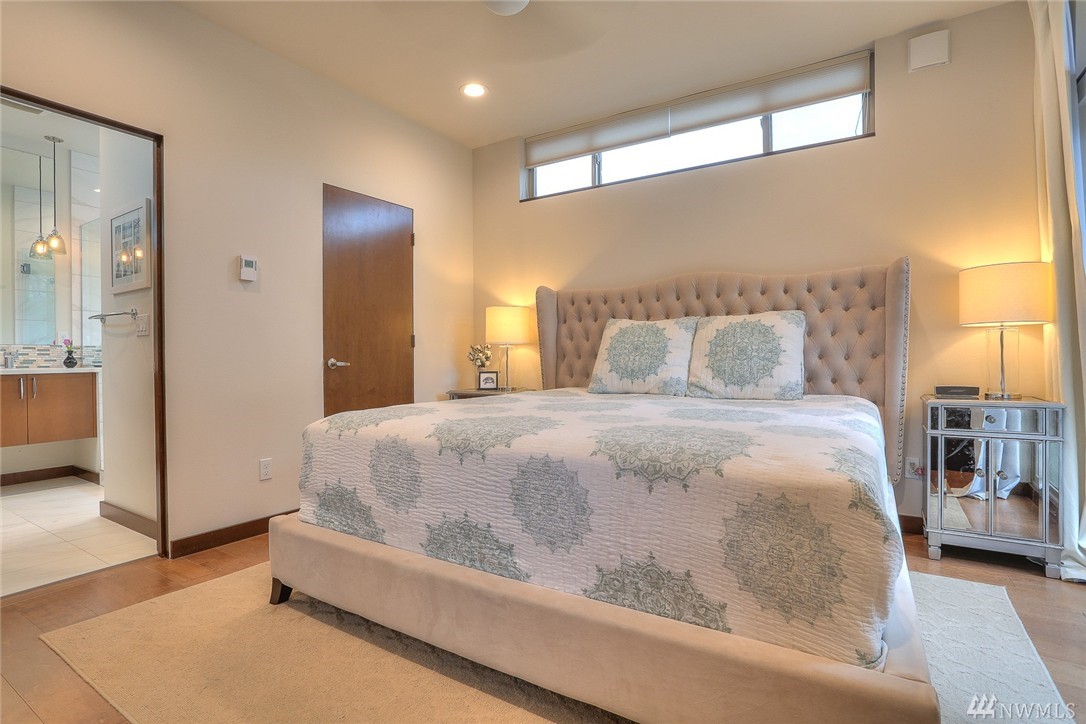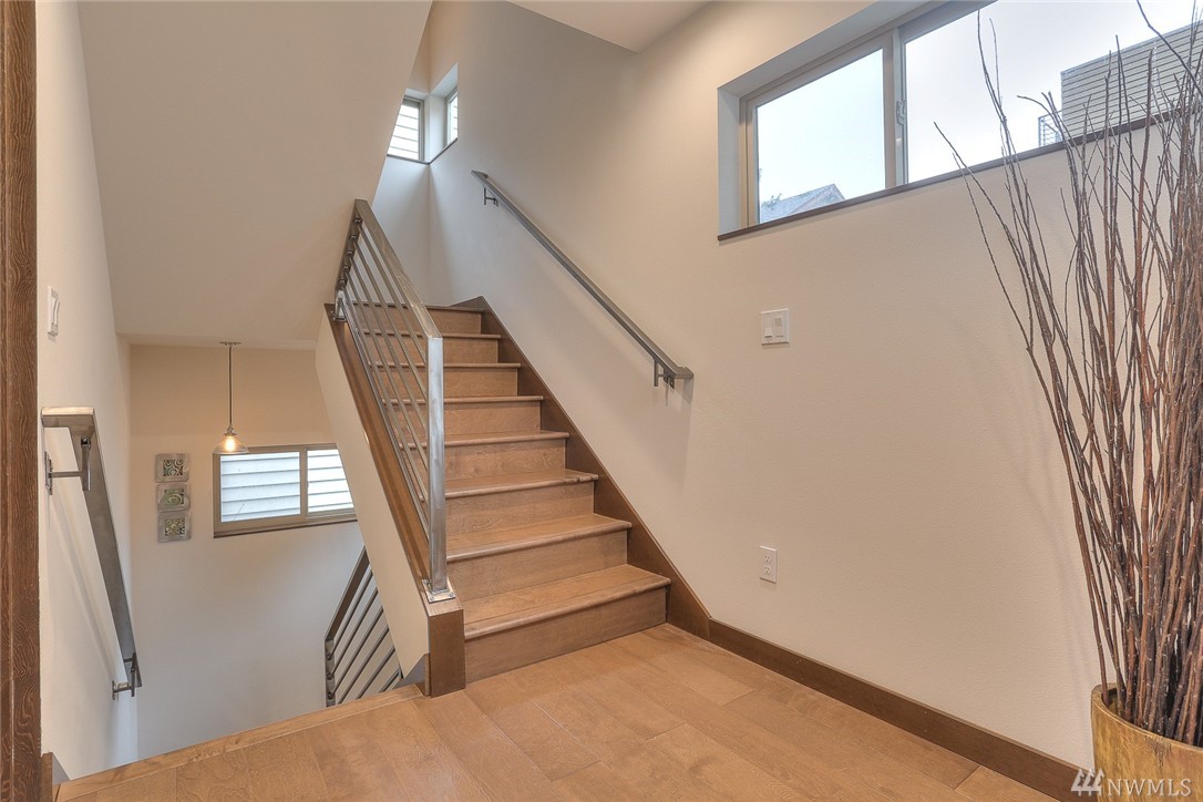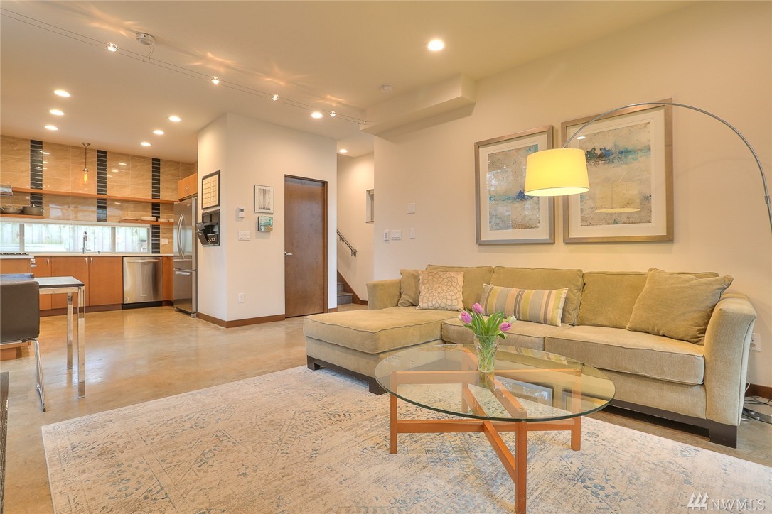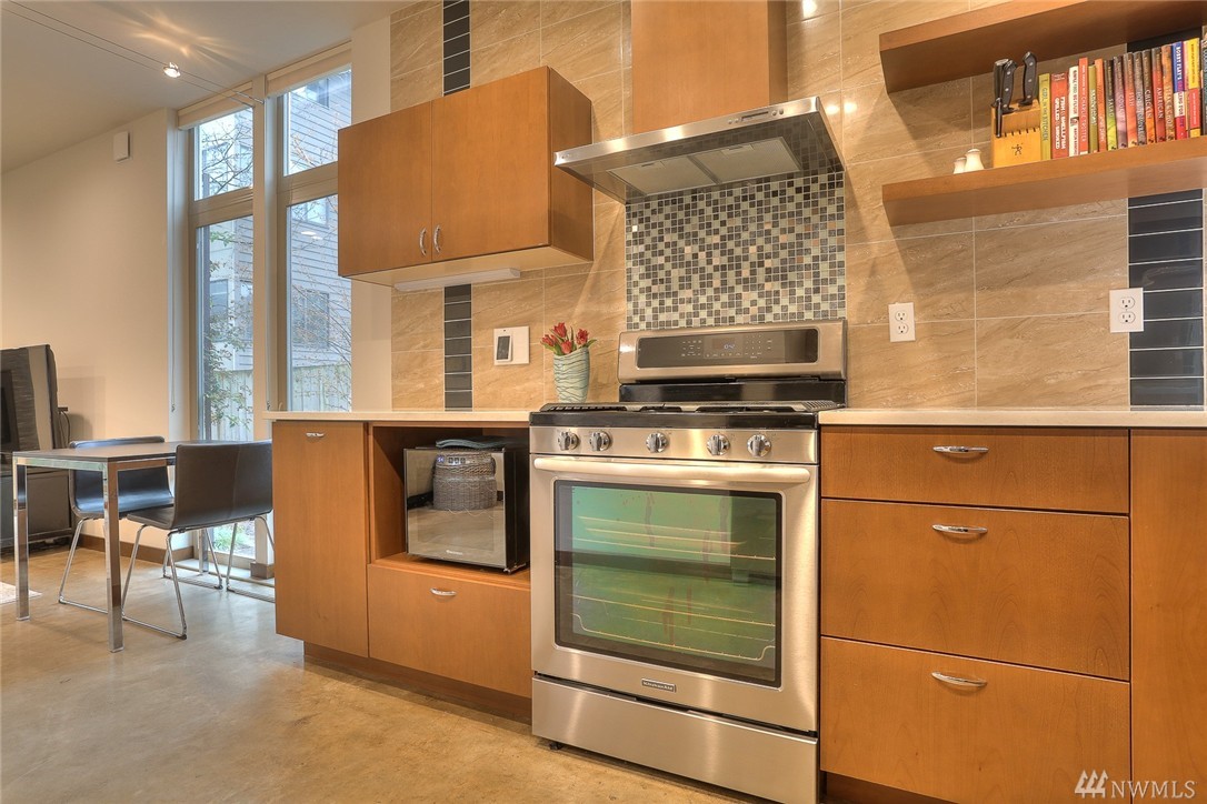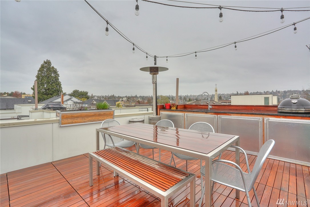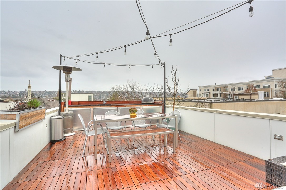 Impeccable standalone nestled in Ballard's heartland. Designer touches and a kitchen to delight any cook - quartz countertops, glass tile backsplash, high-end appliances & custom alder cabinets. Polished concrete floors greet you upon entry and both the large backyard patio & roof top deck with wet bar await festive gatherings. Gorgeous master suite includes a 5-piece bathroom & private balcony. This home has it all - an abundance of natural light, maple hardwoods & in-floor radiant heating.