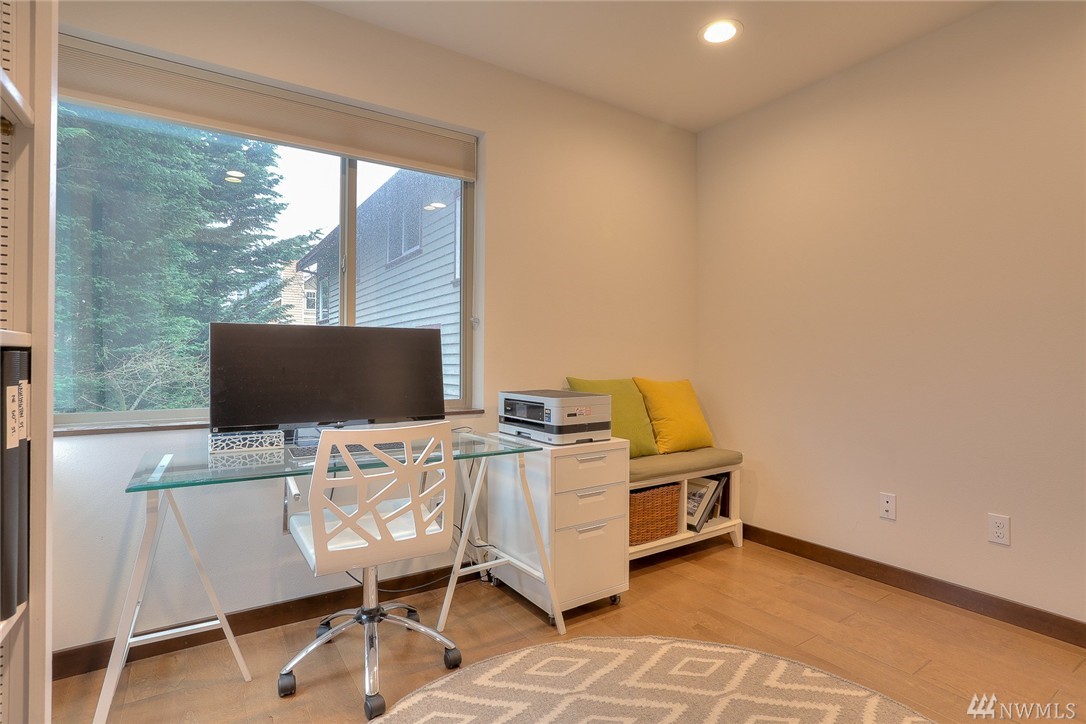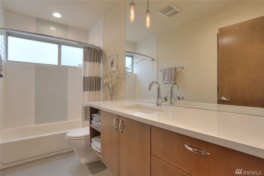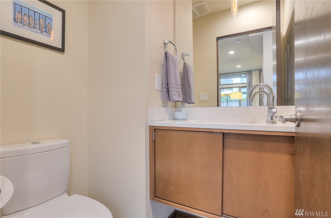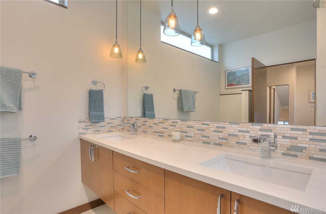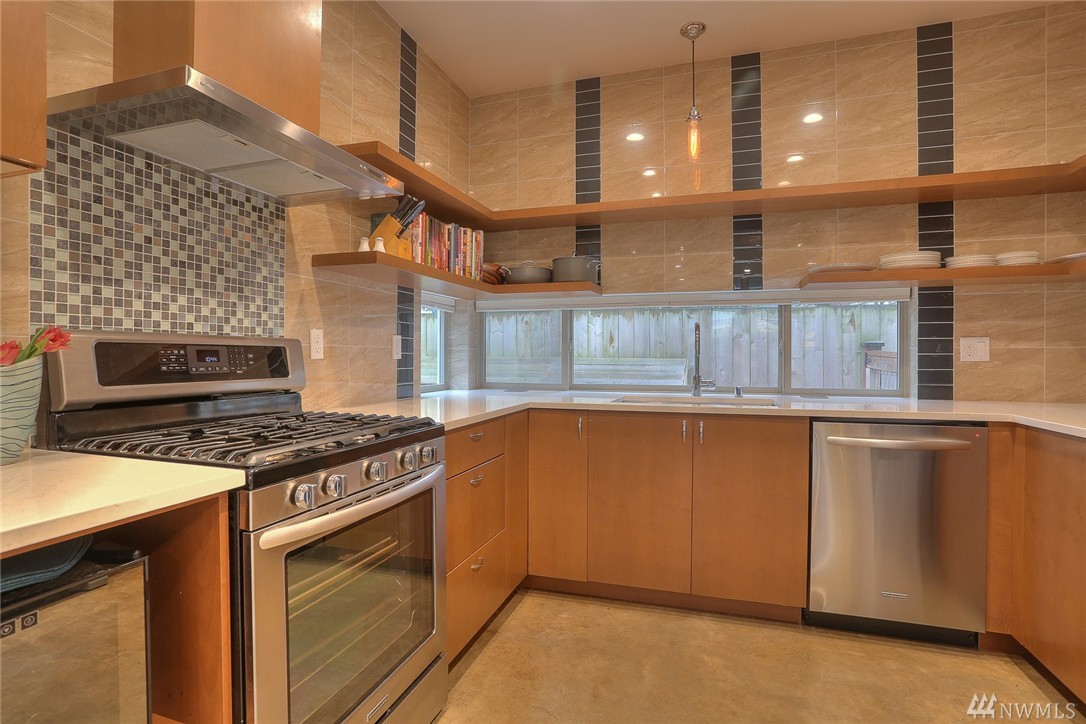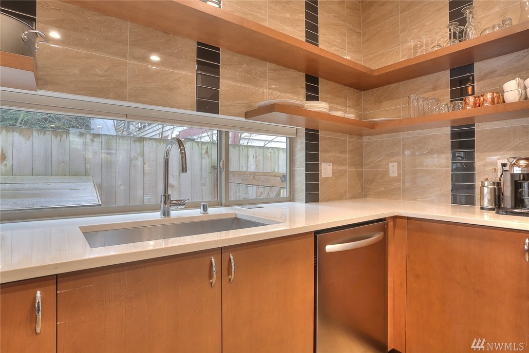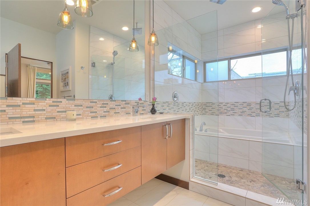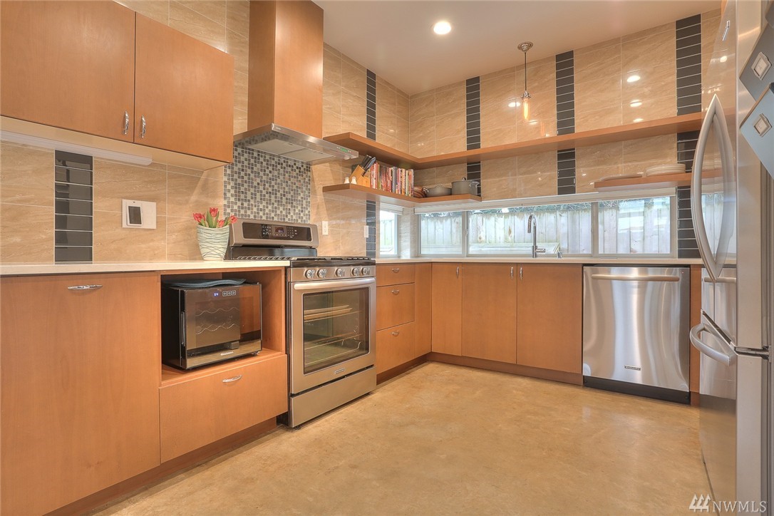 Impeccable standalone nestled in Ballard's heartland. Designer touches and a kitchen to delight any cook - quartz countertops, glass tile backsplash, high-end appliances & custom alder cabinets. Polished concrete floors greet you upon entry and both the large backyard patio & roof top deck with wet bar await festive gatherings. Gorgeous master suite includes a 5-piece bathroom & private balcony. This home has it all - an abundance of natural light, maple hardwoods & in-floor radiant heating.