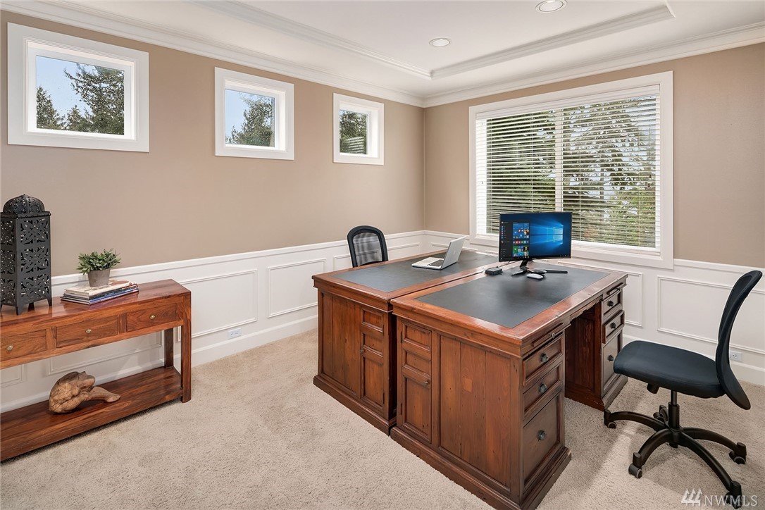 Timberline/Sterling Woods view home! High ceilings, extensive millwork and an abundance of windows to showcase the lake, city and mountain views. Beautifully remodeled kitchen with high end finishes and large walk-in pantry. Main floor mother-in-law suite or use as an office. The master suite has a sitting area, private deck, generous walk-in closet and 5 piece bath. Duel stair cases, new A/C & furnace & wired for generator. Entertainment size patio & deck great for enjoying beautiful sunsets!