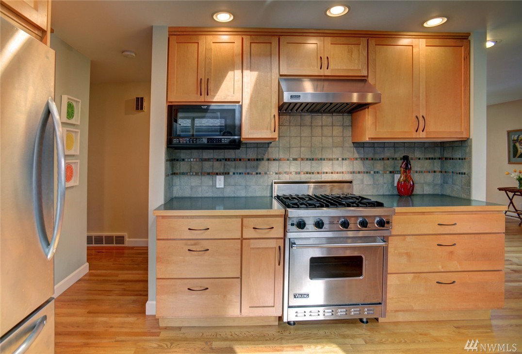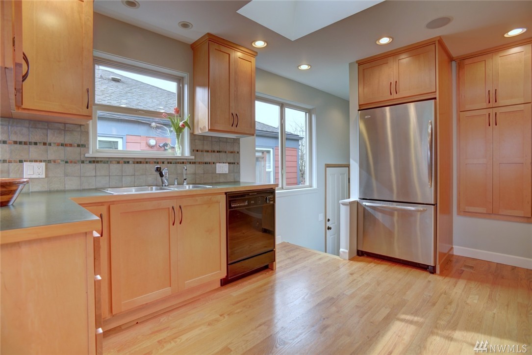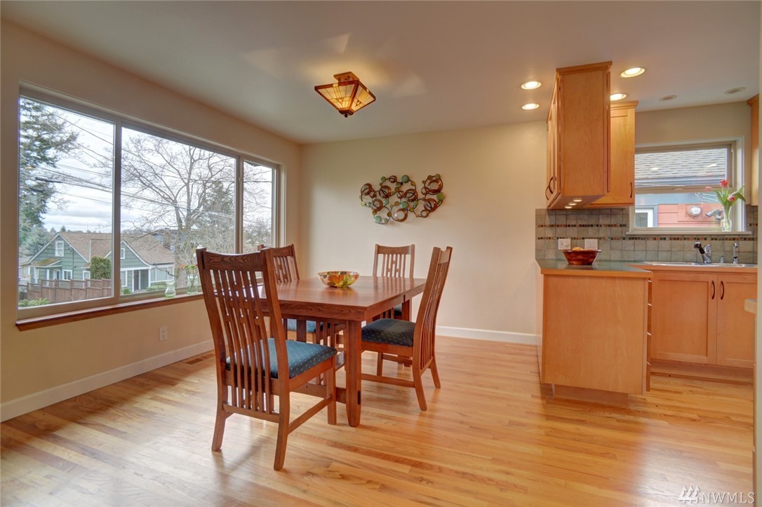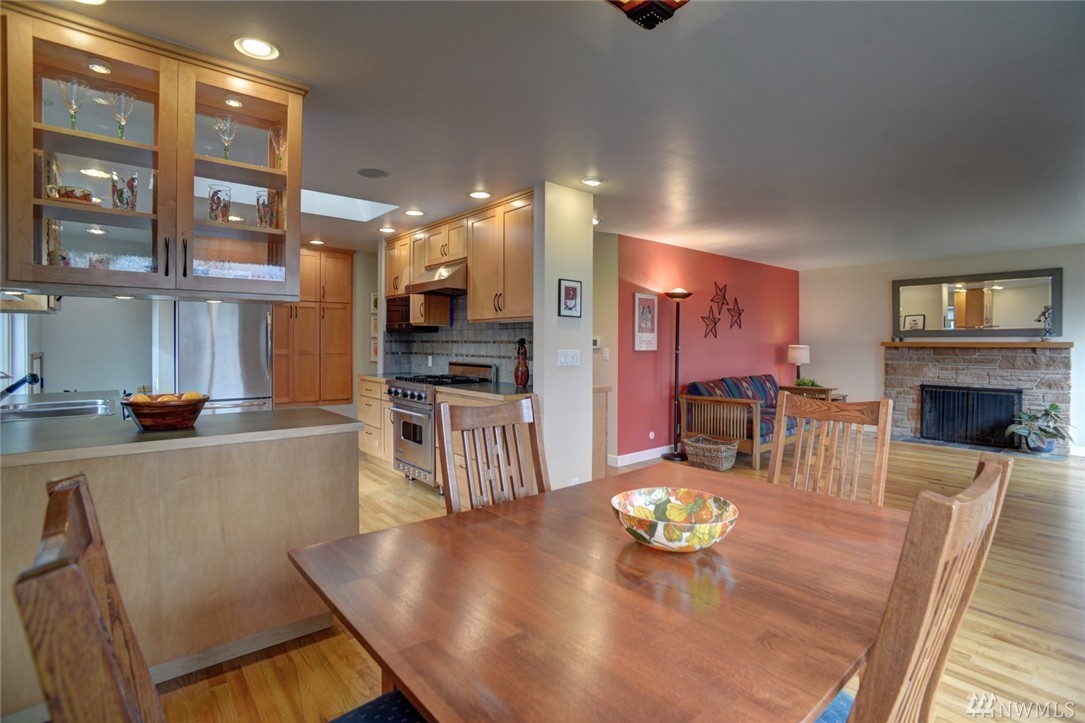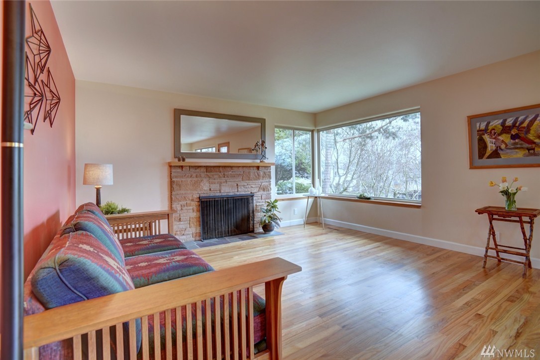 Bryant Mid-Century Modern in sought after locale!Light,bright,open and spacious living!Quality hardwoods,custom kitchen with Viking stove, spacious dining area and inviting entertaining living room w/standout fireplace.Desirable 3 bd. on main fl w/full bath and master with 3/4. Expansive lower level w/1/2 ba,flex space and garage.Backyard w/privacy fence, shade trees and blooming foliage! Even a pad for your "vintage" trailer!Close to UW, parks, schools and superb food! Not to be missed!