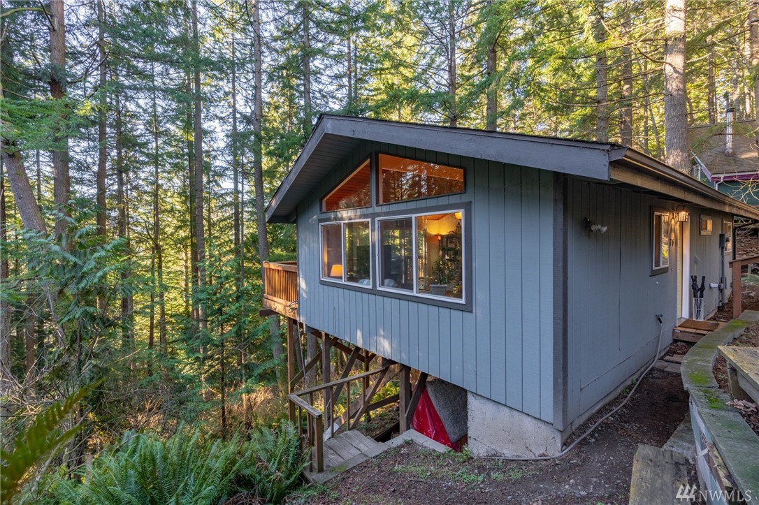 Stop paying rent - own your home for the same cost or less! This adorable, updated cabin is tucked away in the woods. There’s 3 beds and 1 bath but the floor plan of this home makes the 800 SF feel like much more! In the summer, the SF feels like it doubles, with the large deck overlooking the trees becoming a 2nd living space. With modern concrete counter tops, a fireplace, and lots of other updates throughout, this home is as cozy as they come. Enjoy lake life and all the amenities!
