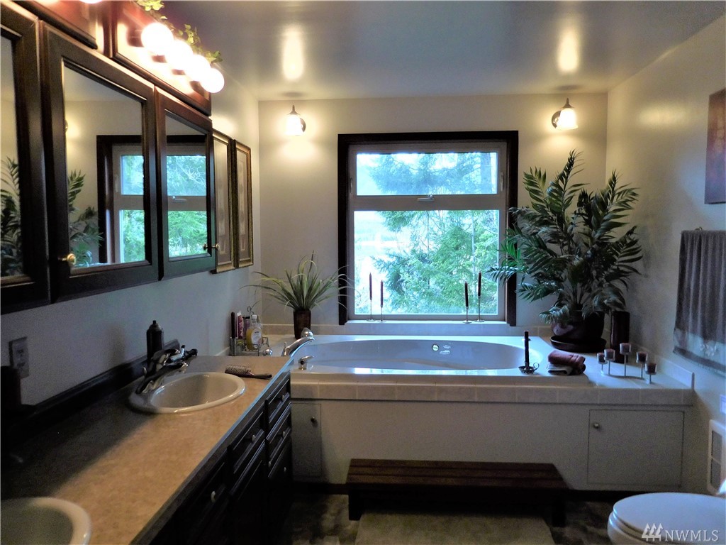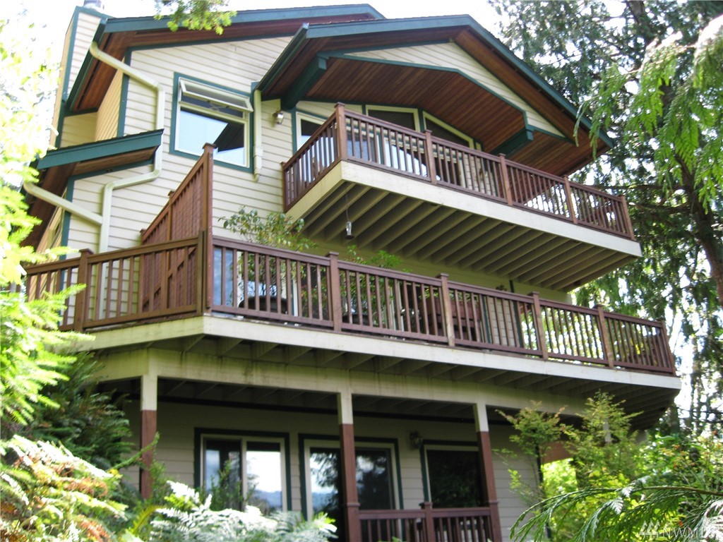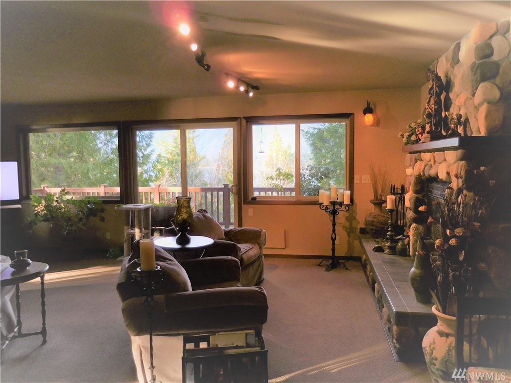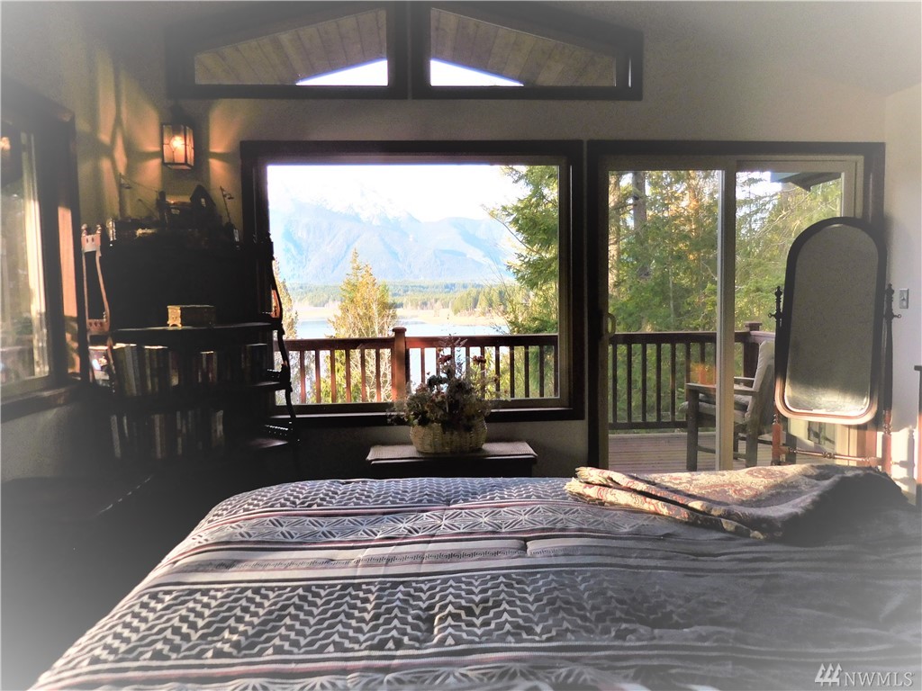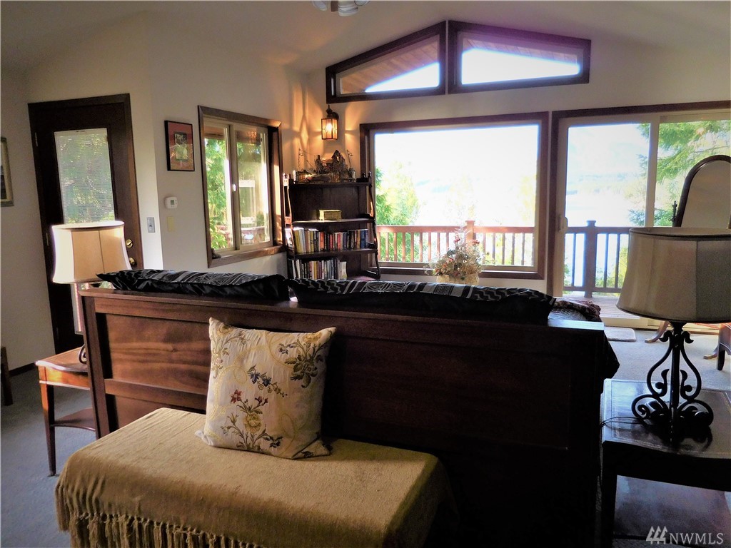 BACK UP REQUESTED. Owner oriented this top quality home to mountain and lake views. Beautiful interior laid out for entertaining yet equally appealing as a retreat. Kitchen for a chef or two with bar seating open to living and dining areas. Master suite has views of the lake from the bedroom and the bathroom. The original cabin is wired and plumbed for new fixtures and appliances to become a charming ADU across the drive. Low maintenance grounds entered by a long driveway off the main road.