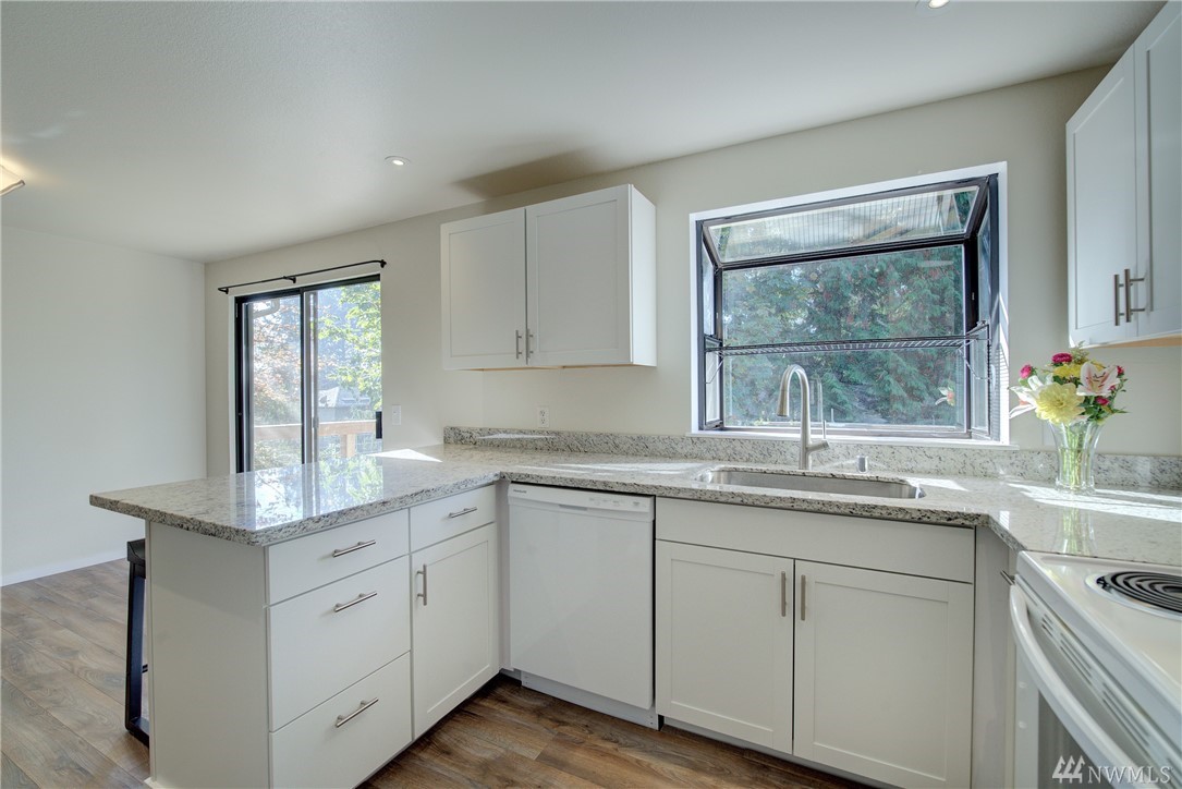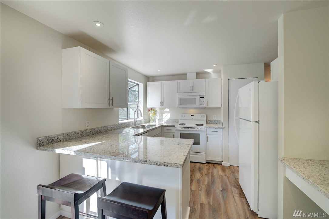 Remodeled rambler in Lake Wa Sch Dist north of Juanita High. Convenient to schools, new Totem Lake Shopping Center, park-n-ride, bus service, freeway, parks & beaches. Updates include new carpets, vinyl & hardwoods. New kitchen w/granite counters, new cabinets, newer range, new refrigerator & desk/computer center. New baths w/ new flooring, new cabinets, sinks, toilets & new shower in master bath. Exterior painted in 2015. All new interior paint & new closet doors. 6 yr old furnace/6yr HWT