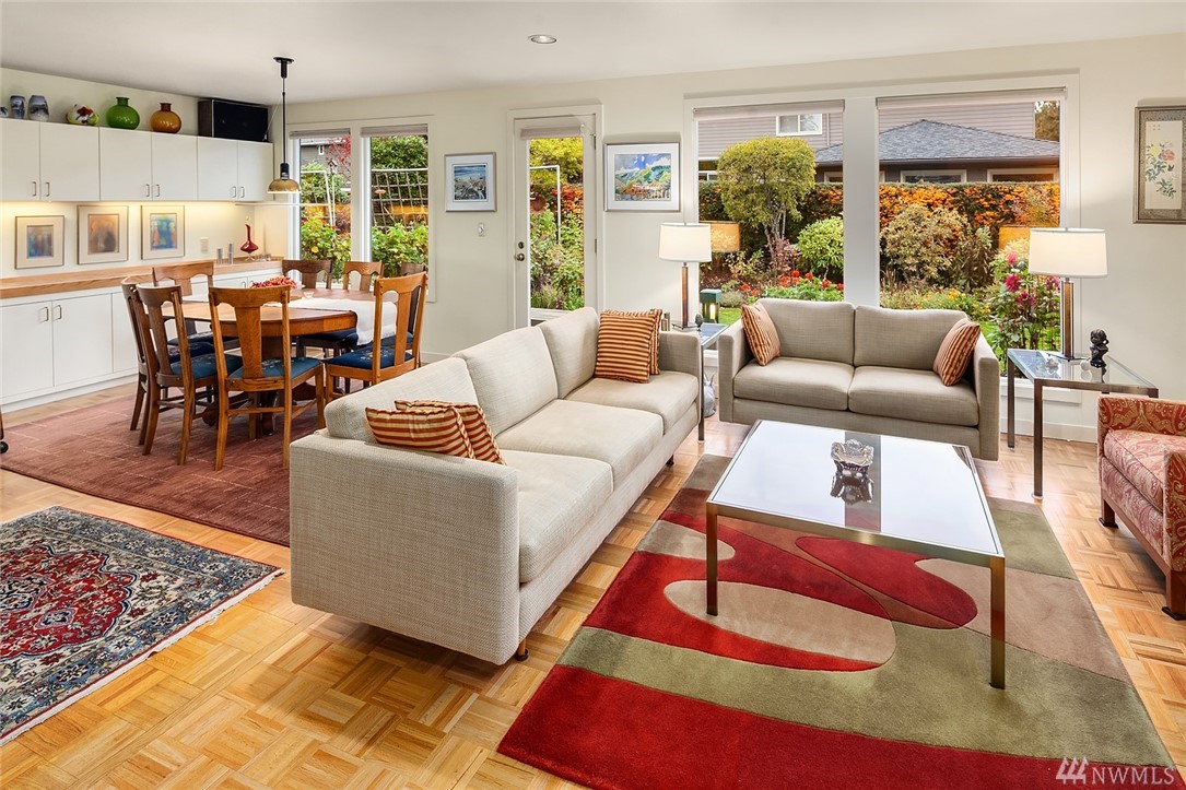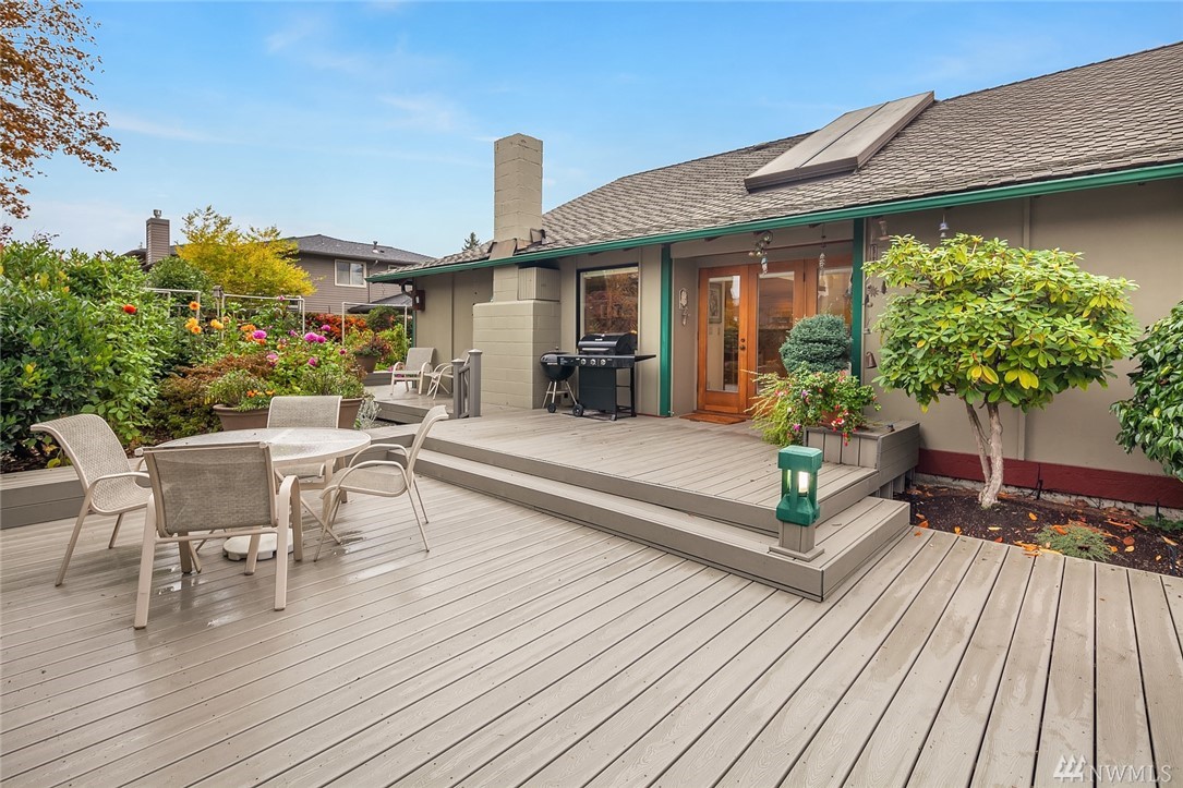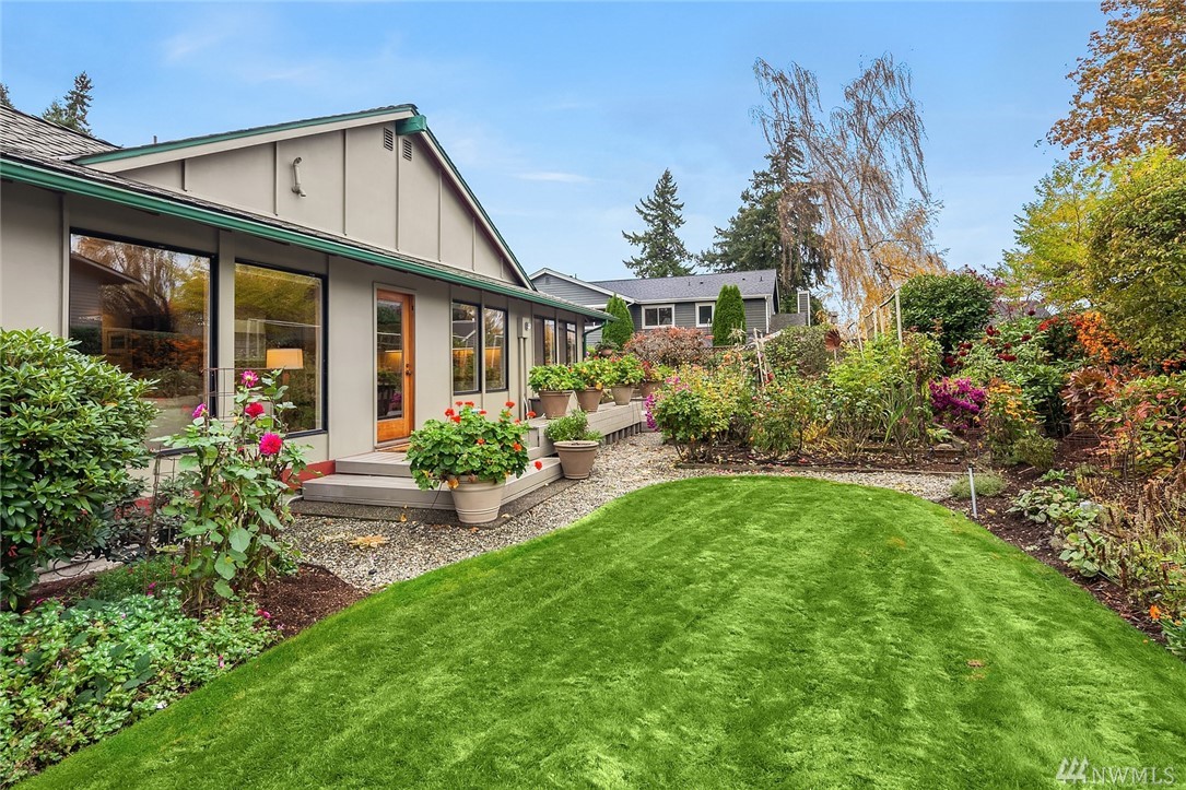 East Seattle Rambler on large flat lot Three-quarters wrap around deck;Trek.Yard is Arboretum style with many plants and shrubs. Garden shed connected to decking. Atrium inside that brings outside in. Lots of light. Lots of cabinets for storage.Third bedroom converted to laundry room which could be converted back to bedroom if need be. Close to parks, schools, and public beaches. Easy access to I-90, Seattle,Bellevue, and Sea-Tac. Close to downtown Mercer Island. Very cozy and move in condition.