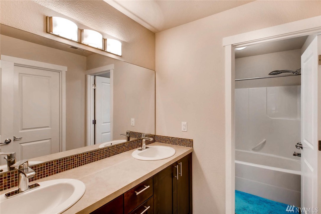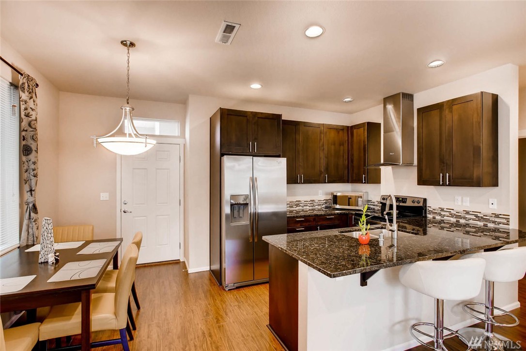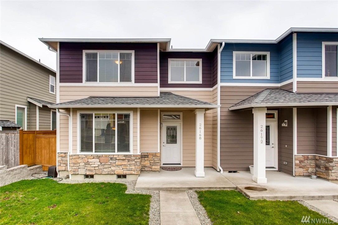 Townhome with 3 bedrooms, 2.5 bathrooms. Updated faucets in kitchen and bathrooms. Soft close kitchen cabinets. Living room wired for home theater audio. Home is wired for internet. Two car garage with paved access. Small park and play area within the community. Easy access to I-5 and light rail. Walking distance to bus stop.