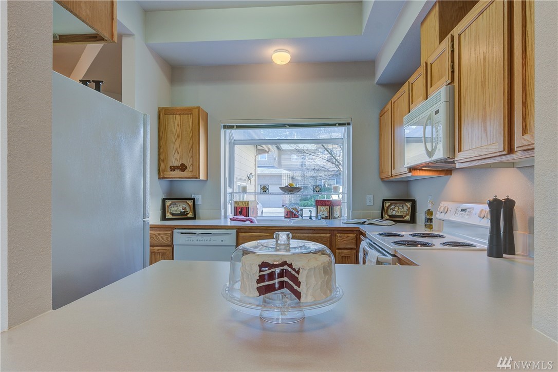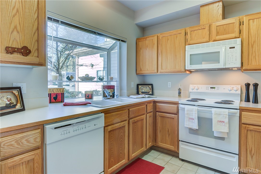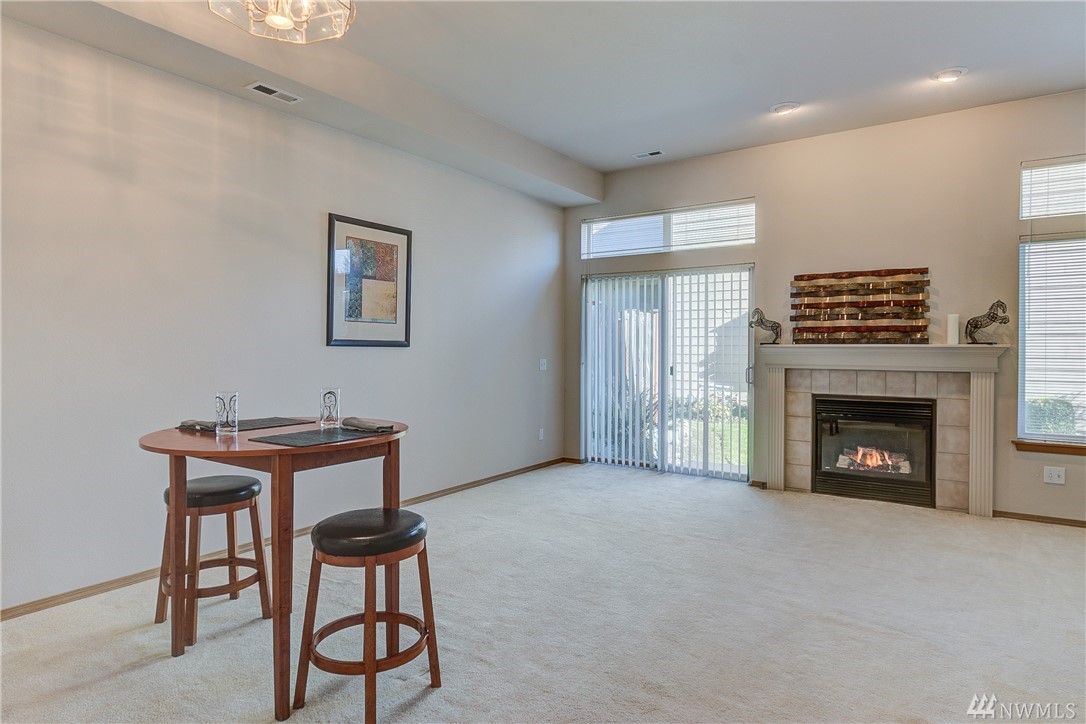 This 2 bed townhome lives like a single family home. Tall ceilings and no one above you. Kitchen is light & bright w/ garden window & open pass through. Open living spaces with gas fp & slider to patio/lawn area. Vaulted ceilings & skylights upstairs for extra light. Master suite has private 3/4 bath. 2nd bedroom, full bath and large laundry room steps away. All new carpet to be installed prior to closing. Appliances included. Private garage + 2 parking spots. Efficient hydronic central heat