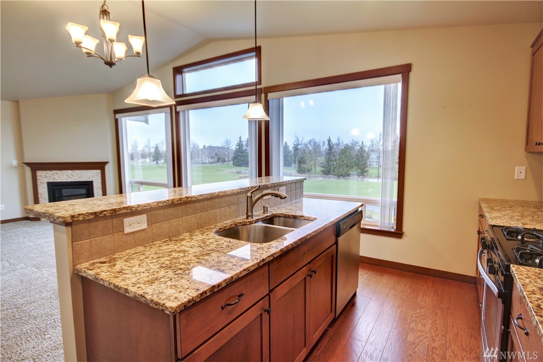 Wonderful Top Floor Condo Unit w/Panoramic Views of Homestead Golf Course, plus your own extra large 2-car garage! This nicely finished unit has 2 bdrms, office, open living rm w/vaulted ceilings & large view-facing windows, cozy gas fireplace, AC, kitchen w/granite counters, eat-in bar, SS appliances & walk-in pantry. Master has ensuite ¾ bath w/double vanity & walk-in closet. Well-appointed clubhouse w/kitchen & patio, great for entertaining! Walk to fitness center, golf course & restaurant!