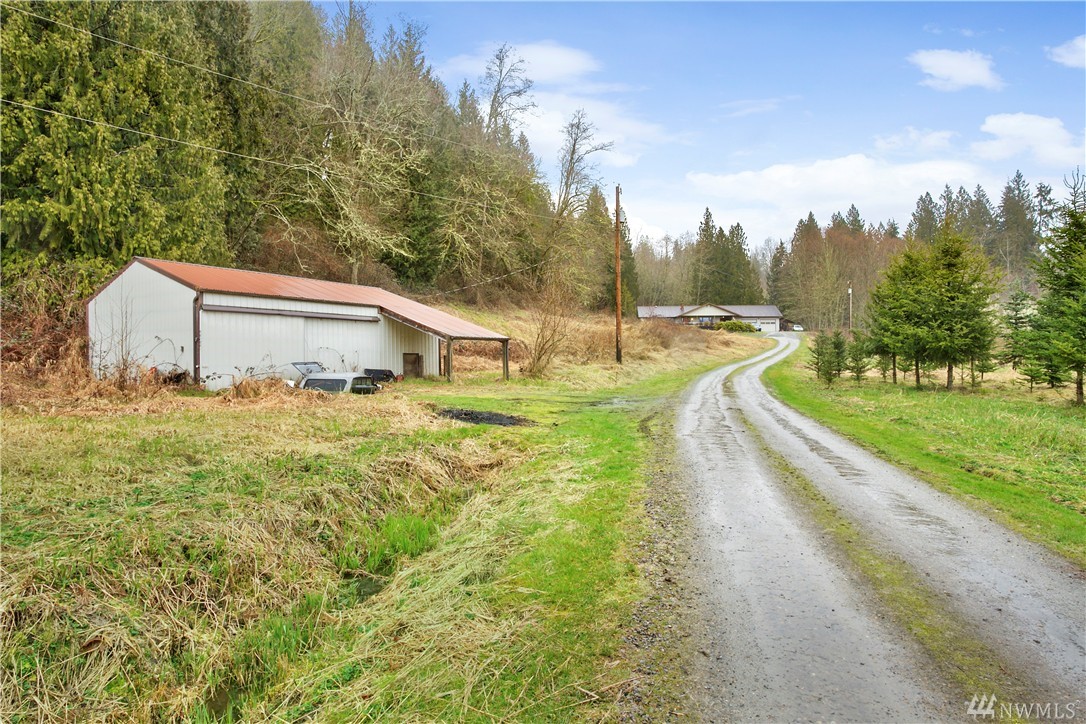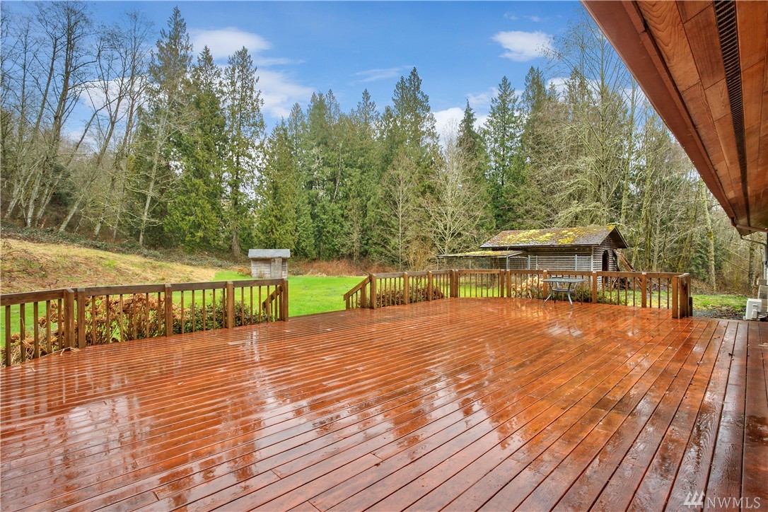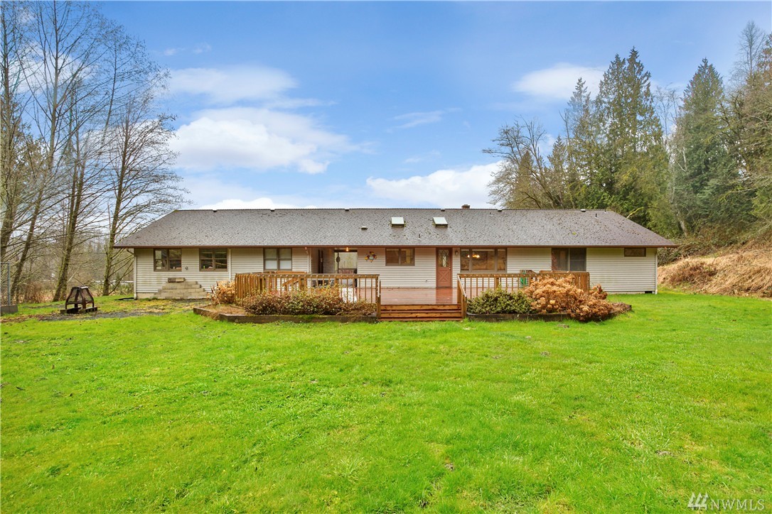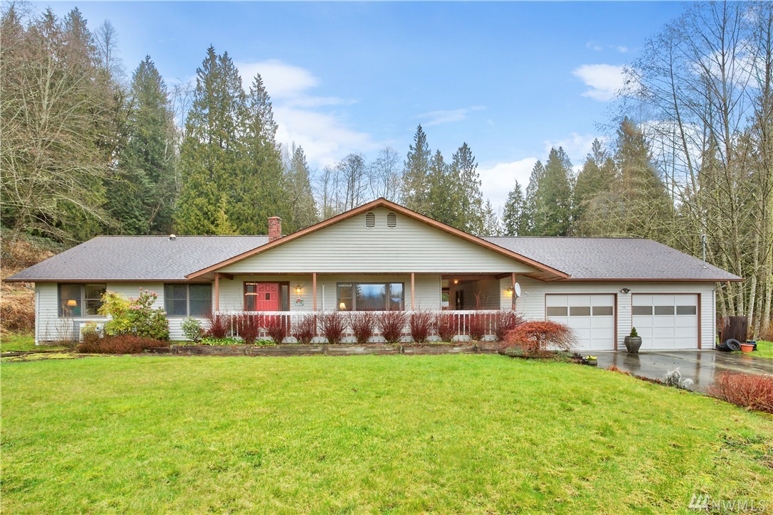 Well worth seeing! Spacious 3 bedroom, 2 bath rambler, 2 car garage (wired w/220) with attached yet separate, fully insulated and heated workshop & office space, pole barn/shop(w/electrical) (both with concrete floors), and large wood shed (or enclose into something more) all directly across the road from the South Fork of the Stillaguamish River. Amazing deck for entertaining. Fidelity National Standard 1yr Home Warranty offered, compliments of Windermere RE/Arlington.