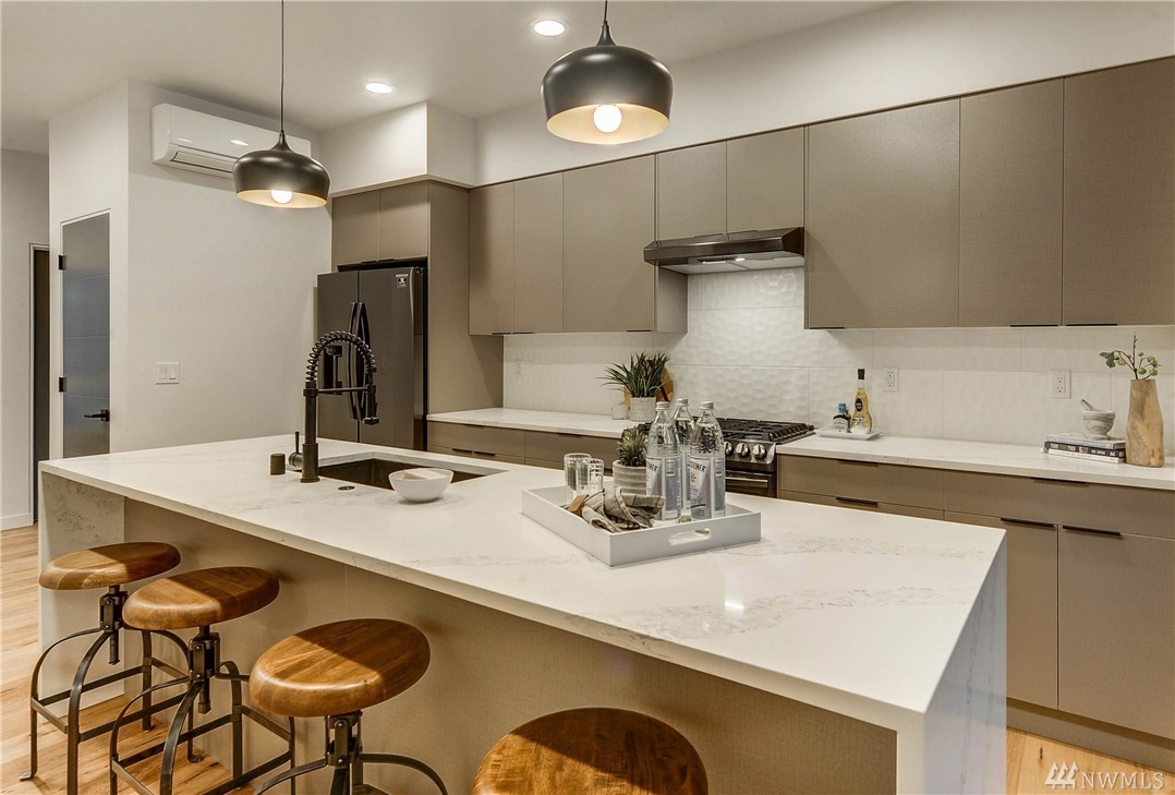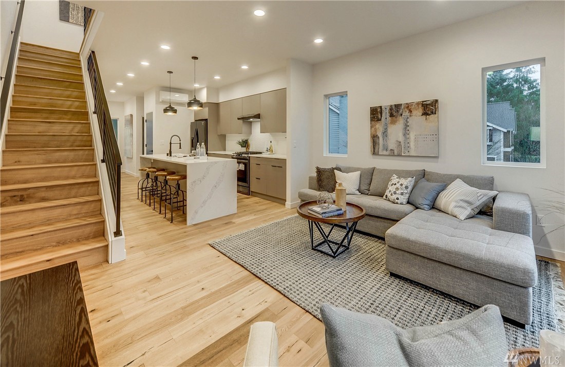 Custom Built Town-home by Energy Star Homes located in Maple Leaf community. Designed by Medici Architects. Easy living open floor plan. One bedroom + Luxurious Master Suite w/bath & walk-in closet. Chefs kitchen w/quartz counters, SS appliances, gas range. Hardwood floors. On-demand tankless hot water, split heating/AC ductless heat pump. 1-car garage. Great access to I-5, Public Transit, restaurants, shops, schools, Maple Leaf Park. Estimated completion - January.