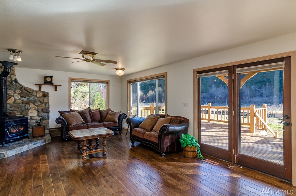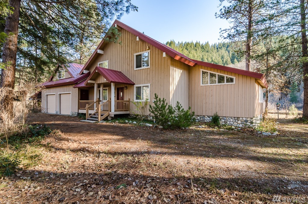 Incredible chalet style home on the beautiful Wenatchee River. Enjoy over 320' of low-bank riverfront on two private lots. This light and bright home boasts an open floorplan, hardwood floors, wood burning fireplace, and custom artwork throughout, making it truly one of a kind. Take in the expansive river views from the upstairs master with balcony and en suite. Large bonus room with half bath above the oversized garage is perfect for entertaining.