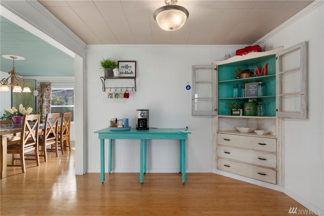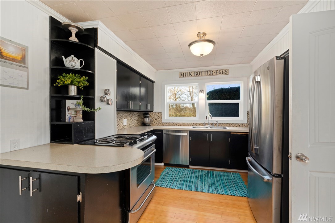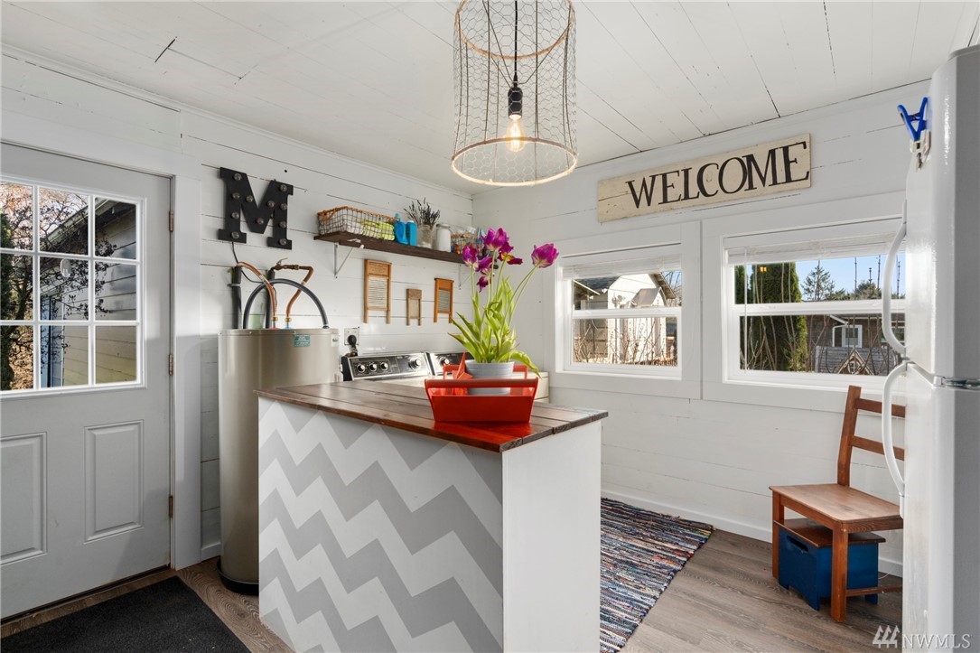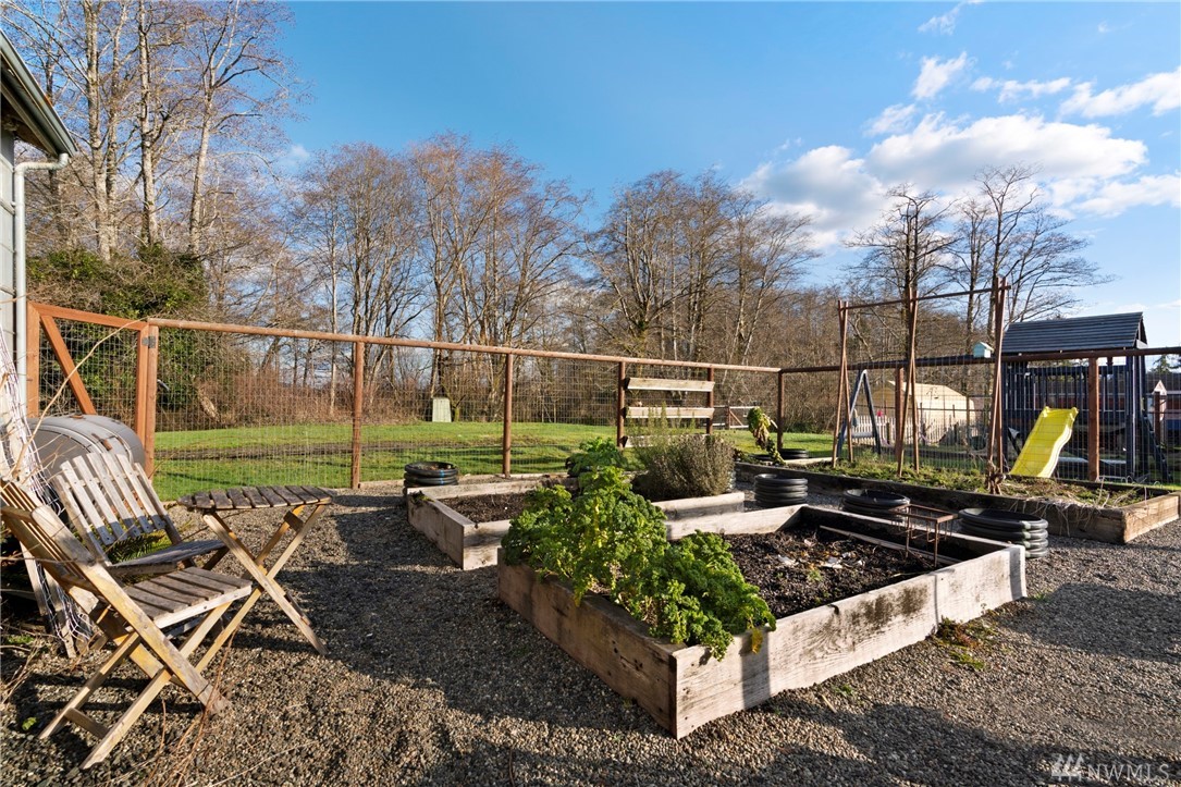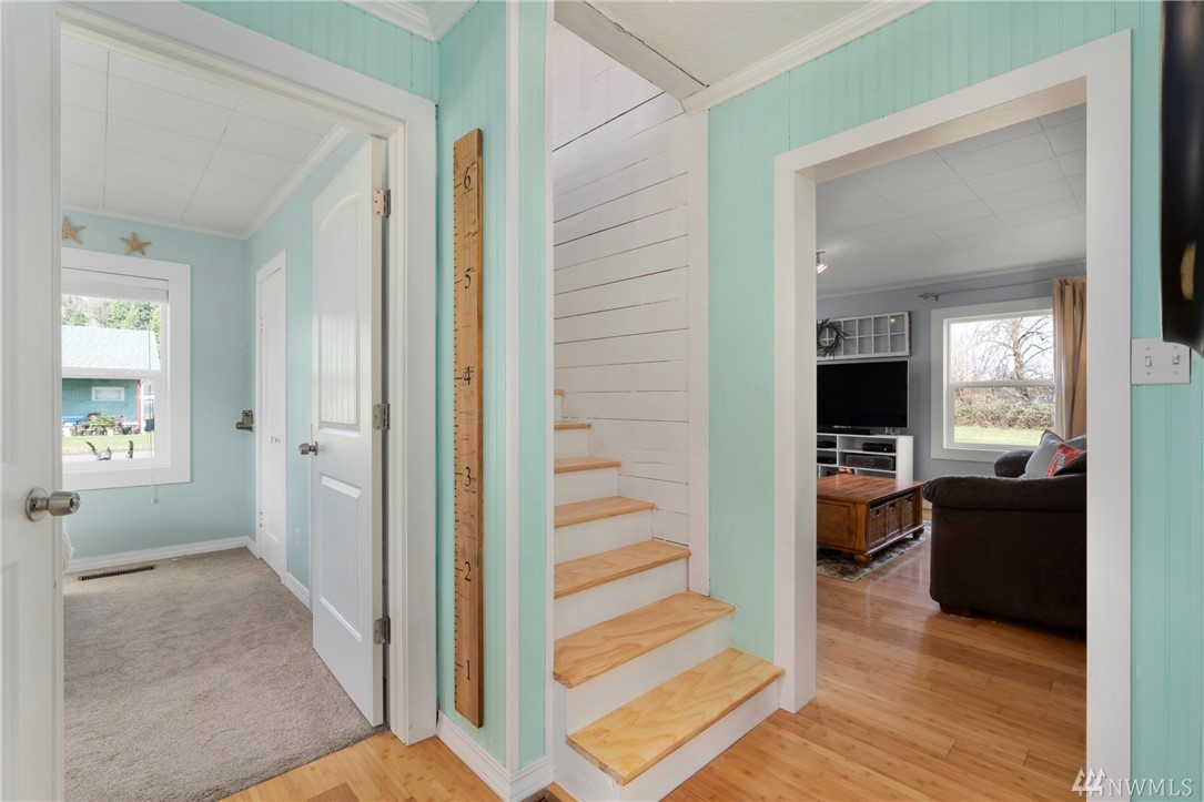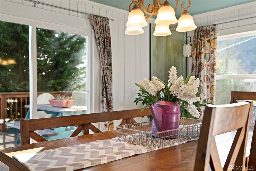 Charming home situated on a large corner lot with 2048 SF of living space. Walk in to your large dining room/family room, kitchen, two bedrooms, full bath & laundry room on main floor. Upstairs offers additional bedroom, bonus room and master suite. Luscious green grass surrounds the home on four lots with fire pit, back deck and raised flower beds. Additional detached bonus room w/ wood burning stove, great for entertaining. Detached single car garage and shop with cold storage room.