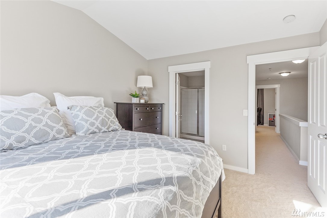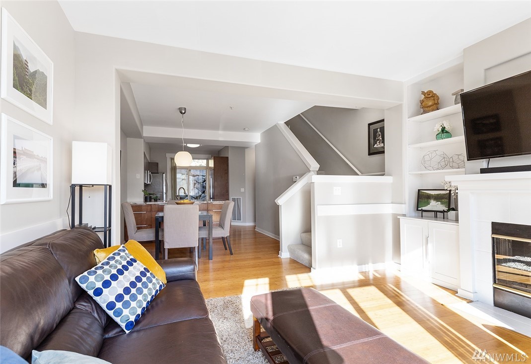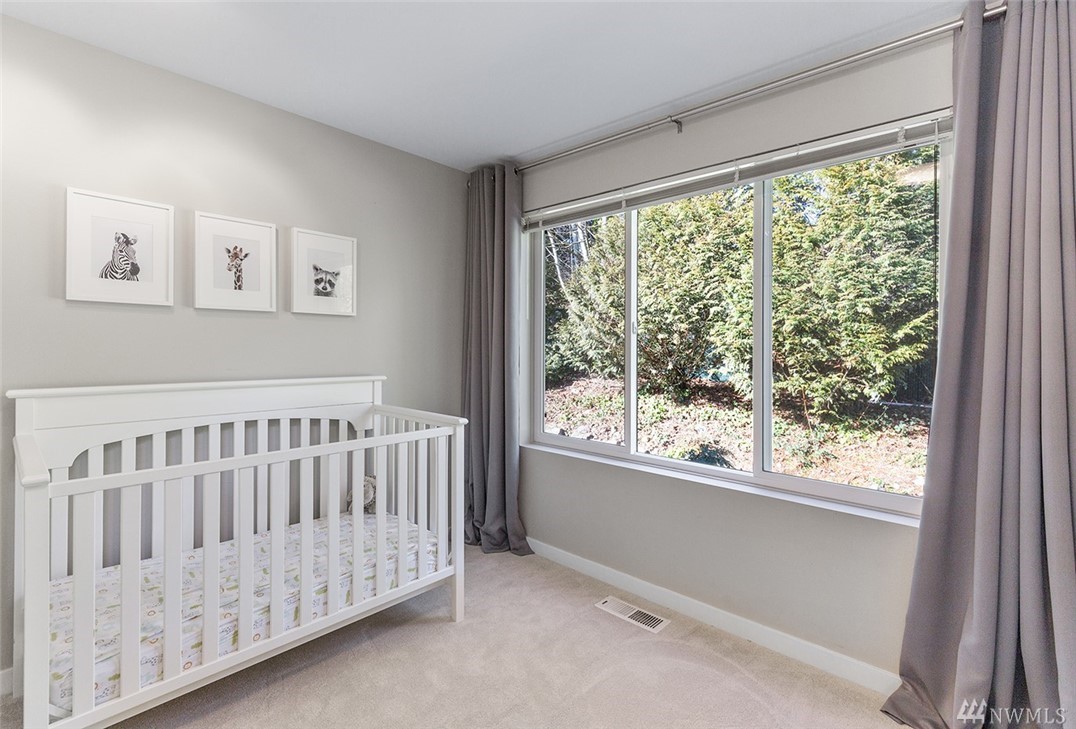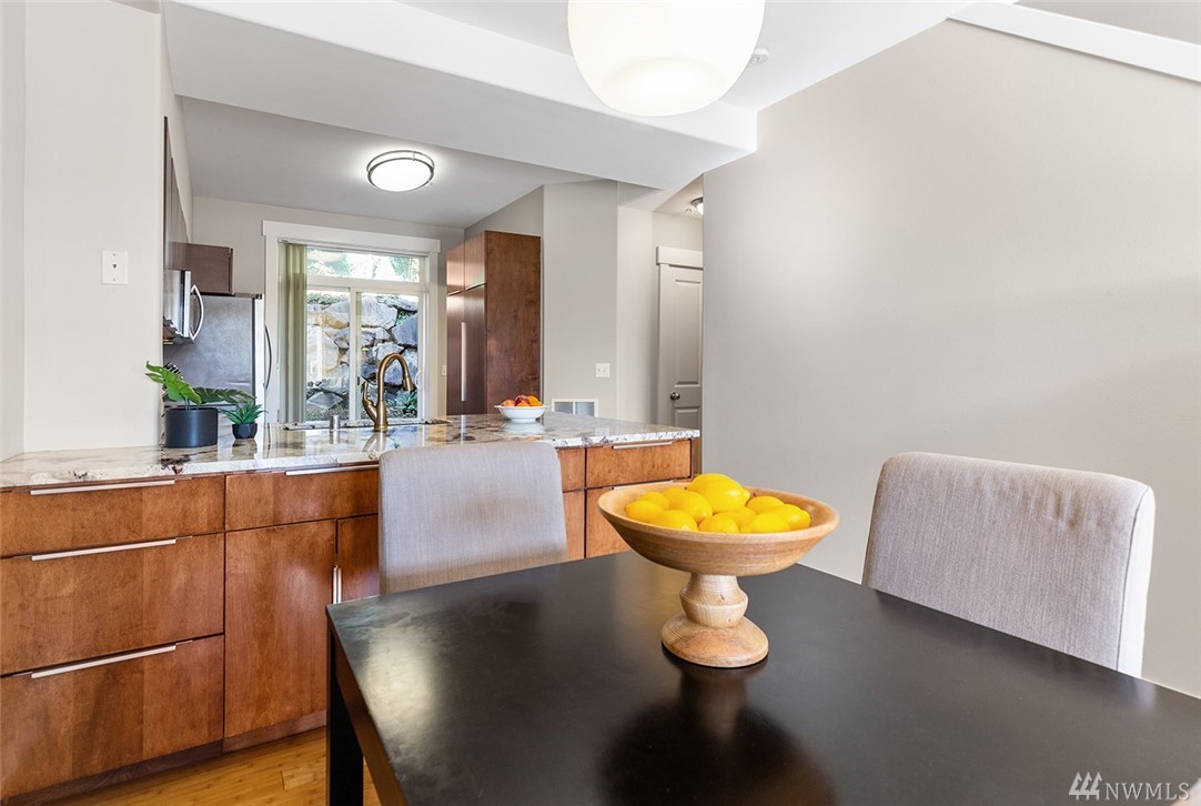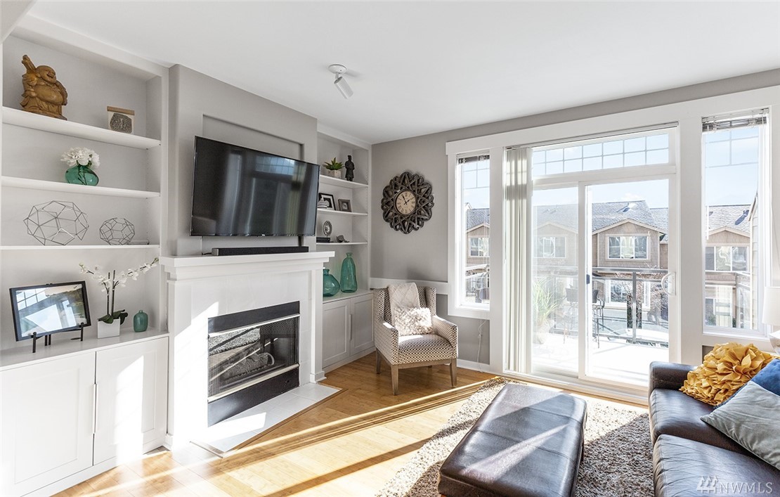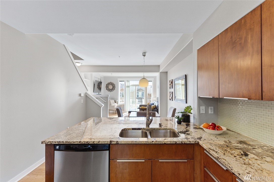 Mountain views and no homes in back of this modern townhome--the ultimate in peace and privacy. 1/2 bath on the main, bamboo flooring, fresh paint, updated brushed nickle hardware, new carpet, stainless steel appliances in custom designed, remodeled kitchen with huge island & storage pantry with roll outs. Attached two car garage w/ upper storage.Back patio can be fenced.Exterior NEW in 2012. Lots of guest parking. Easy access to park & ride/trail/I-90 and more. No rental cap.Huge HOA reserves.