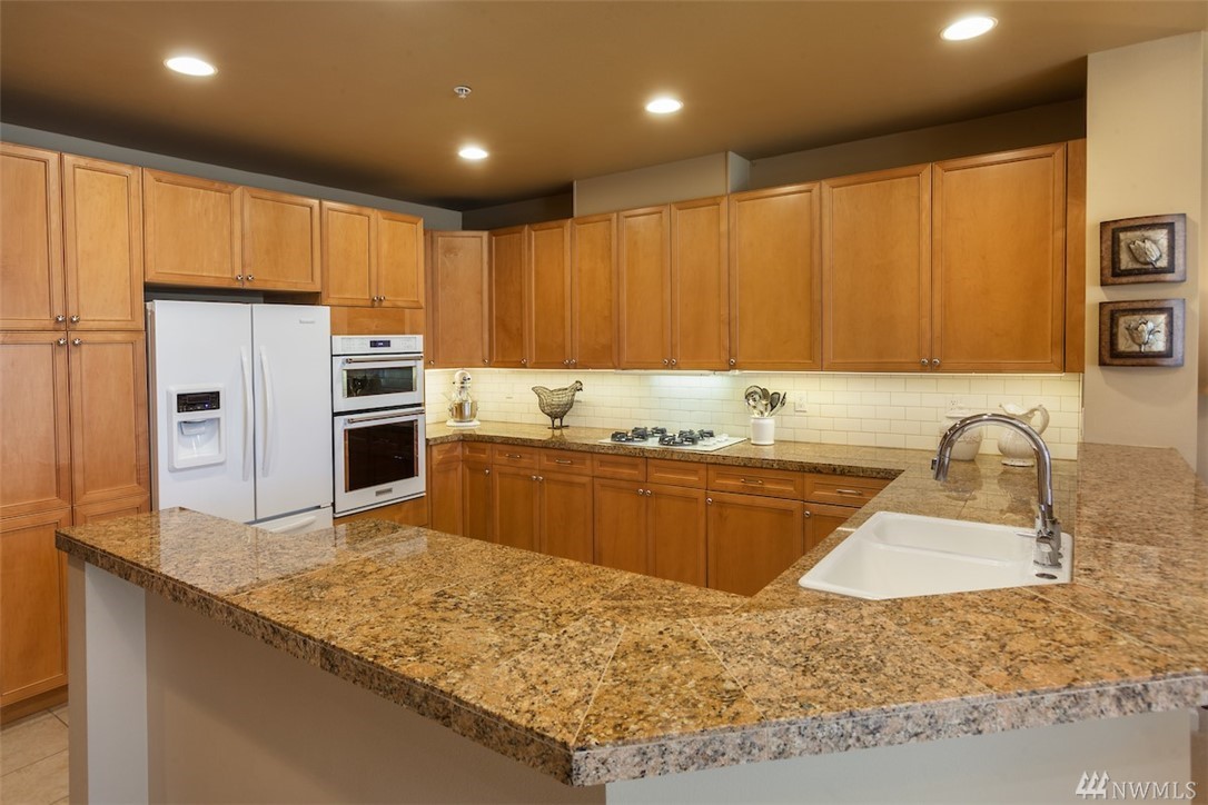 Fall in love with this light-filled, spacious 2 bed/2 bath condo in the heart of downtown Kirkland! Enjoy lake, mountain and Space Needle views from your private deck! Open floor plan, kitchen w/eating bar, granite counters and newer appliances. Featuring A/C, gas fireplace and crown molding. Master suite w/5-piece bath w/jetted tub, walk in closet and deck. Secure building, 2 parking spots + storage. Steps to your favorite dining and lakefront parks. Close to Park Place Center and Google.