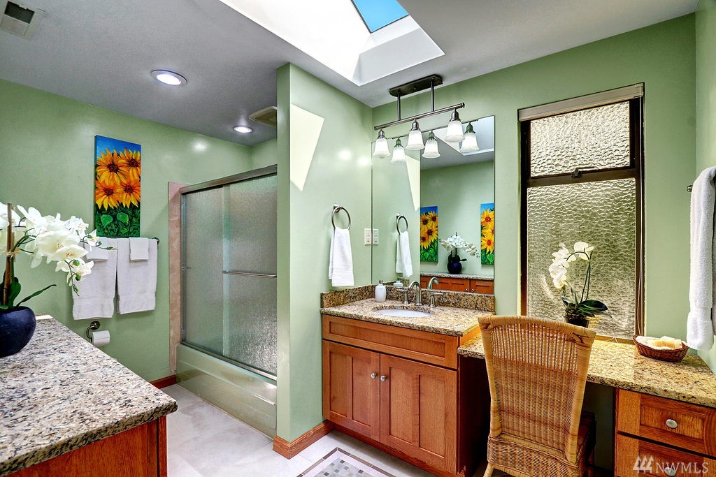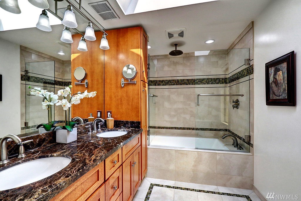 Beautiful and serene setting with mature landscapes in Seaview. 2,877sf, 4 bed, 2.5 bath w/open/bright living spaces, large bonus room on upper level, and 4th bed or optional home office on main floor. Updated baths draped in designer tile, 50 year roof, pex plumbing, newer hot water tank, brand new furnace, entertainment sized trex deck, and fresh paint. Master suite with gas fireplace, spa-like 5 piece bath, w/heated flrs, skylights, and deck. Just minutes to downtown Edmonds and I5/Hyw 99.