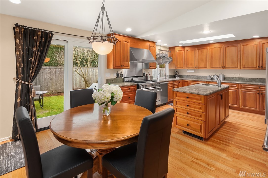 Medina opportunity awaits! This beautifully remodeled rambler has all the right spaces. Large kitchen w/ granite counters, rich cherry cabinetry and newer s/s appliances. Open to breakfast nook & family room. Formal living & dining room flow seamlessly to patio. Spa-like master bath and walk-in closet complete the master suite. 3-car attached garage. Large, flat lot with deck, garden, and mature landscaping—all on a quiet cul-de-sac. Just blocks from Medina Park and coveted Medina Elementary!